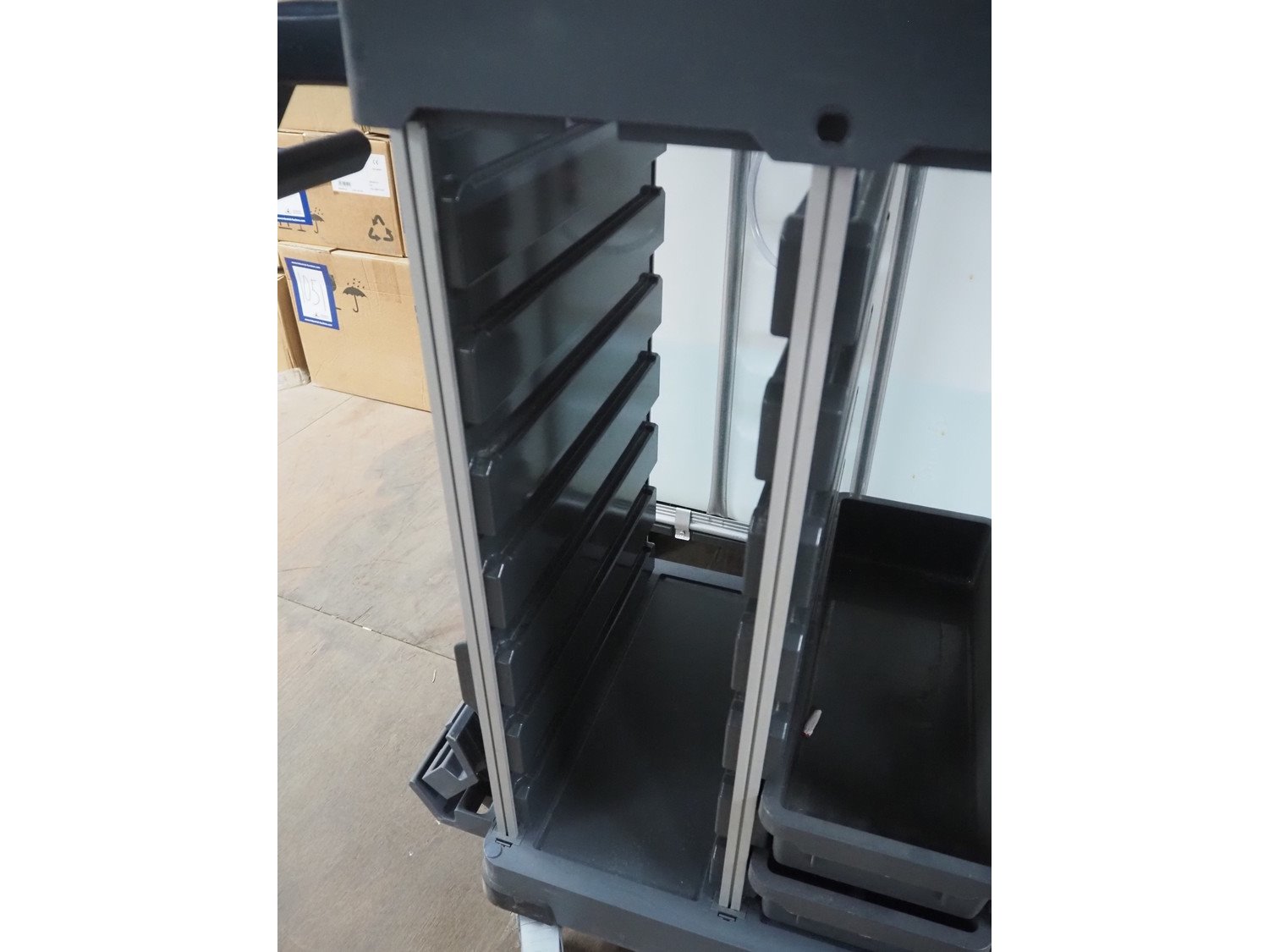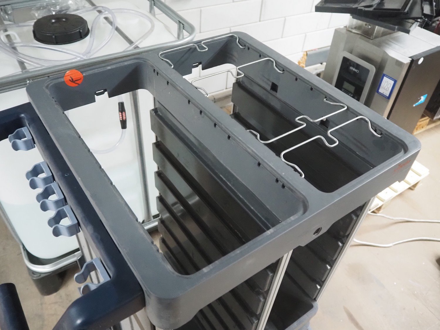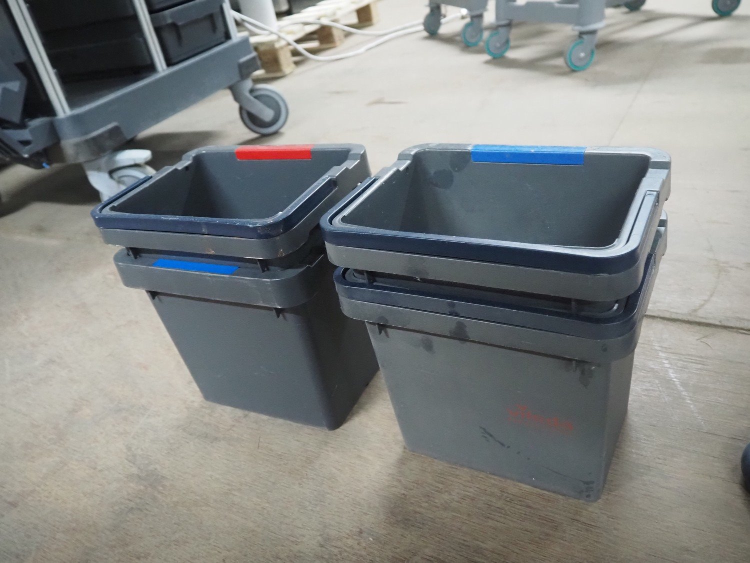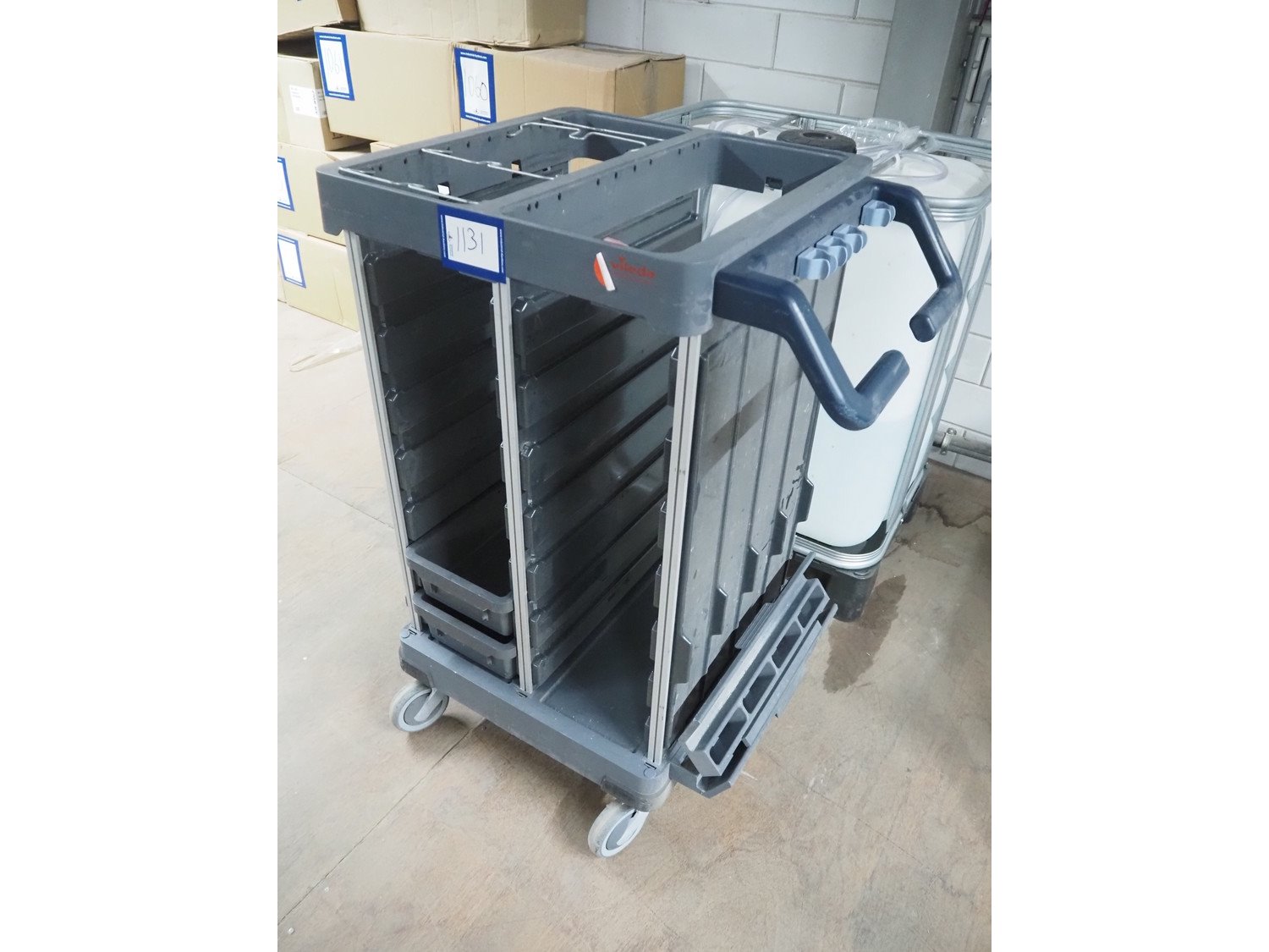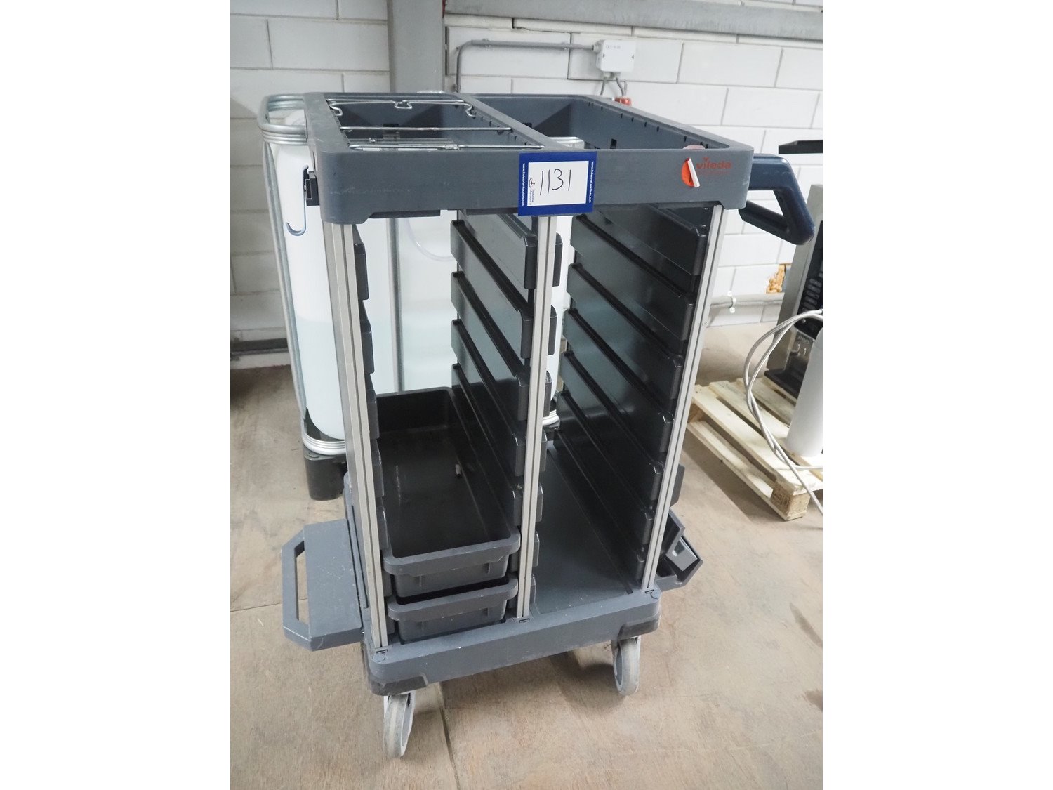 Vileda trolley, floor dimensions: 240 mm x 490 mm, 14 floors, total dimensions: 950 mm x 600 mm x 1100 mm. Kavel locatie: Looyenbeemd 11, 5652 BH Eindhoven, Nederland