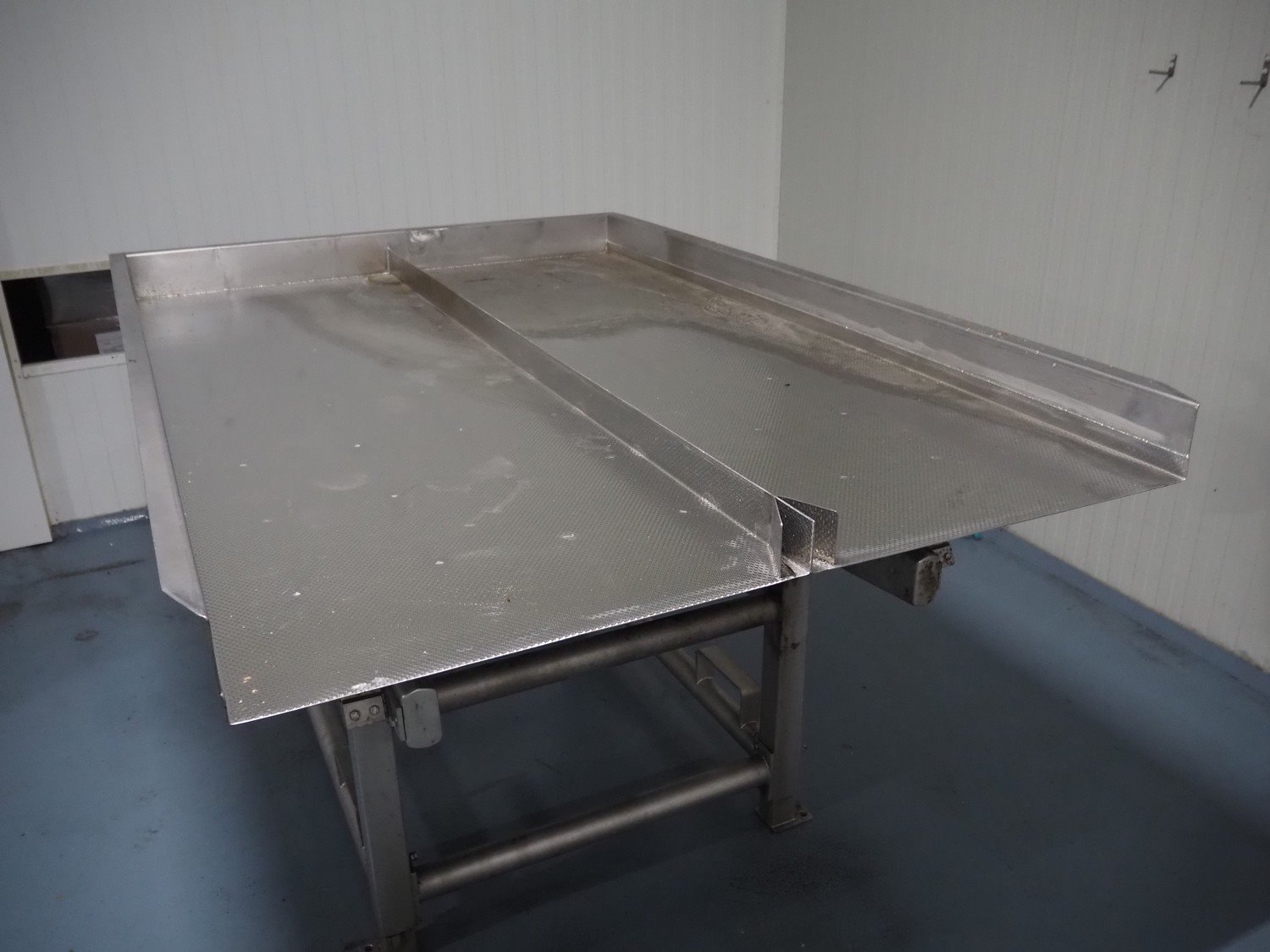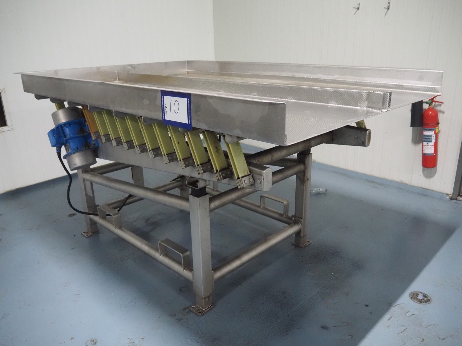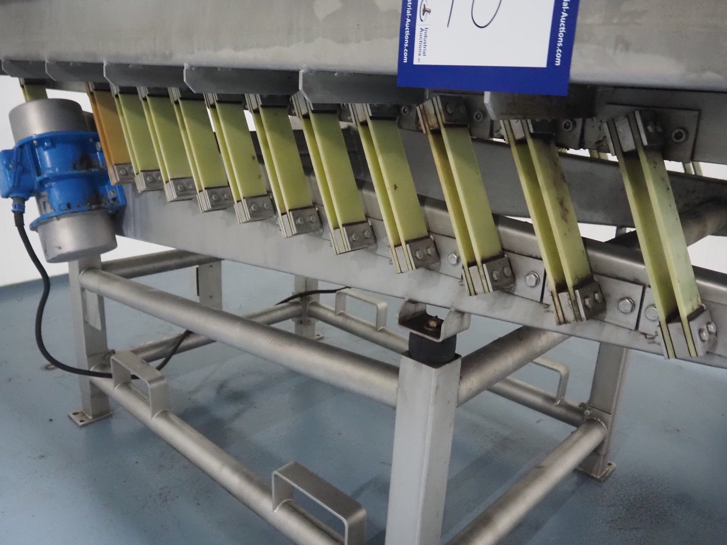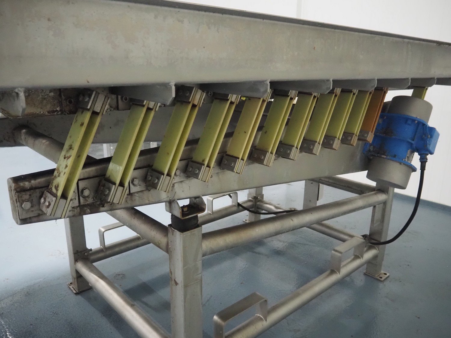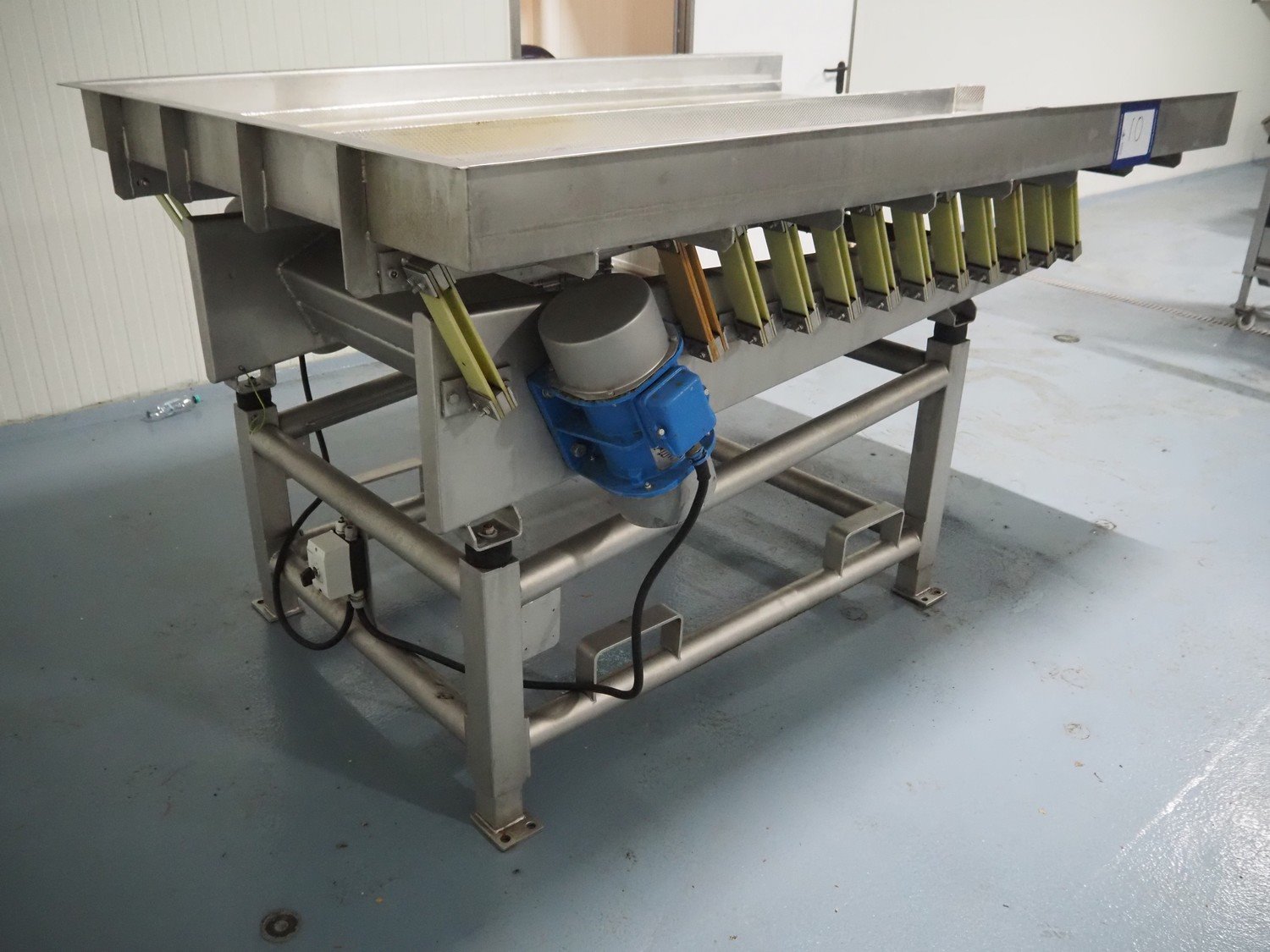 S/s vibrating gutter, 2 lanes, gutter width: (2x) 770 mm, total dimensions: 2400 mm x 1630 mm x 1340 mm. Kavel locatie: Grintweg 40 A, 4401 NG Yerseke, Nederland