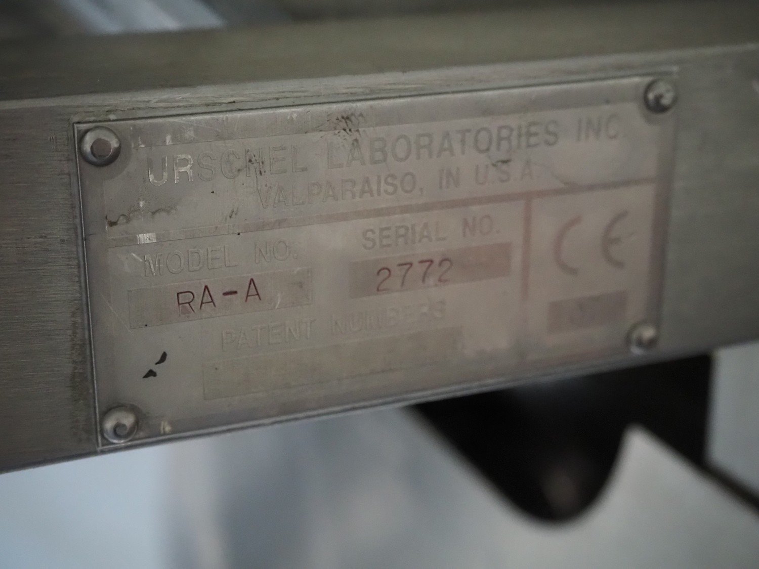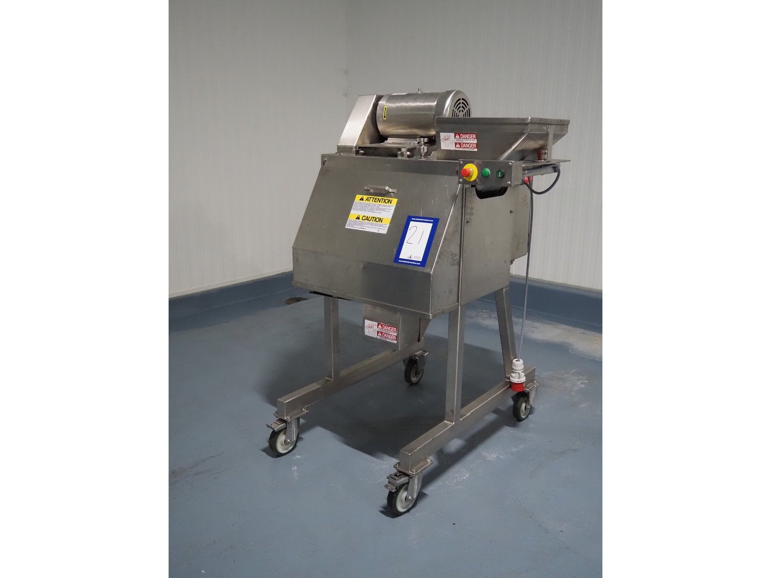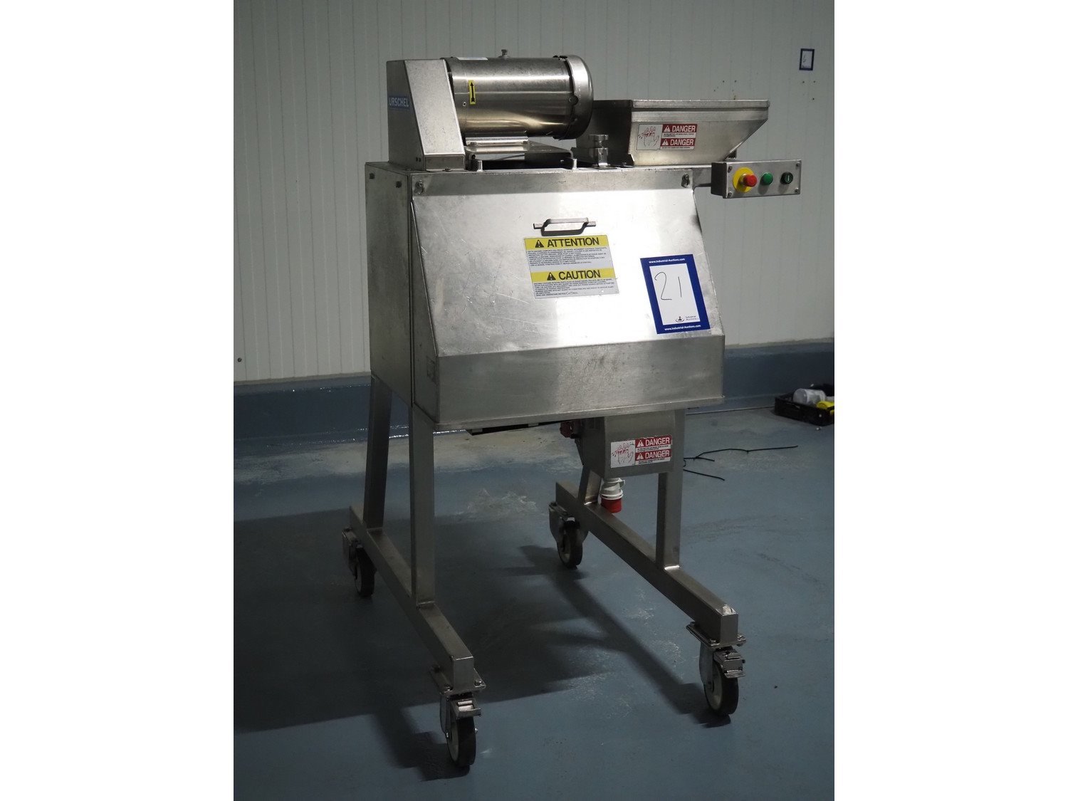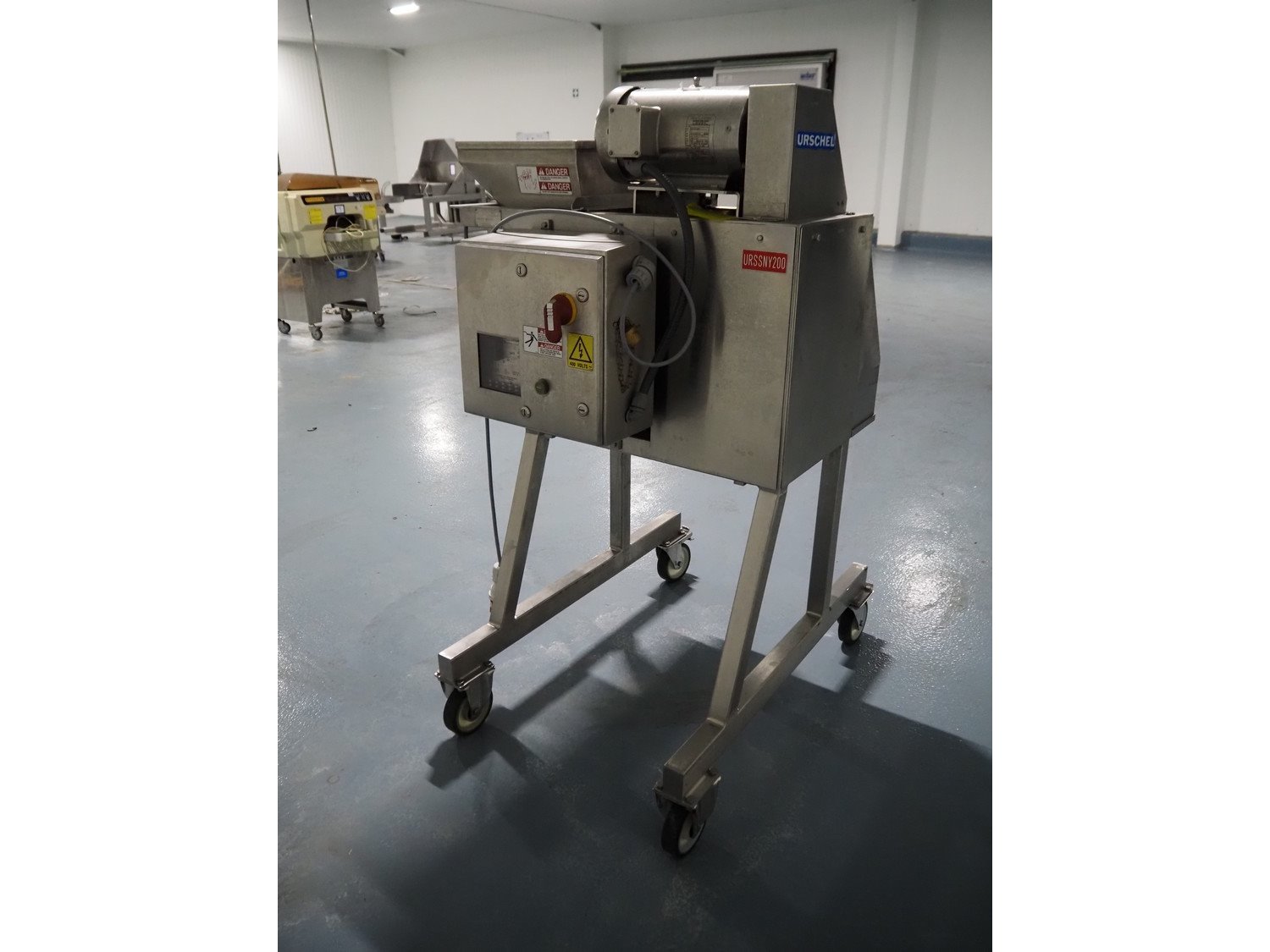 Urschel mobile dicer, type: RA-A, serial number: 2772, year of construction: 2007, infeed clearance: 300 mm x 340 mm, working width: 145 mm, knife dimensions: 100 mm x Ø 330 mm, total dimensions: 1350 mm x 1100 mm x 2100 mm. Kavel locatie: Grintweg 40 A, 4401 NG Yerseke, Nederland
