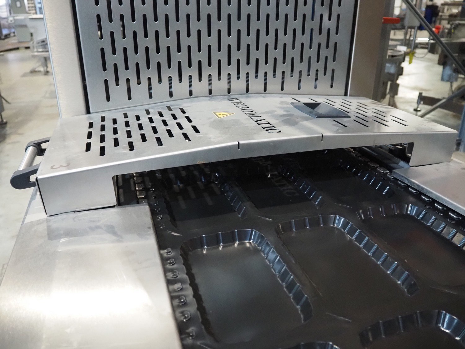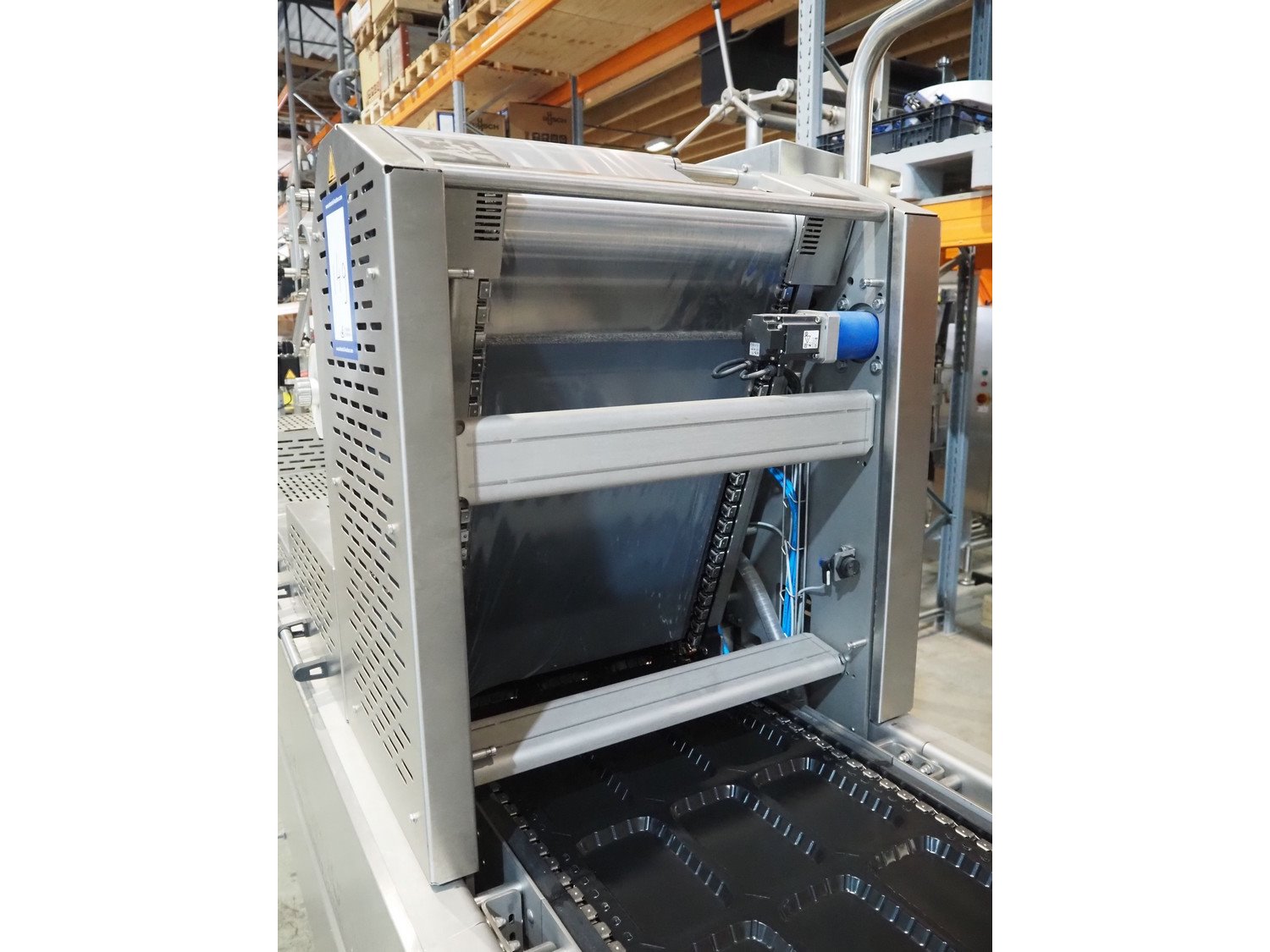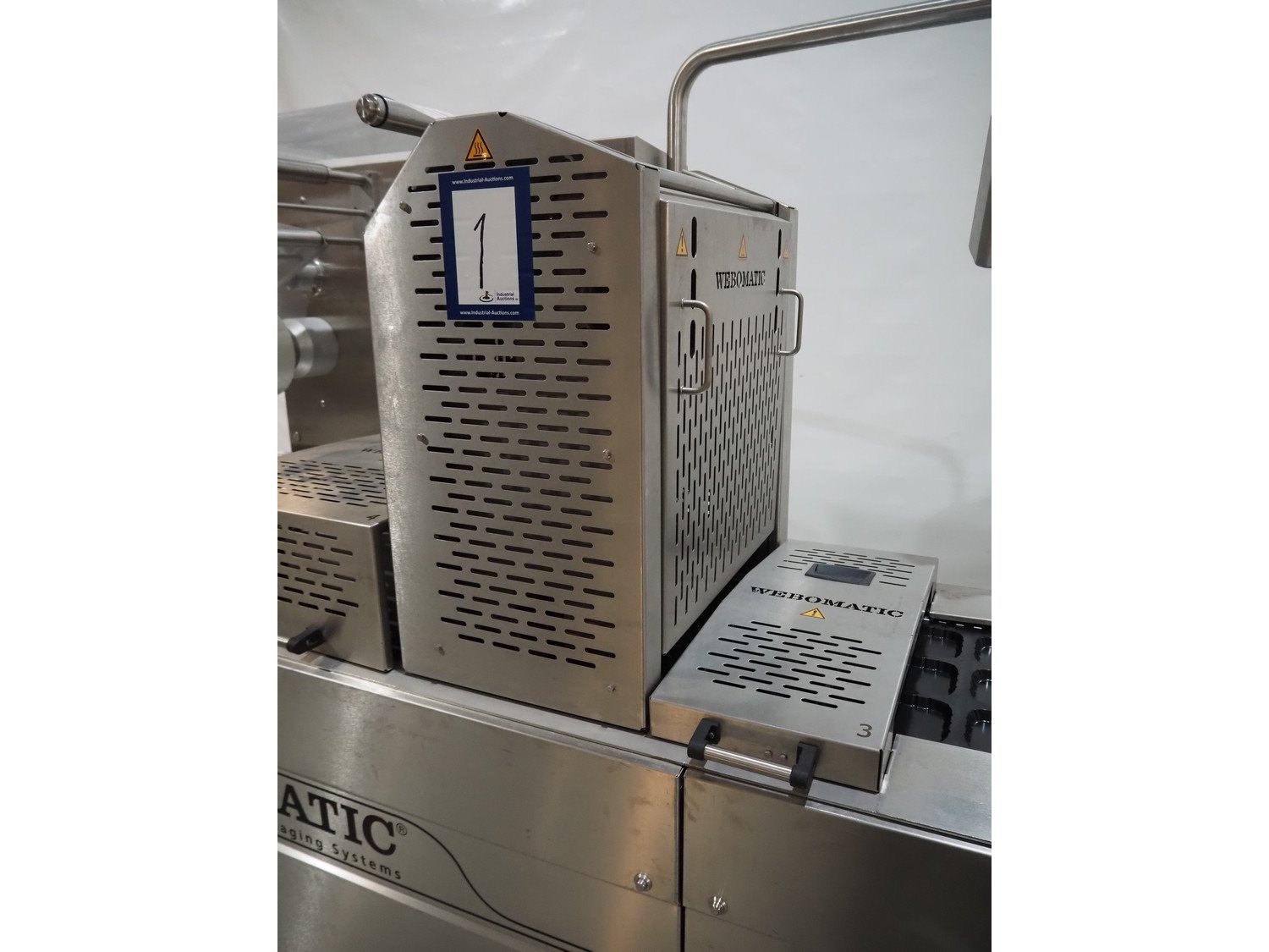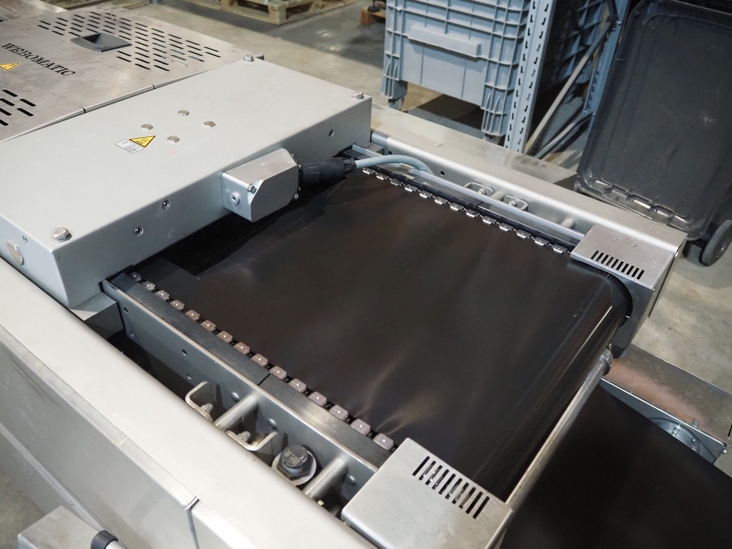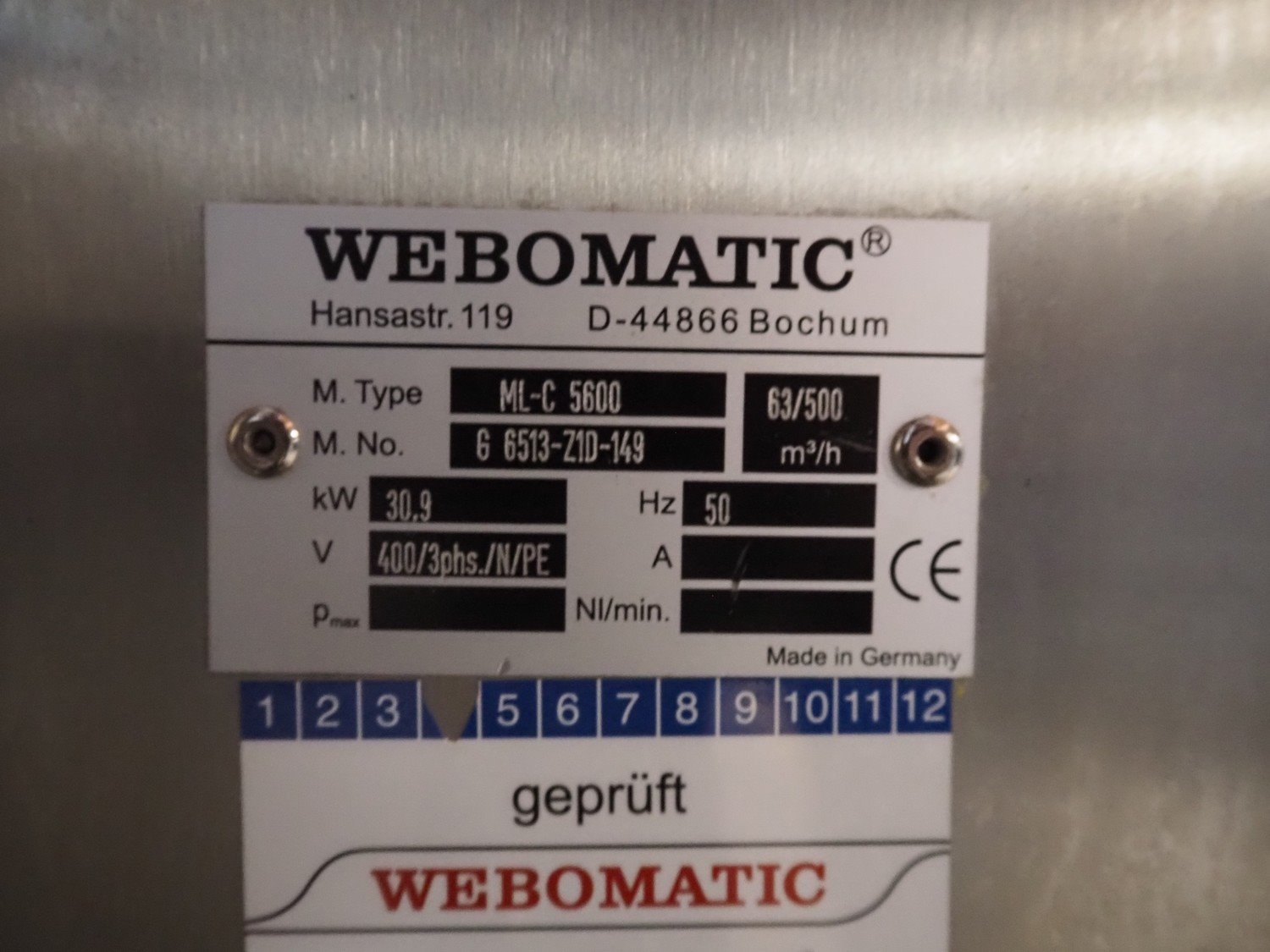 Webomatic thermoformer, type: ML-C 5600, machine number; G 6513-Z1D-149, 400 V, 3 Ph, 50 Hz, 30.9 kW, Busch vacuum pumps, film width: 460 mm, dimensions dye: (3x) 215 mm x 140 mm, plastic mesh outfeed belt, belt width: 400 mm, total dimensions: 6870 mm x 1200 mm x 2200 mm. Kavel locatie: Amfoor 6, 4421 SE Kapelle, Nederland