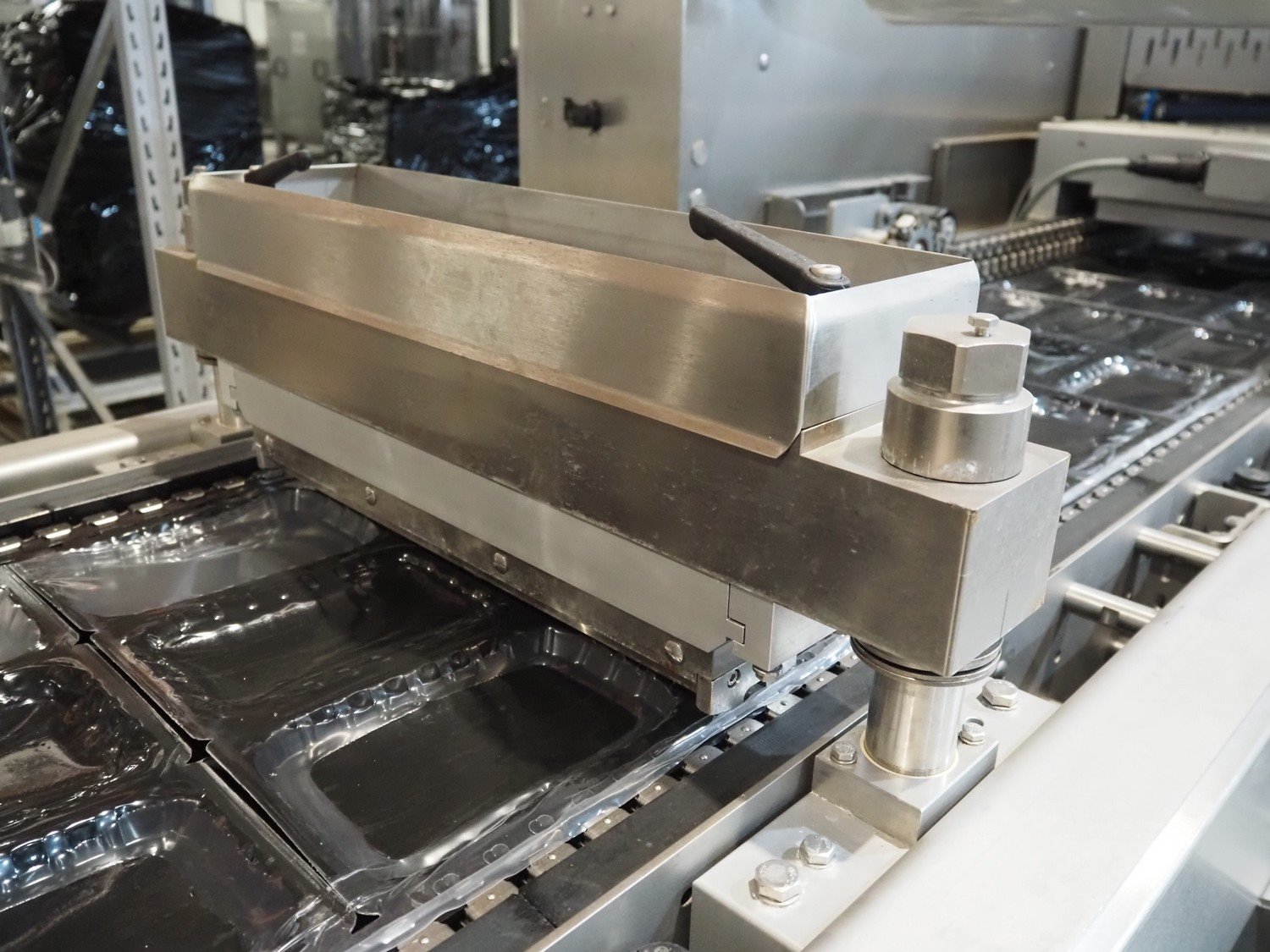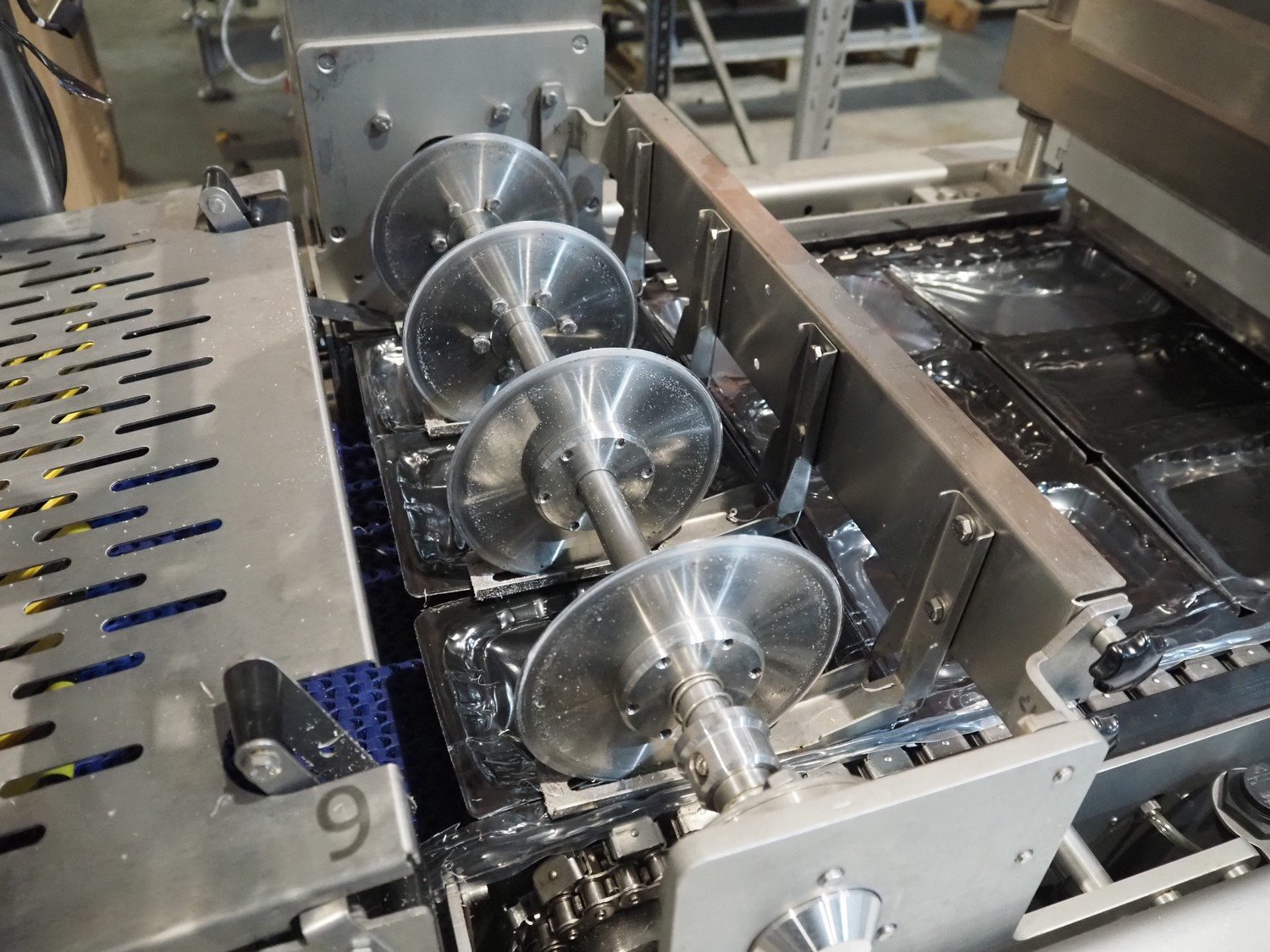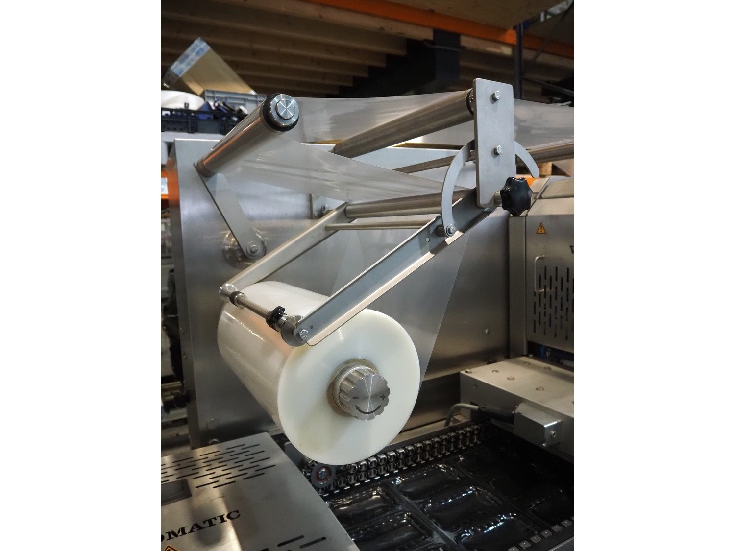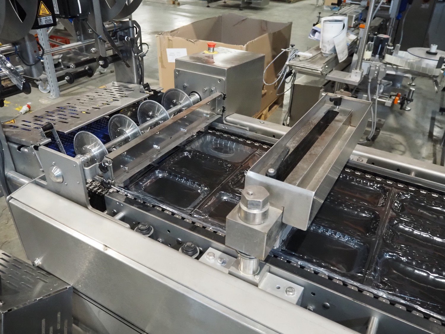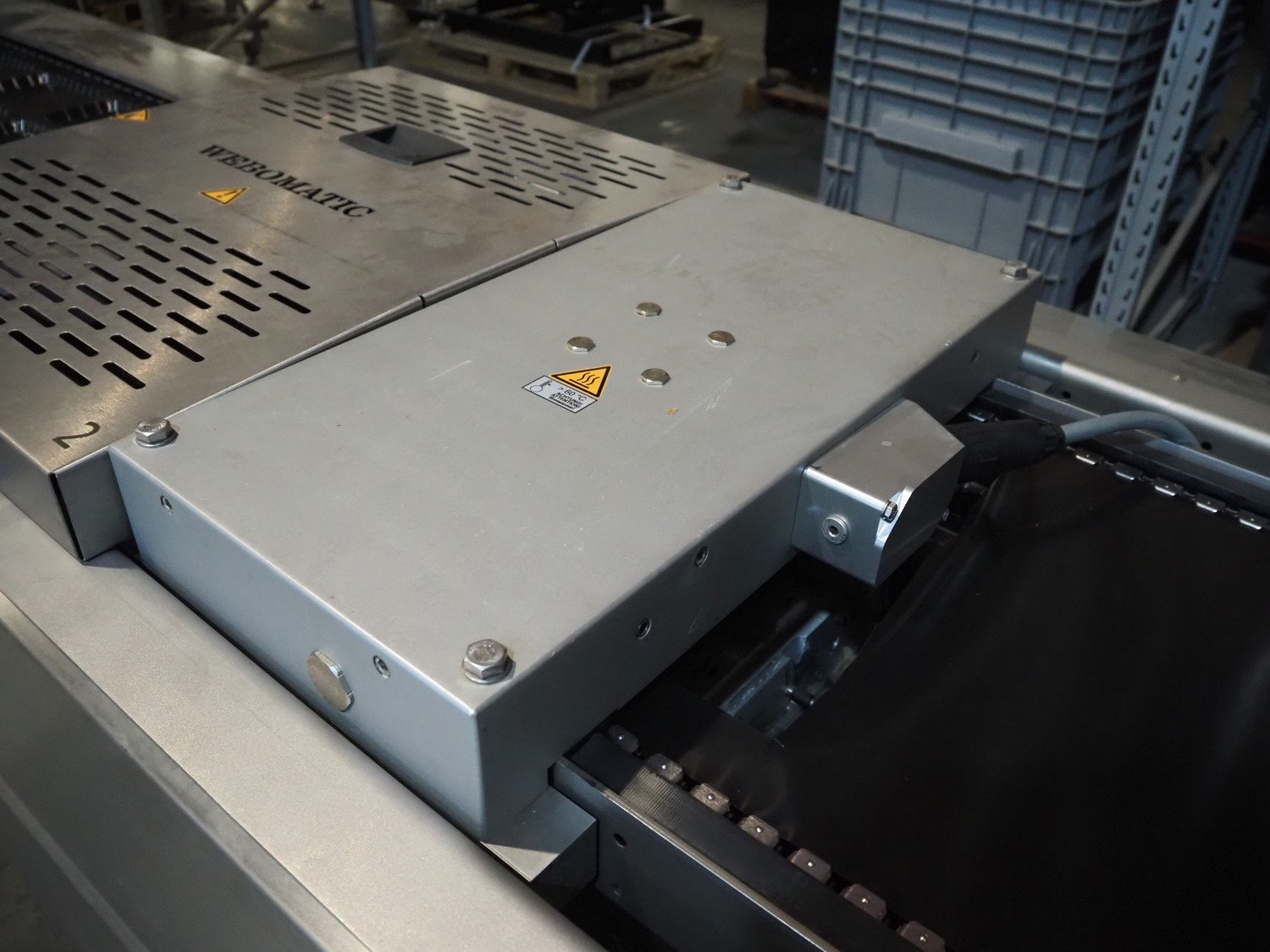 Webomatic thermoformer, type: ML-C 5600, machine number; G 6513-Z1D-149, 400 V, 3 Ph, 50 Hz, 30.9 kW, Busch vacuum pumps, film width: 460 mm, dimensions dye: (3x) 215 mm x 140 mm, plastic mesh outfeed belt, belt width: 400 mm, total dimensions: 6870 mm x 1200 mm x 2200 mm. Kavel locatie: Amfoor 6, 4421 SE Kapelle, Nederland