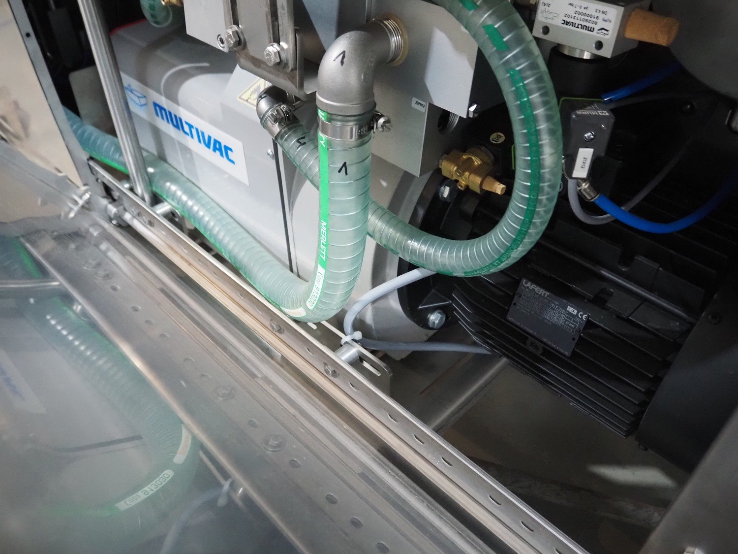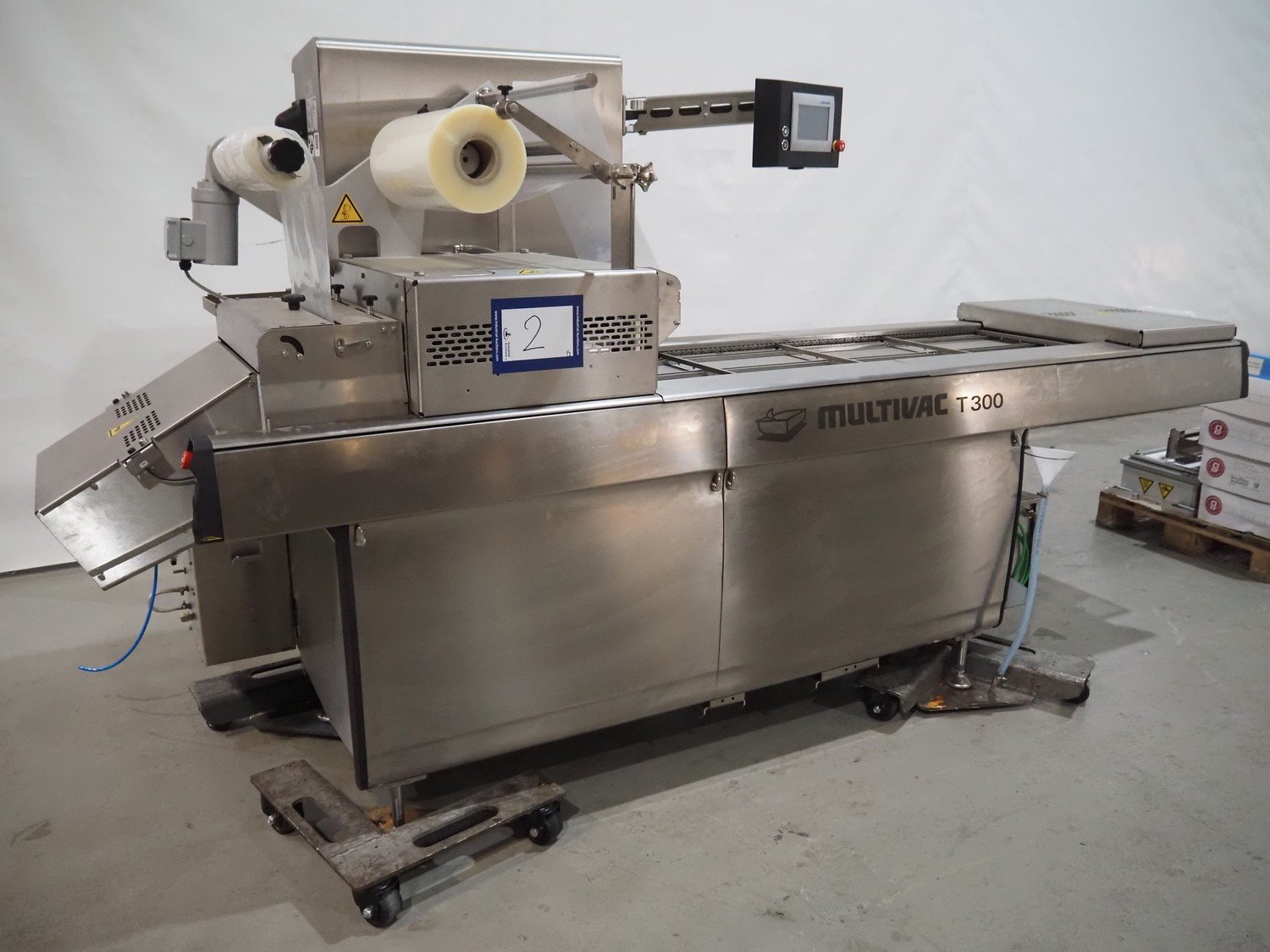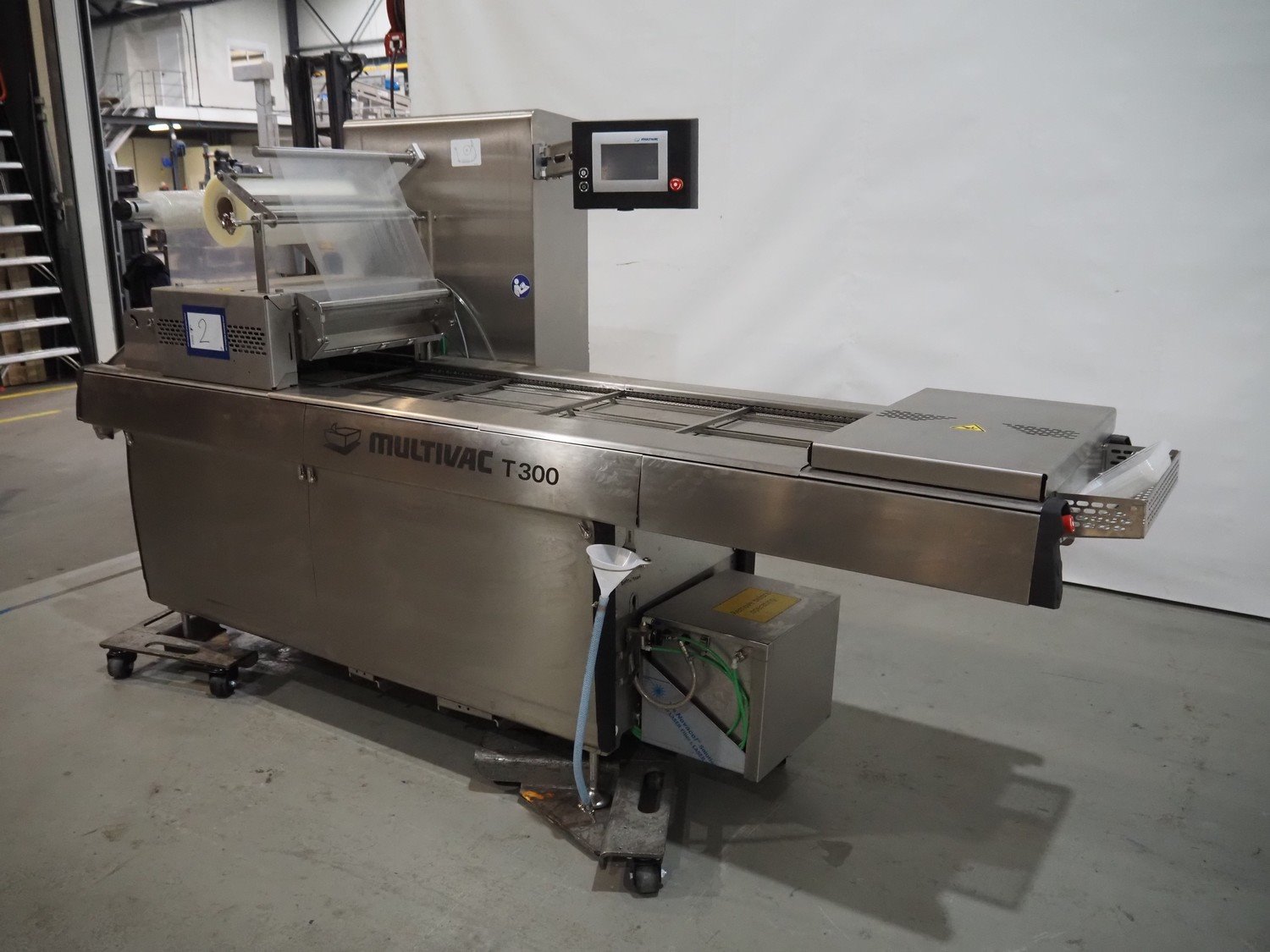 Multivac traysealer, type: T300, serial number: 310724, year of construction: 2021, 400/230 V, 3 Ph, 50 Hz, 34.7 A, 8.8 kW, Busch vacuum pump, capacity: 100 m³ per hour, dimensions dyes: 247 mm x 314 mm, 230 mm x 145 mm, 175 mm x 228 mm and 256 mm x 175 (for skin packing), dimensions: 3200 mm x 1100 mm x 1700 mm. Kavel locatie: Amfoor 6, 4421 SE Kapelle, Nederland