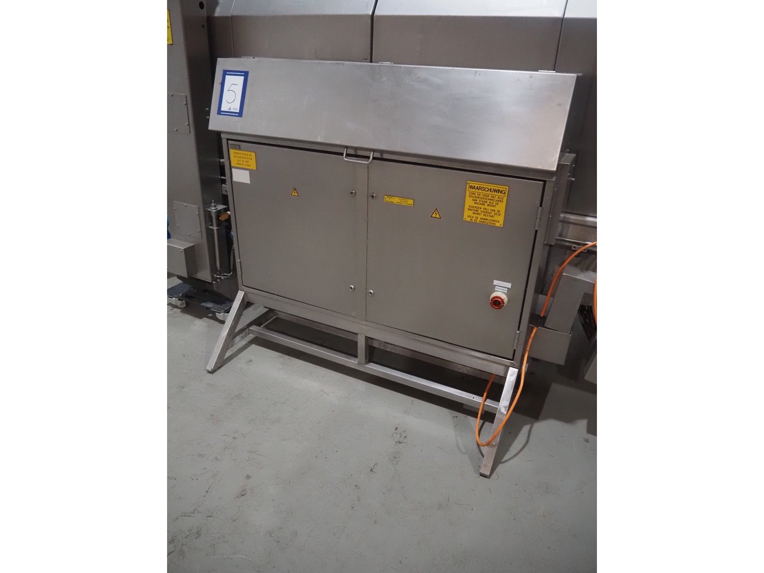 Koppens belt fryer, type: HLT 8000/600, machine number: HLT 8000/600-53, 380 V, 3 Ph, 50 Hz, 19.38 A, 8.05 kW, weight: 3500 kg, s/s belt, belt width: 600 mm, total dimensions: 8100 mm x 2100 mm x 2950 mm. Without rollies. Kavel locatie: Amfoor 6, 4421 SE Kapelle, Nederland