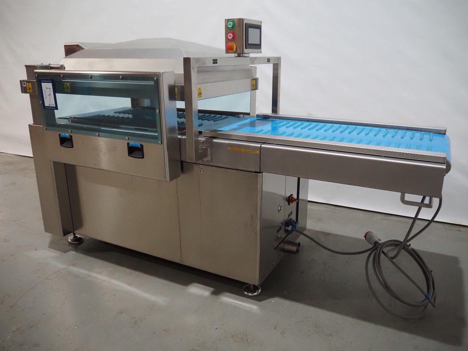 BMB belt vacuum machine, model: CP 10.65, serial number: M0000466, year of construction: 2020, 400 V, 3 Ph, 50 Hz, 4 kW, weight: 600 kg, plastic belt with dividers, belt width: 620 mm, divider height: 8 mm, distance between divider: 40 mm, seal length: (2x) 1010 mm, total dimensions: 2670 mm x 1230 mm x 1670 mm. Without vacuum pump. Kavel locatie: Amfoor 6, 4421 SE Kapelle, Nederland