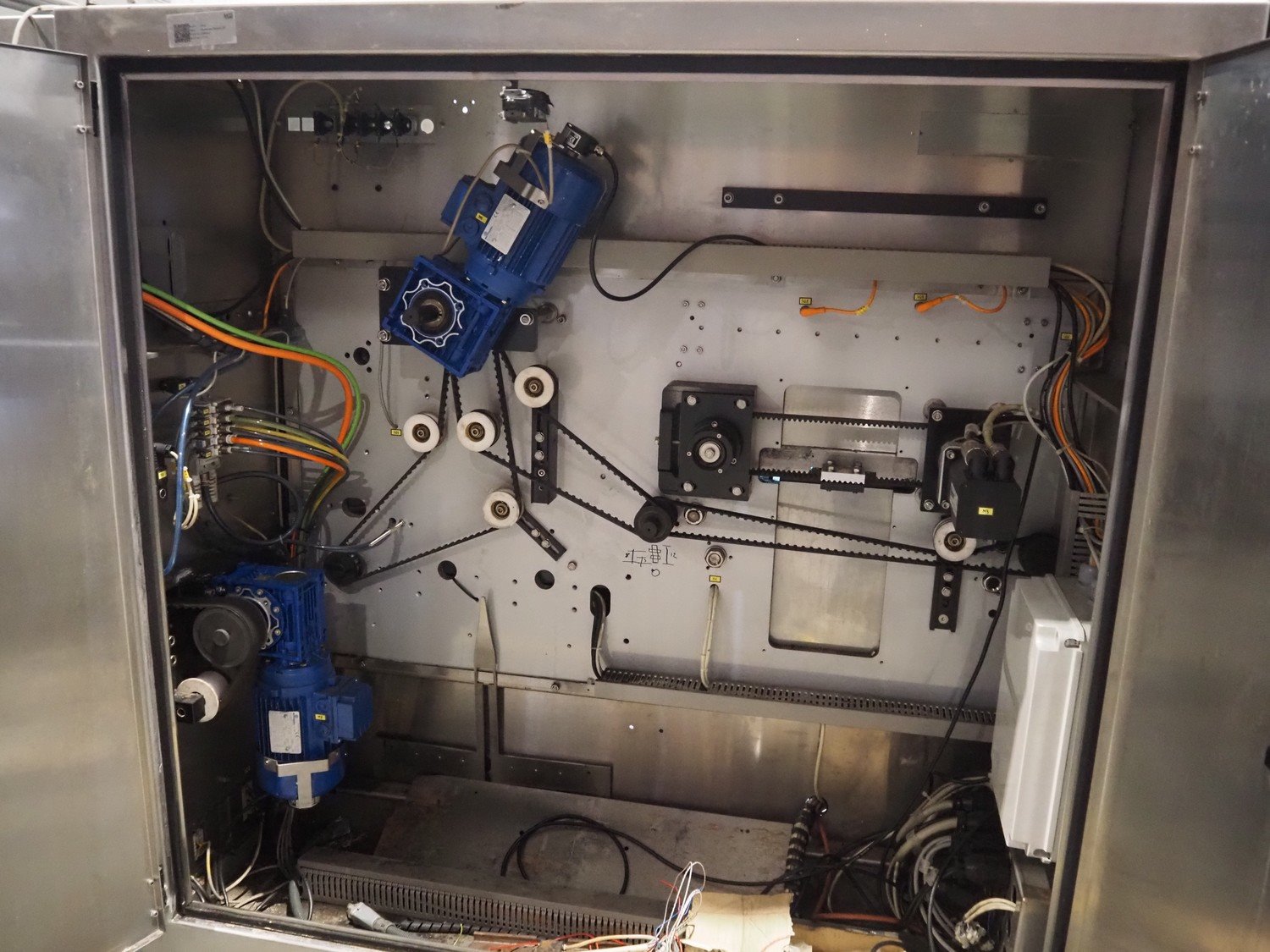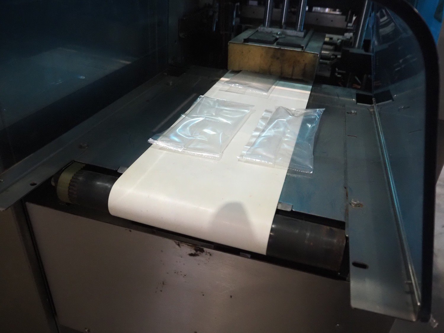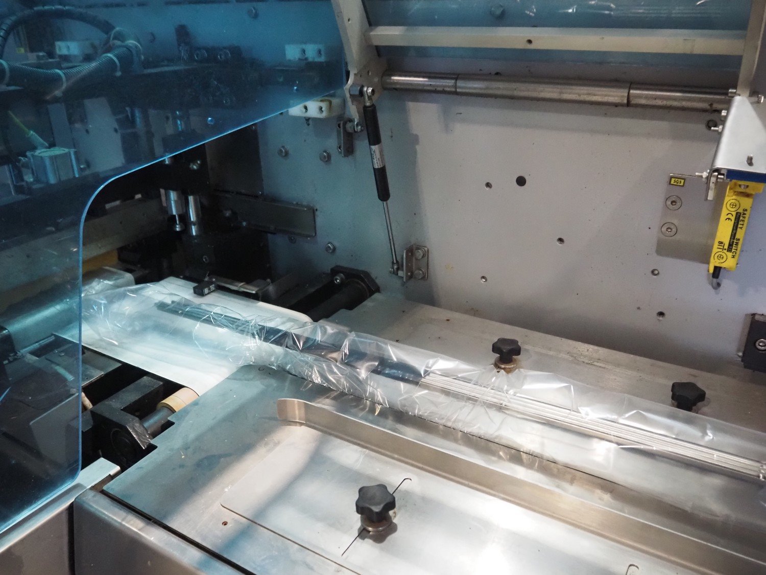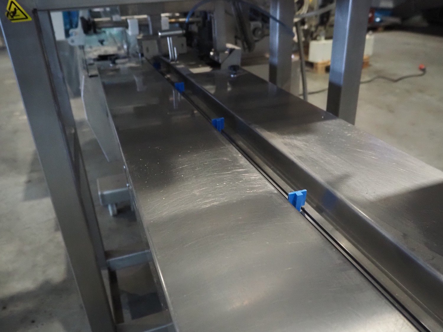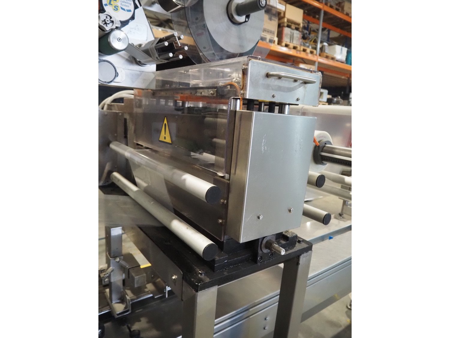 Ulma mobile flowpacker, model: Nevada BS, number: 1300052, year of construction: 2003, 380 V, 50 Hz, 23 A, 5 kW, ELS labelling machine, infeed belt with dividers, belt width: 150 mm, distance between dividers: 300 mm, divider height: 30 mm, seal width: 300 mm, plastic outfeed belt, belt width: 200 mm, total dimensions: 4500 mm x 1300 mm x 1150 mm. Kavel locatie: Amfoor 6, 4421 SE Kapelle, Nederland