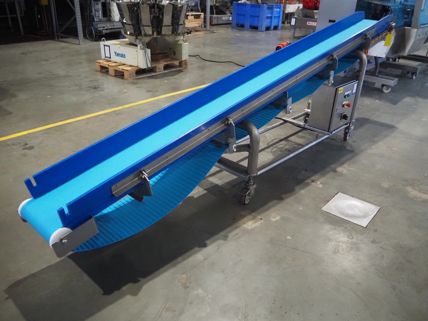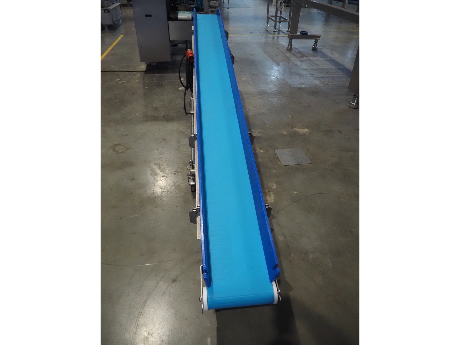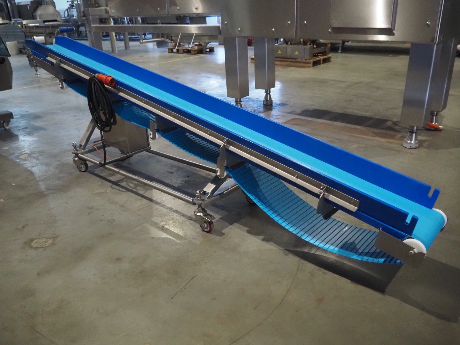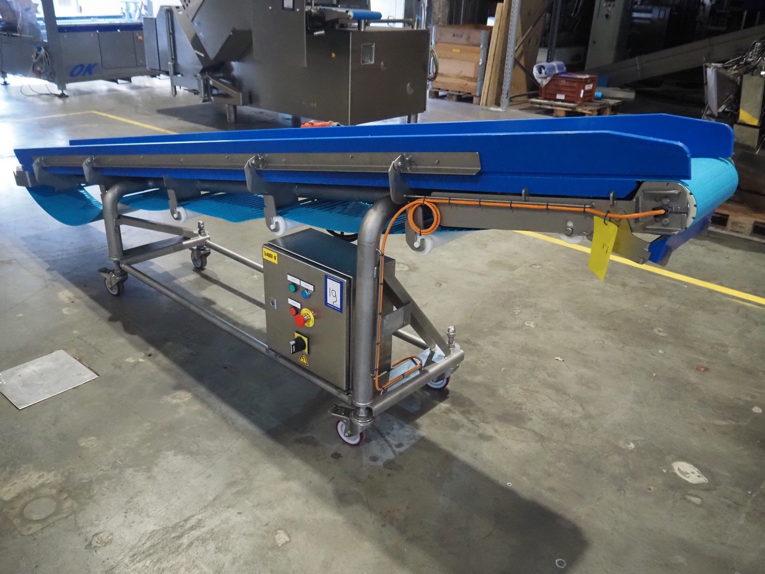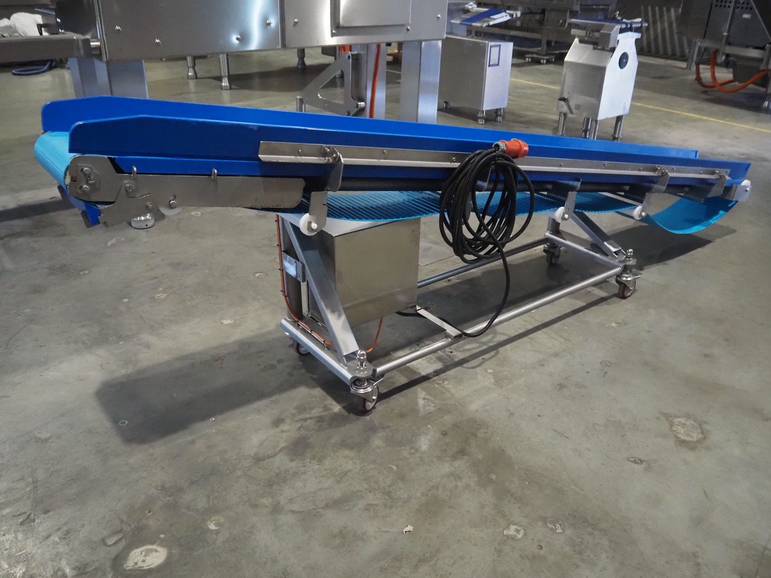 Intocon NV mobile elevating belt, s/s frame, type: TD8026, serial number: 16-045-01, year of construction: 2016, plastic belt, belt width: 290 mm, elevating height: 980 mm, total dimensions: 3550 mm x 560 mm x 1060 mm. Kavel locatie: Amfoor 6, 4421 SE Kapelle, Nederland