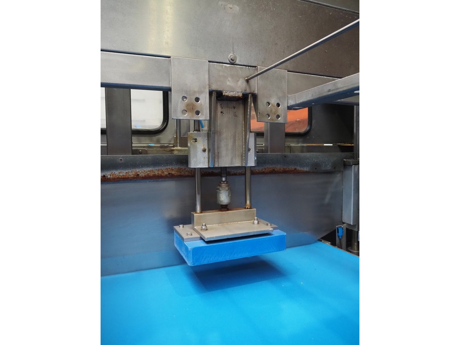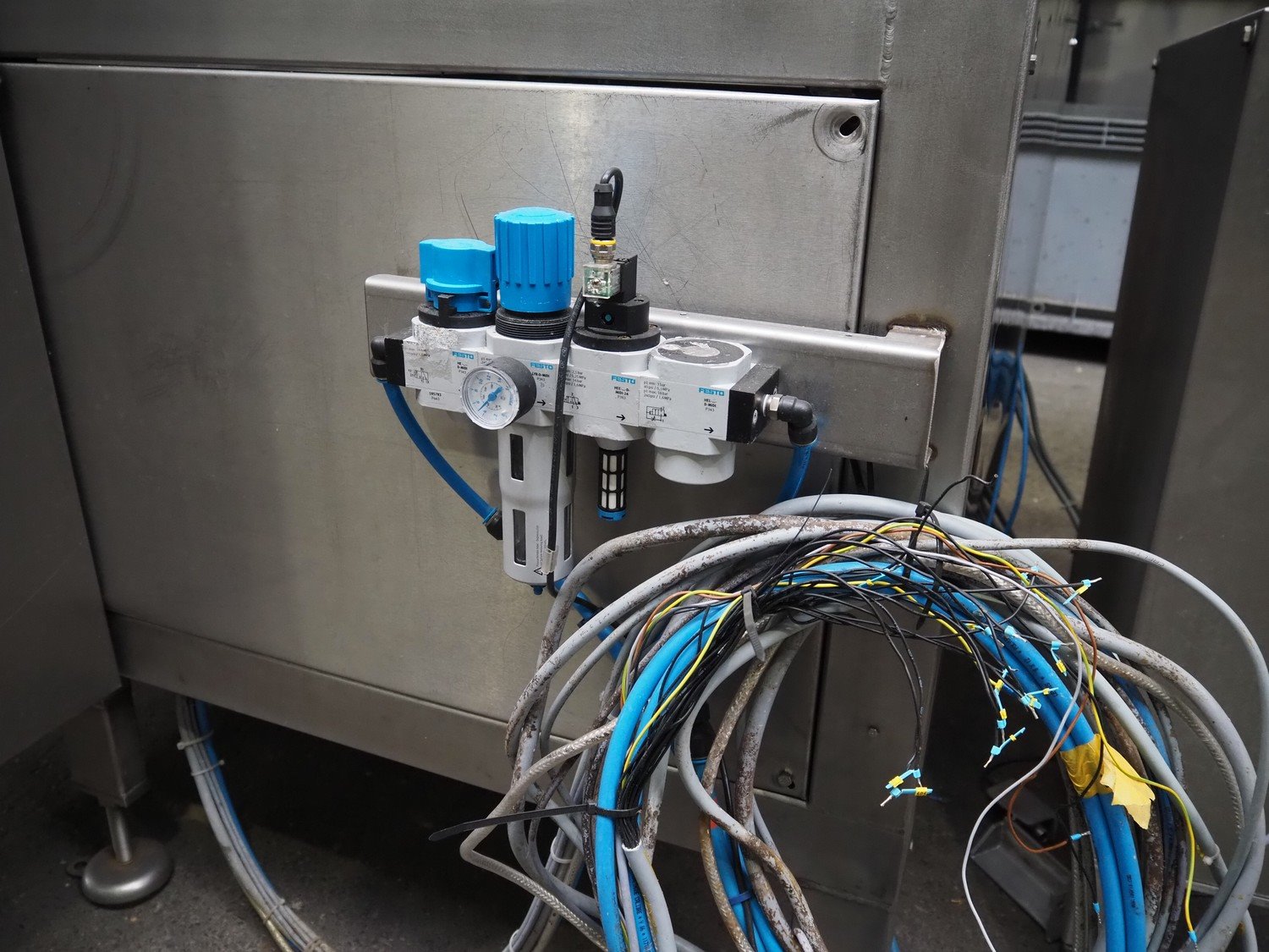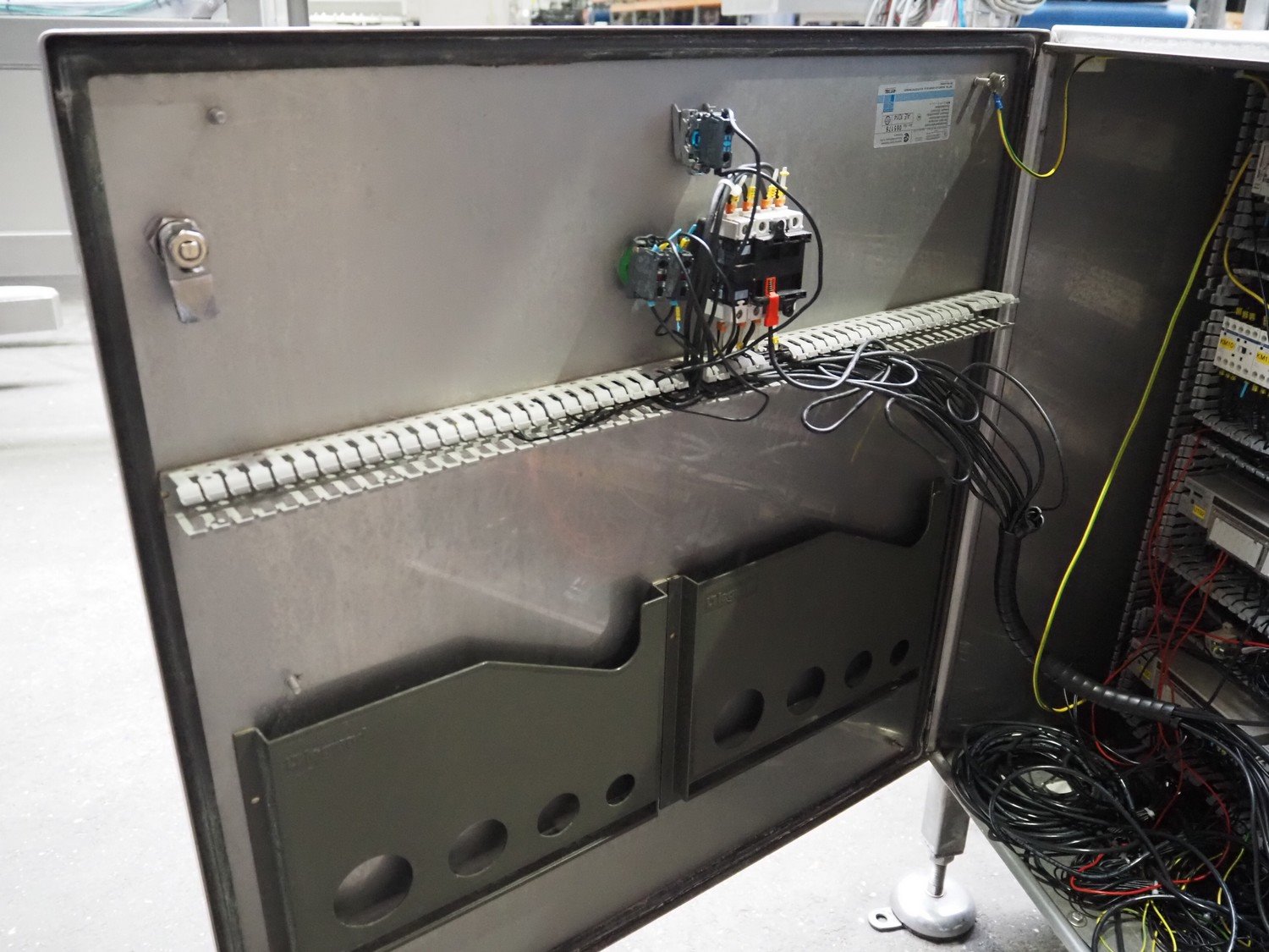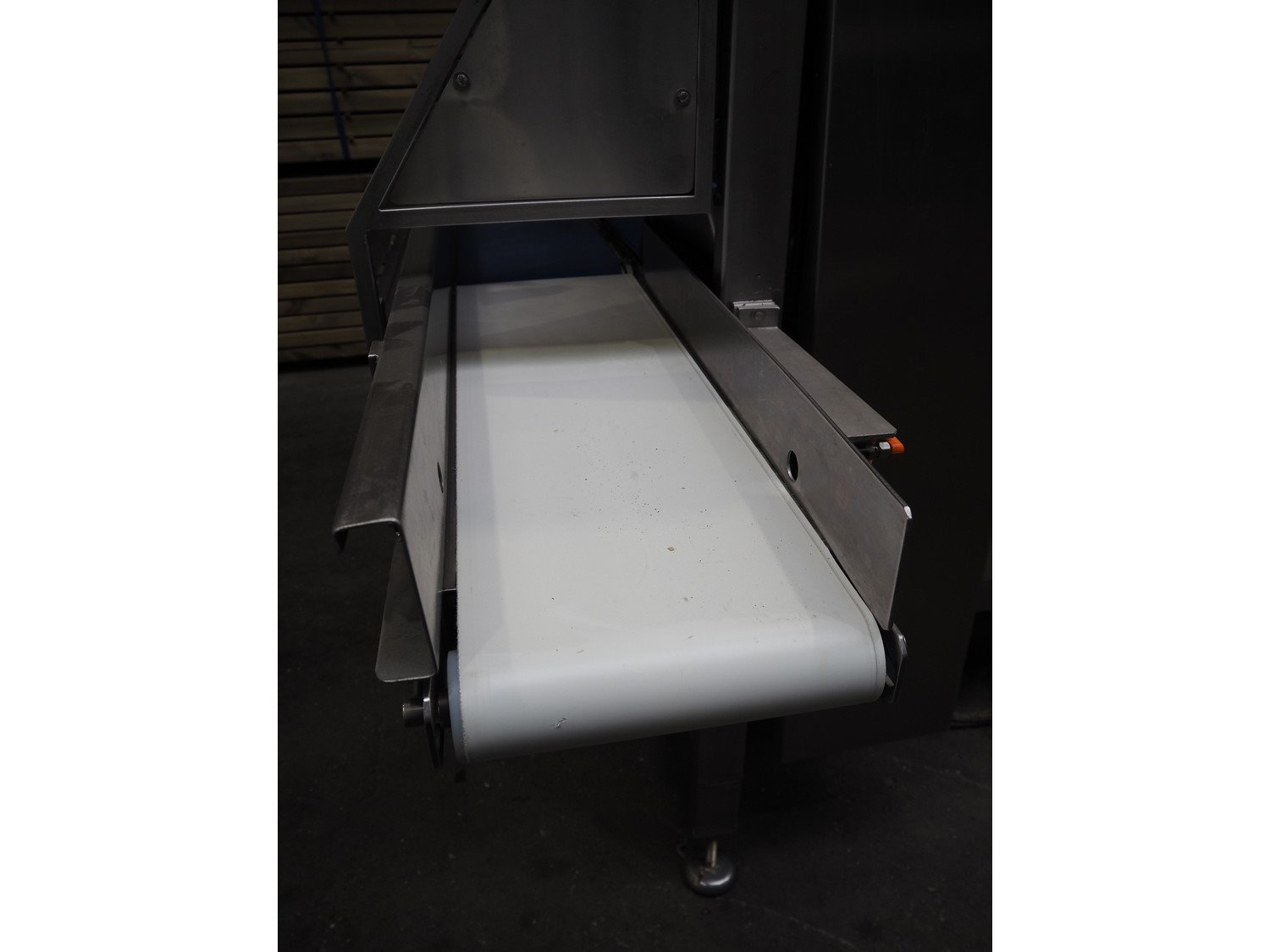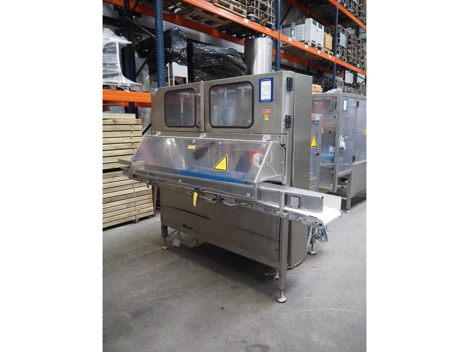 Selvex SA portioning machine, number: COL21-2, year of construction: 2002, 400 V, 3 Ph, 7 kW, infeed plastic belt, belt width: 1010 mm, clearance: 1230 mm x 500 mm, knive width: (1x) 1060 mm (1x) 340 mm, plastic belt, belt width: 290 mm, total dimensions: 2660 mm x 2010 mm x 2070 mm. Including s/s switch cabinet, dimensions switch cabinet: 760 mm x 340 mm x 980 mm. Kavel locatie: Amfoor 6, 4421 SE Kapelle, Nederland