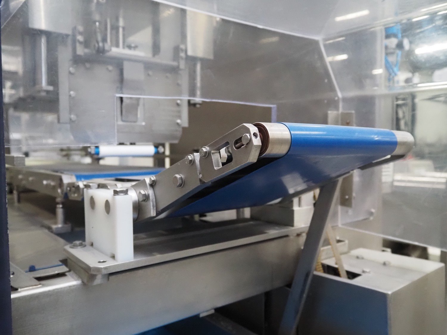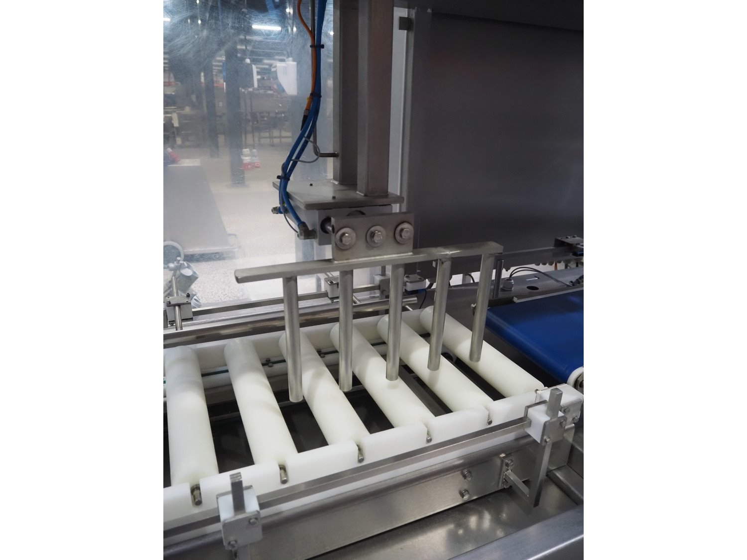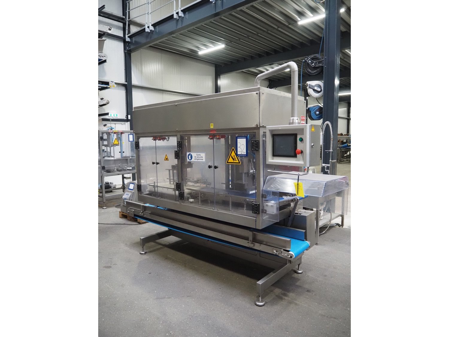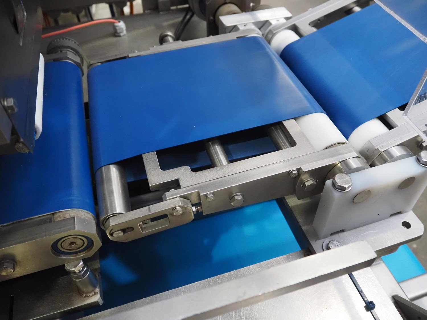 Selvex SA portioning machine with ejector, plastic belt, belt width: 270 mm and 310 mm, clearance: 410 mm x 150 mm, plastic rollers, roller width: 350 mm, knive width: 270 mm, total dimensions: 3650 mm x 1300 mm x 2220 mm. Kavel locatie: Amfoor 6, 4421 SE Kapelle, Nederland