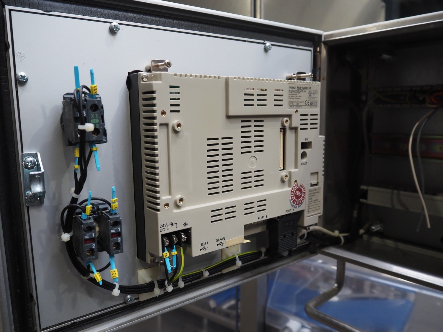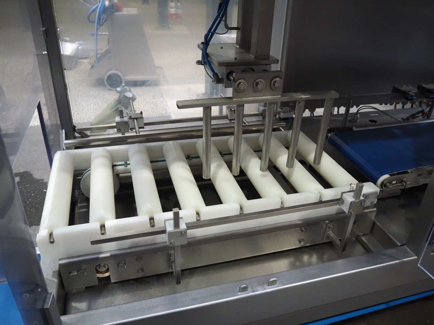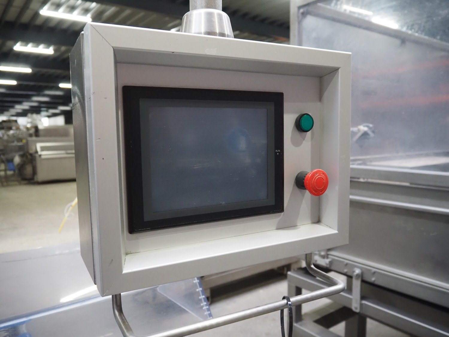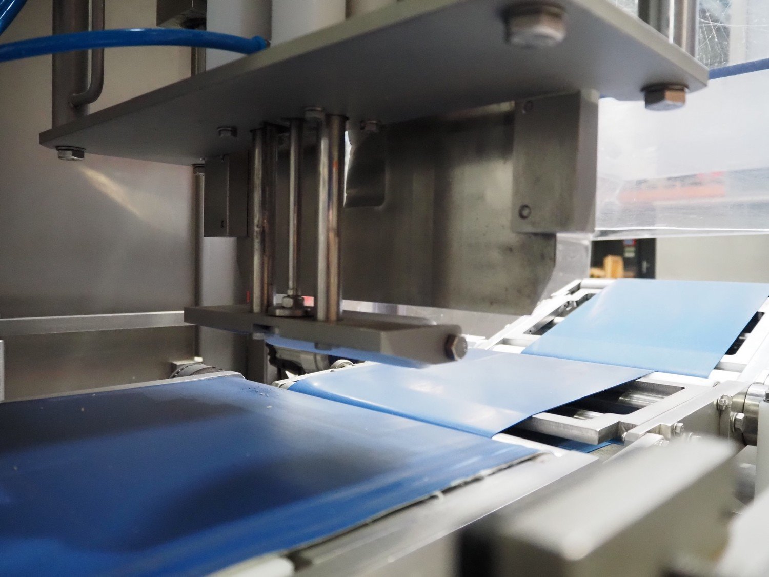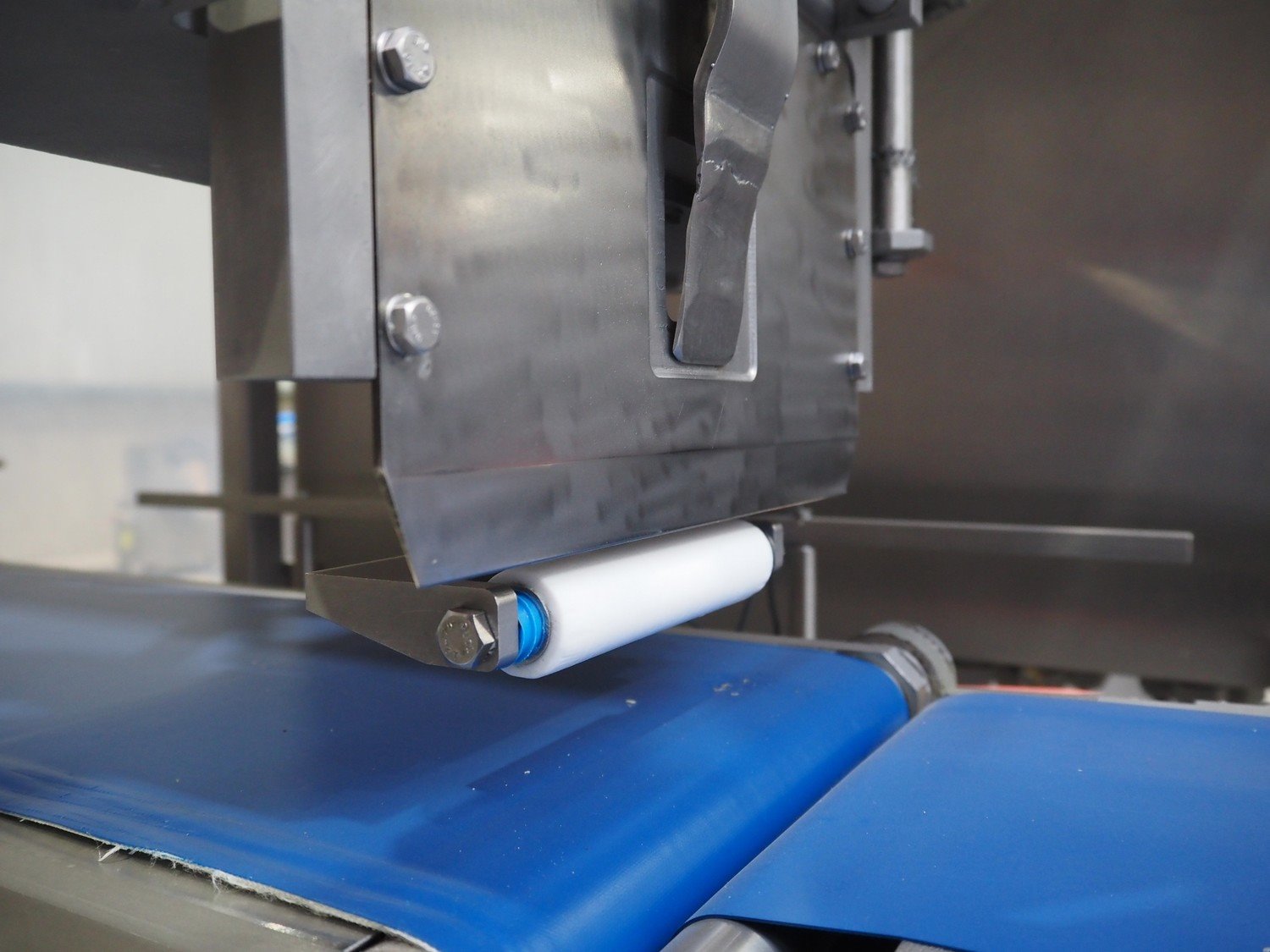 Selvex SA portioning machine with ejector, plastic belt, belt width: 270 mm and 310 mm, clearance: 410 mm x 150 mm, plastic rollers, roller width: 350 mm, knive width: 270 mm, total dimensions: 3650 mm x 1300 mm x 2220 mm. Kavel locatie: Amfoor 6, 4421 SE Kapelle, Nederland