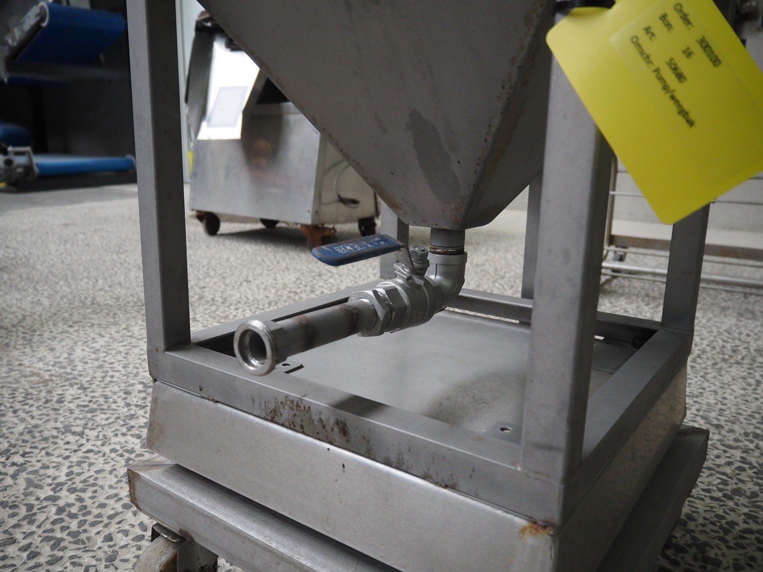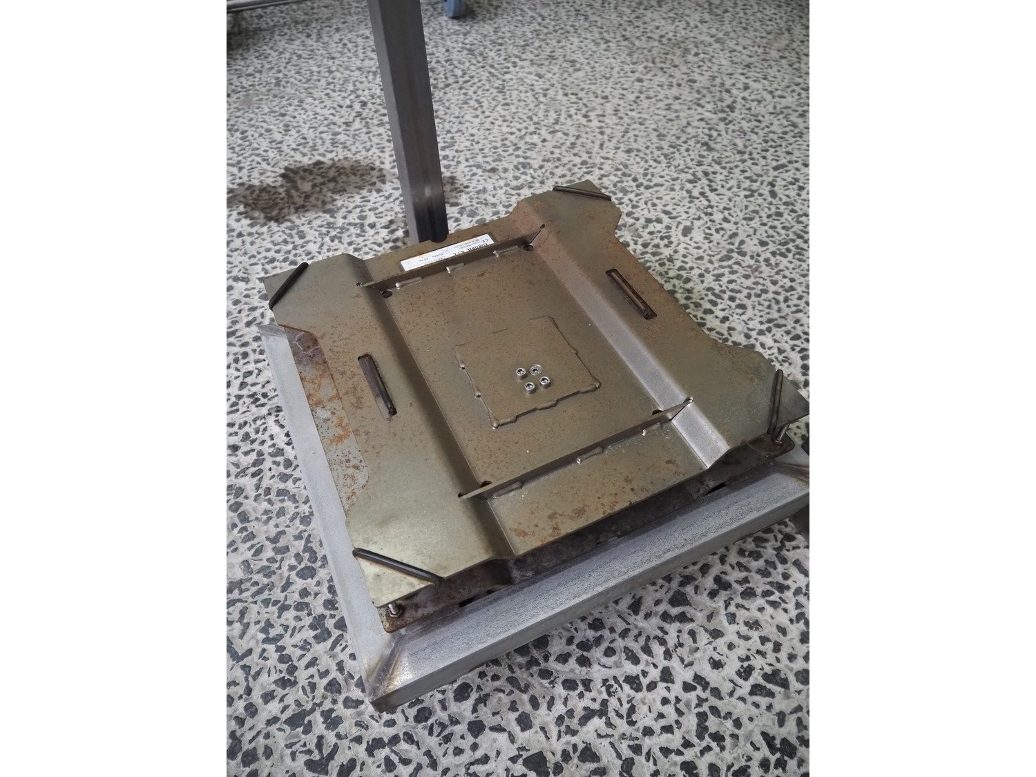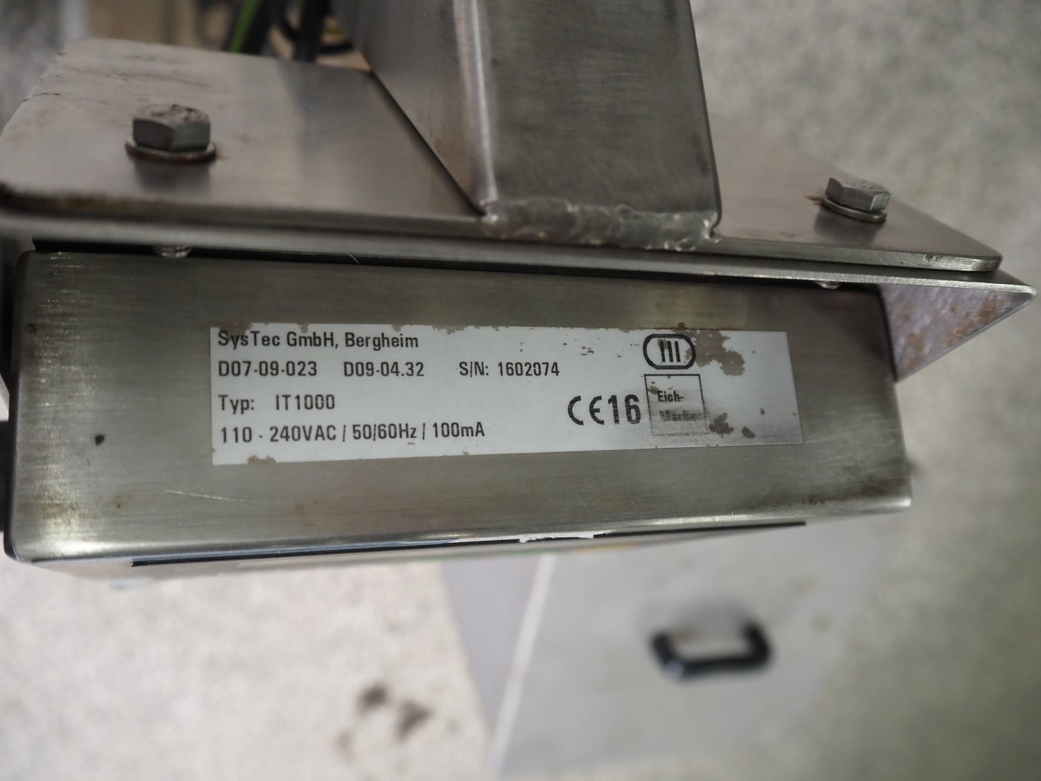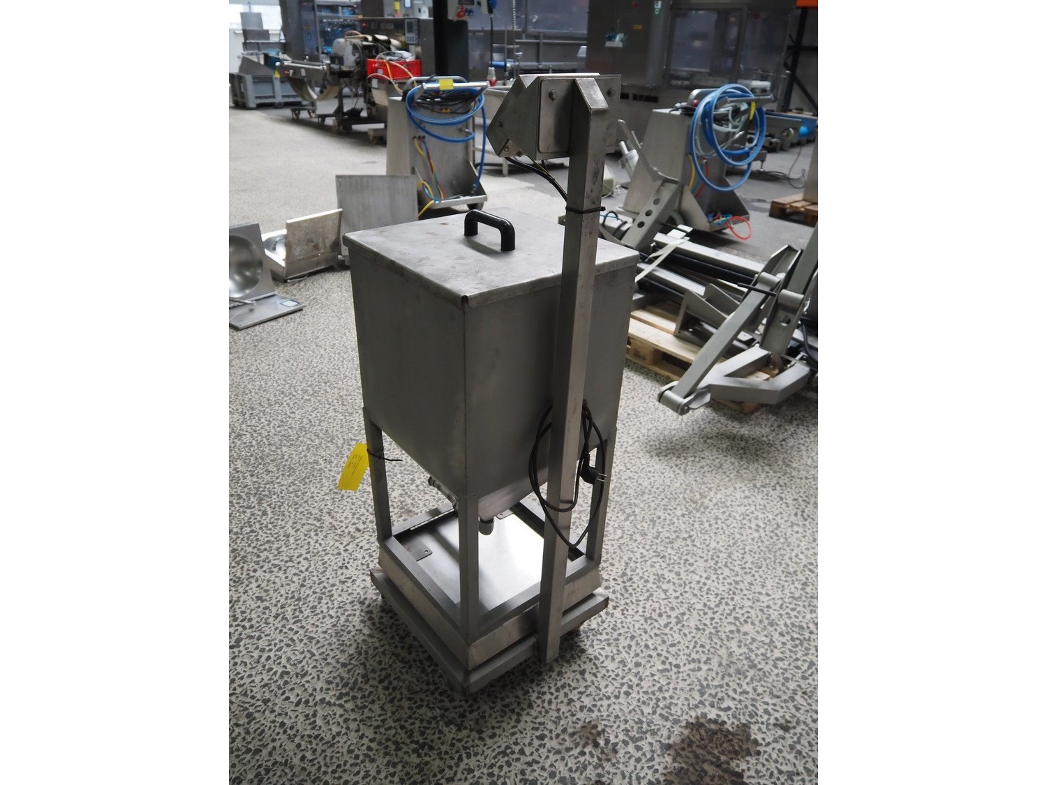 Systec mobile weighing scale with tub, type: IT 1000, serial number: 1602074, maximum weight: 30 kg, minimum weight: 0.2 kg, e=- 0.01 kg, T = -30kg, inside dimensions tub: 380 mm x 380 mm x 420 mm, total dimensions: 520 mm x 420 mm x 1370 mm. Kavel locatie: Amfoor 6, 4421 SE Kapelle, Nederland