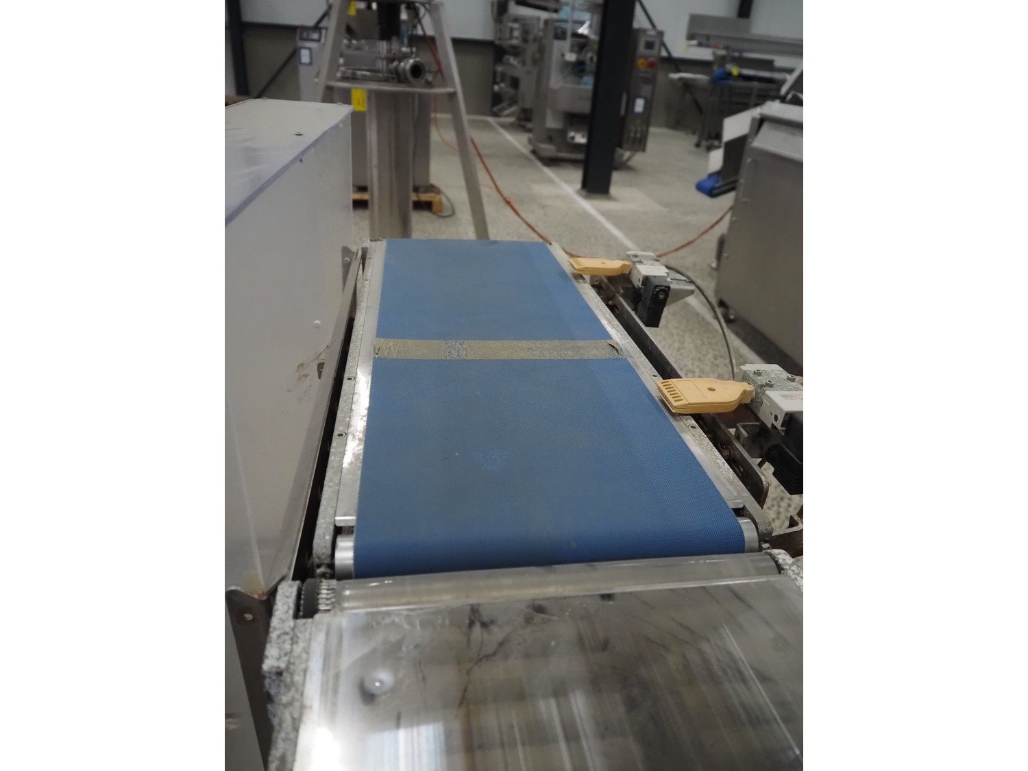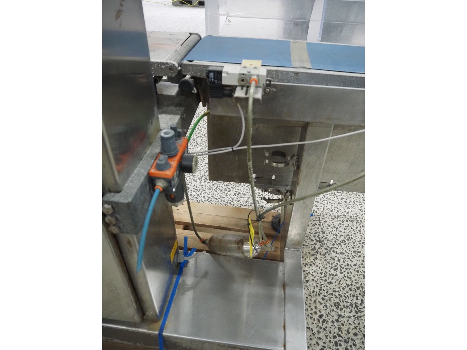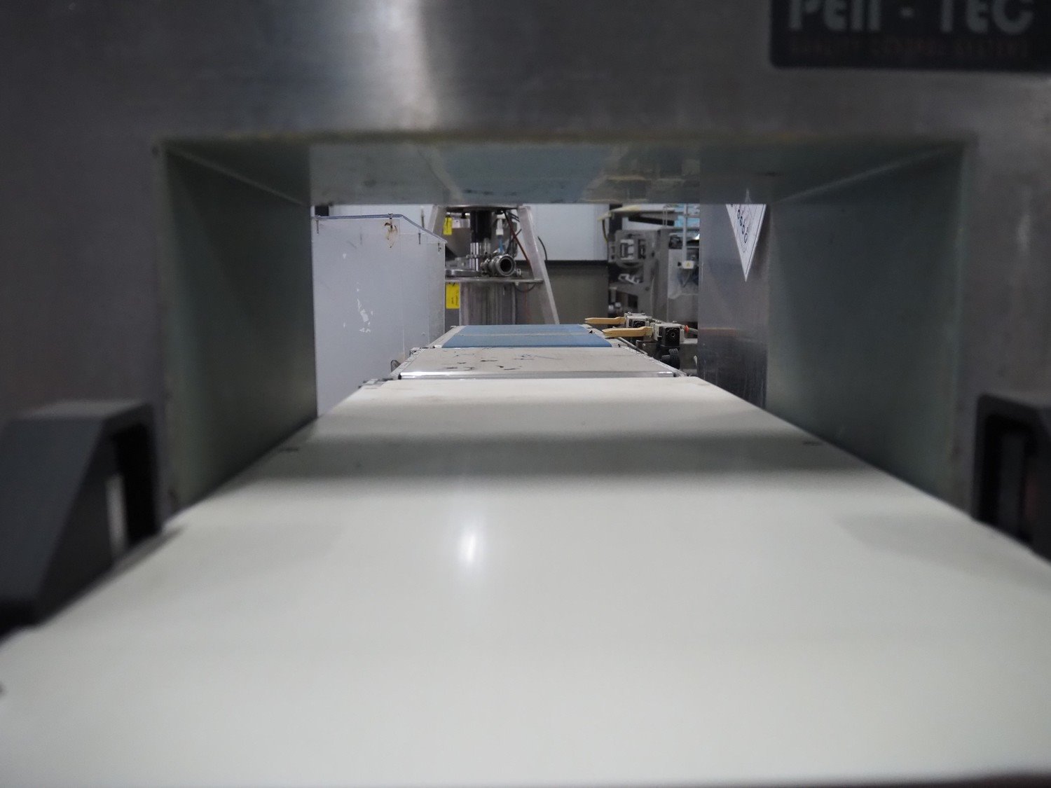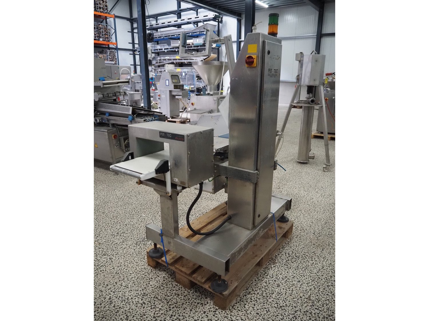 Pen-Tec metal detector with checkweigher and rejecter, model metal detector: PenTec DUAL FREQUENCY, number: 09820, clearance: 300 mm x 135 mm, plastic belt, belt width: 240 mm, model checkweigher: MSR-1200, serial number: P01215, year of construction: 2015, 230 V, 50 Hz, 4 A, maximum weight: 1200 gram, minimum weight: 50 gram, T= -750 gram, e=d= 0.5 gram, total dimensions: 1800 mm x 950 mm x 1800 mm. Kavel locatie: Amfoor 6, 4421 SE Kapelle, Nederland