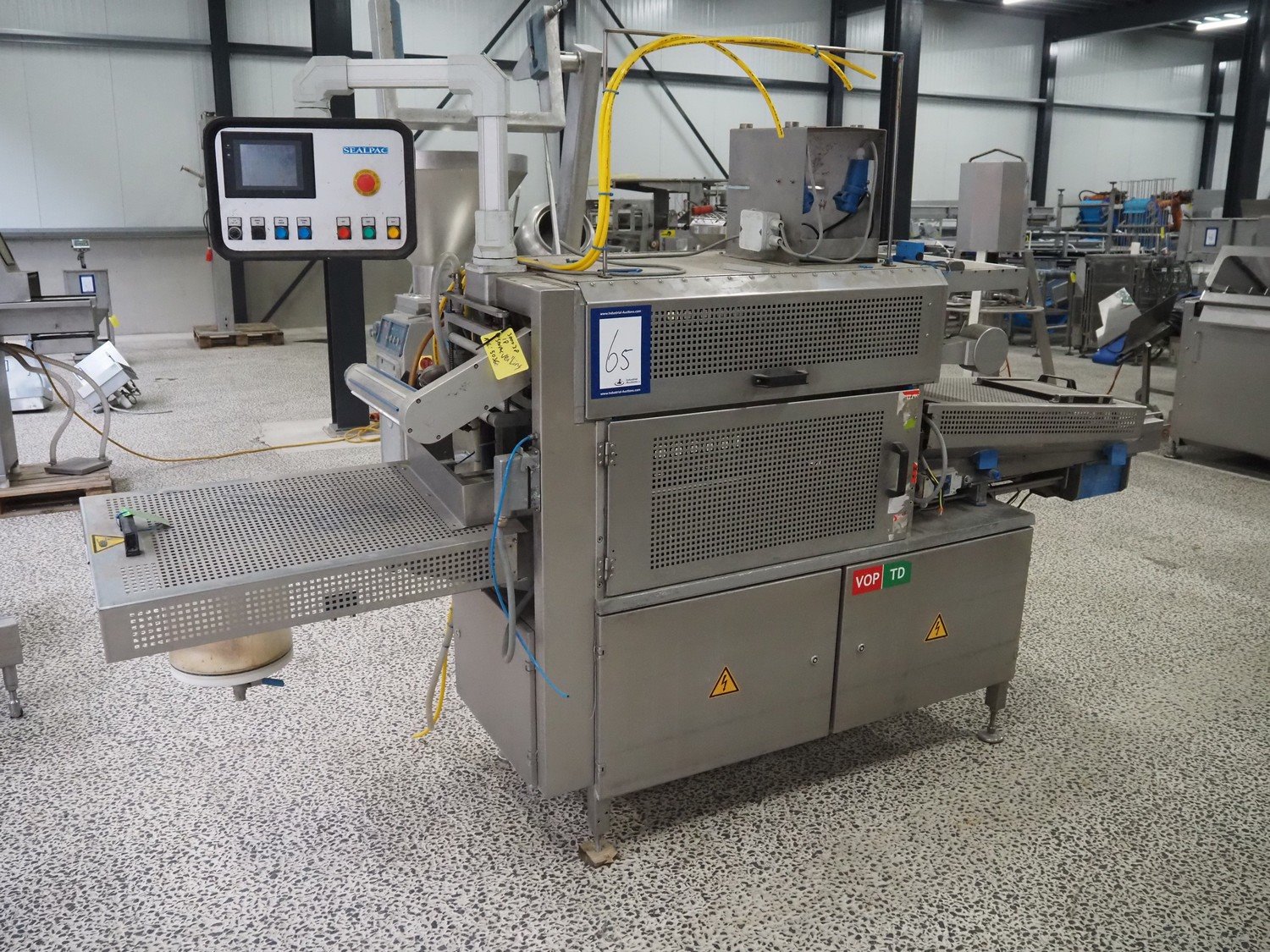 Sealpac traysealer, type: Sealpac 750, serial number: TVS 04 1650 01, year of construction: 2007, 3x400/230 V, 50-60 Hz, 6.5 kW, dye: (5x) Ø 122 mm, total dimensions: 3200 mm x 800 mm x 2000 mm. Incomplete, technical condition unknown. Kavel locatie: Amfoor 6, 4421 SE Kapelle, Nederland