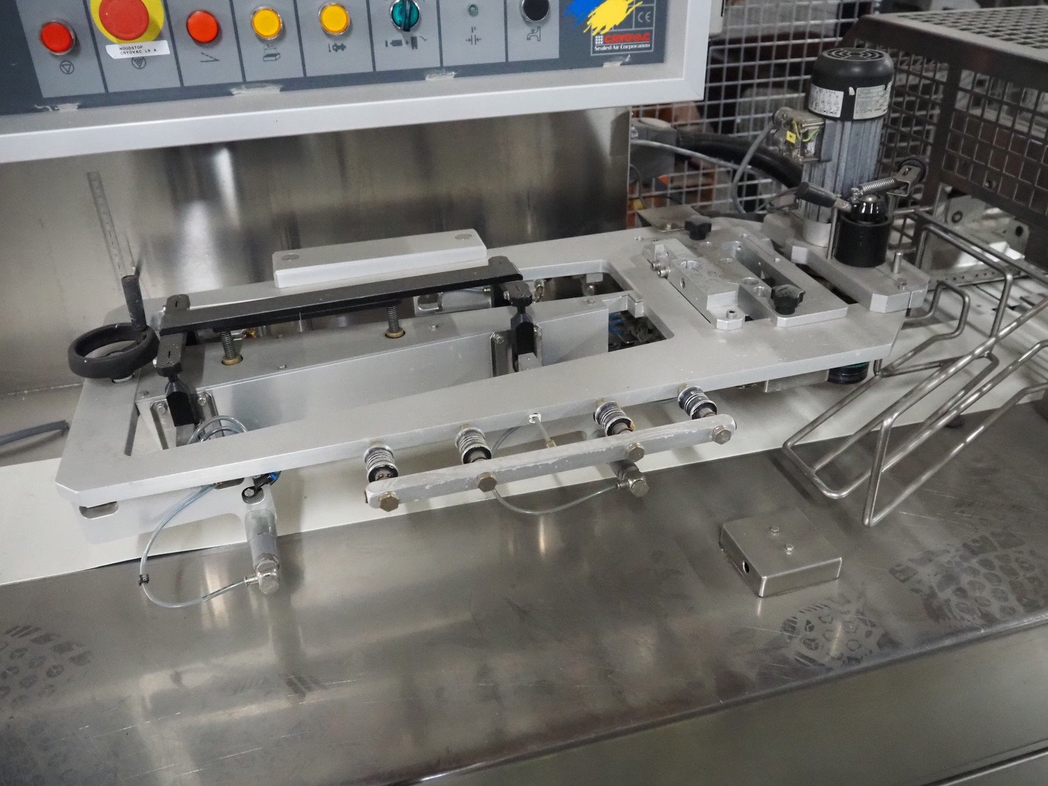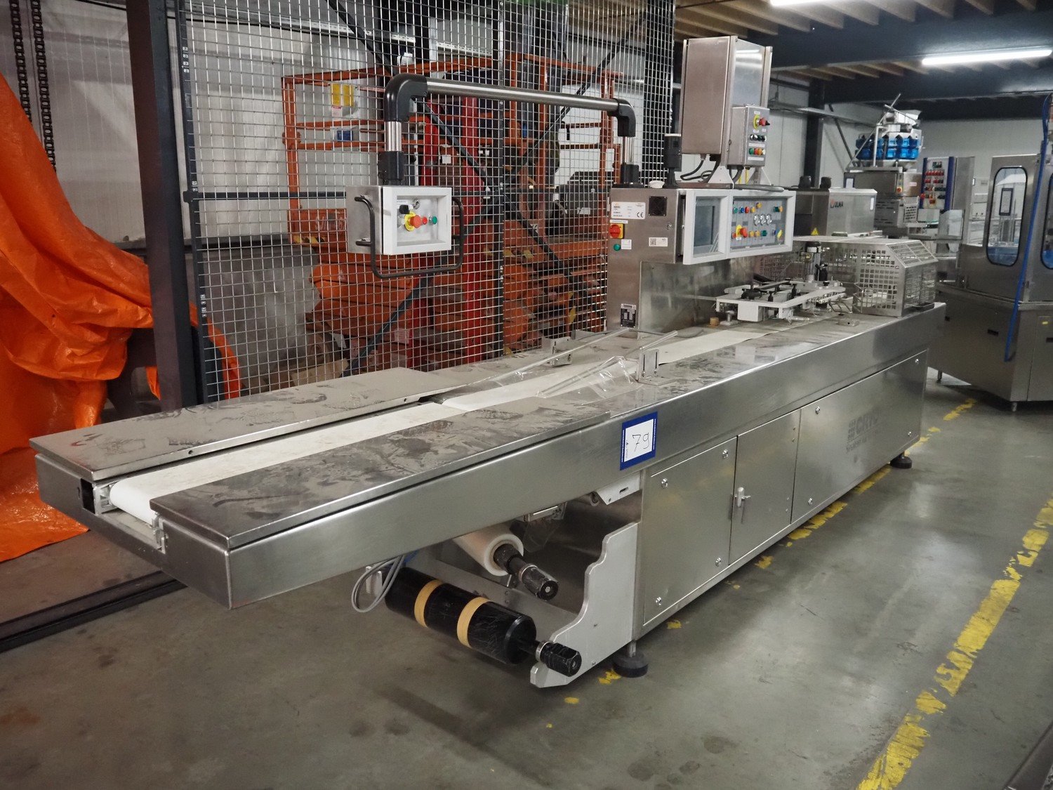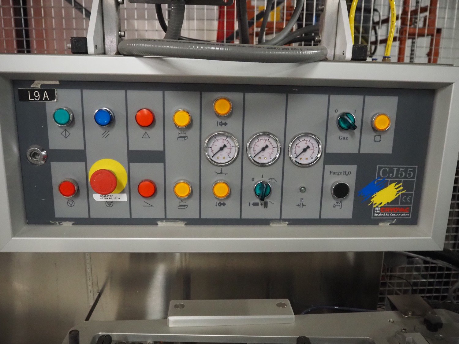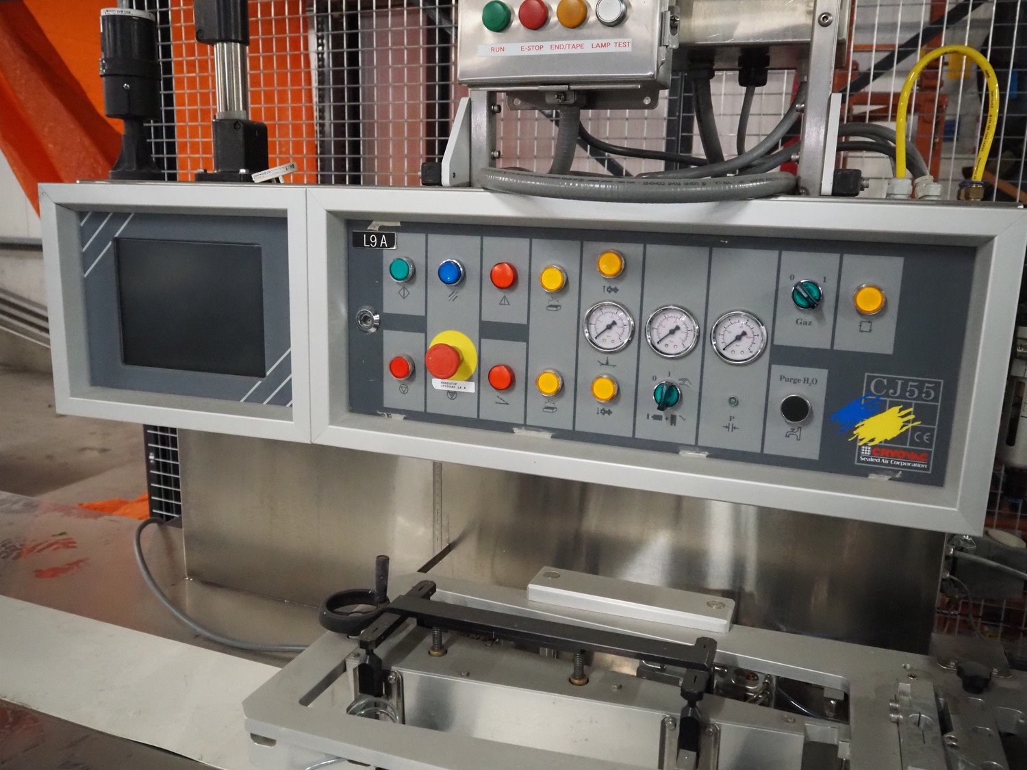 Cryovac horizontal form, fill and seal machine, type: CJ55 MD-BDF, serial number: A91600205, year of construction: 2000, 400 V, 50 Hz, 8 A, 5 kW, plastic belt, belt width: (2x) 200 mm, seal width: 250 mm, clearance: 200 mm x 60 mm, total dimensions: 5000 mm x 1100 mm x 2300 mm. Kavel locatie: Amfoor 6, 4421 SE Kapelle, Nederland