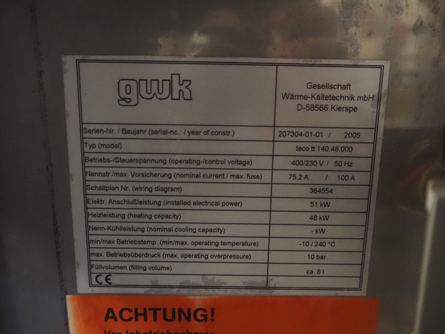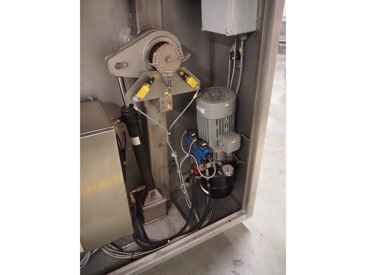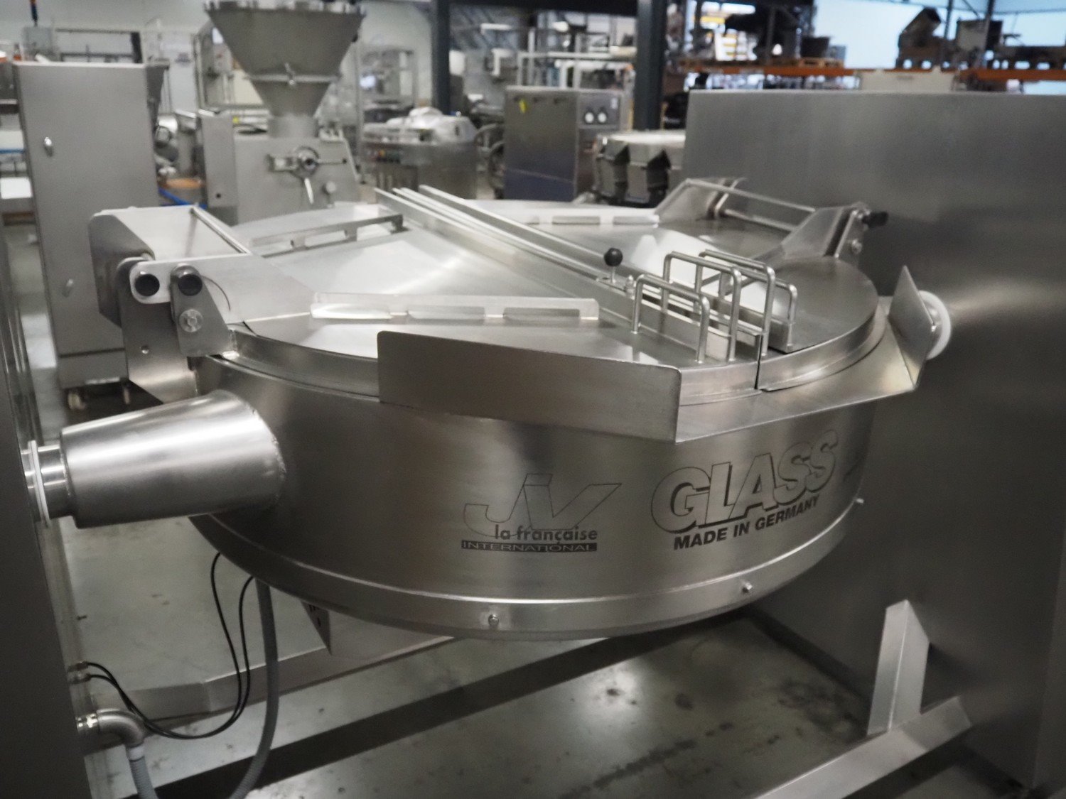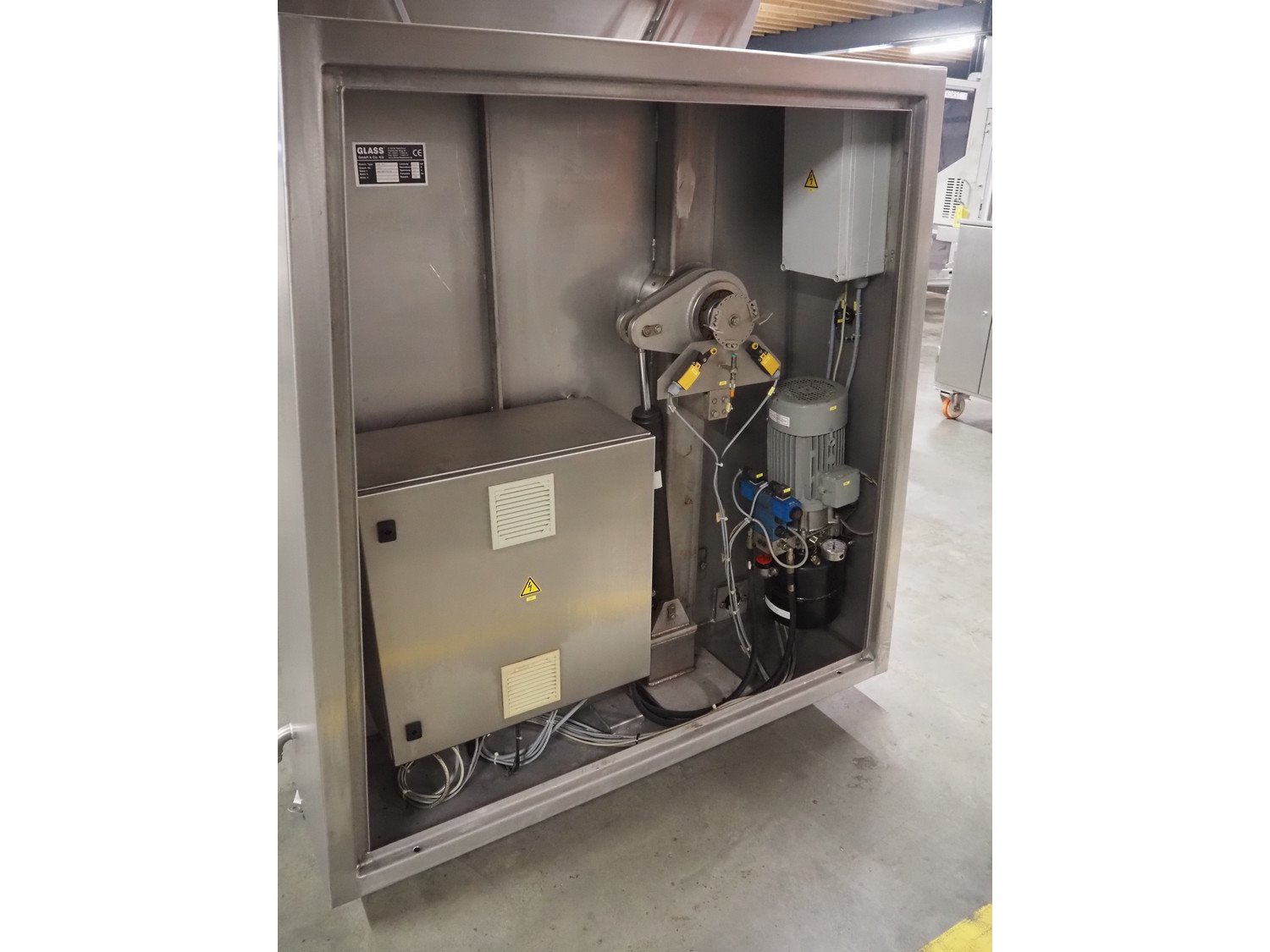 Glass cooking vessel with lifter for meat bins and oil heater, type: WOK 300, machine number: 2812, year of construction: 2006, 400 V, 3 Ph, 50 Hz, 6.93 A, 2.62 kW, volume: 300 liter, dimensions cooking vessel: 2500 mm x 1500 mm x 1610 mm, dimensions oil heater: 1500 mm x 440 mm x 1540 mm. Kavel locatie: Amfoor 6, 4421 SE Kapelle, Nederland
