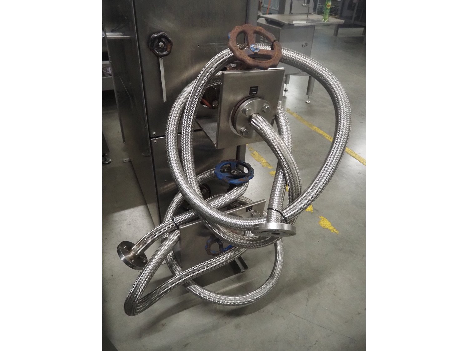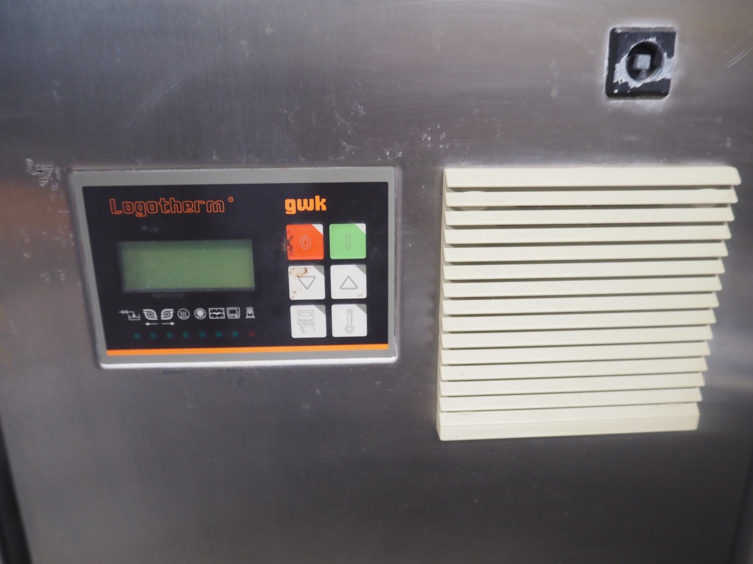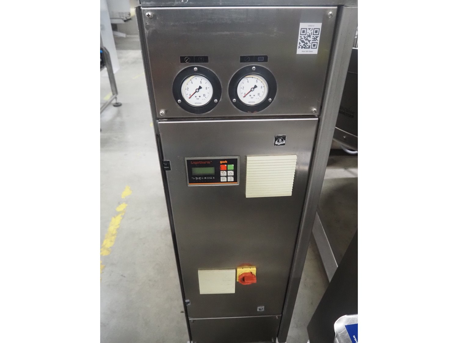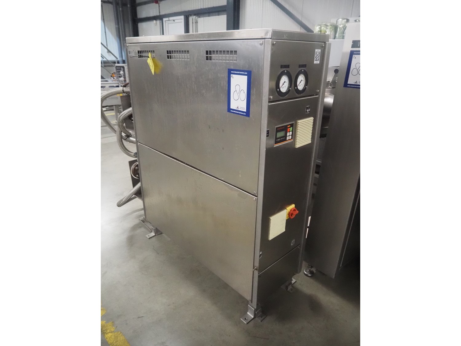 Glass cooking vessel with lifter for meat bins and oil heater, type: WOK 300, machine number: 2812, year of construction: 2006, 400 V, 3 Ph, 50 Hz, 6.93 A, 2.62 kW, volume: 300 liter, dimensions cooking vessel: 2500 mm x 1500 mm x 1610 mm, dimensions oil heater: 1500 mm x 440 mm x 1540 mm. Kavel locatie: Amfoor 6, 4421 SE Kapelle, Nederland