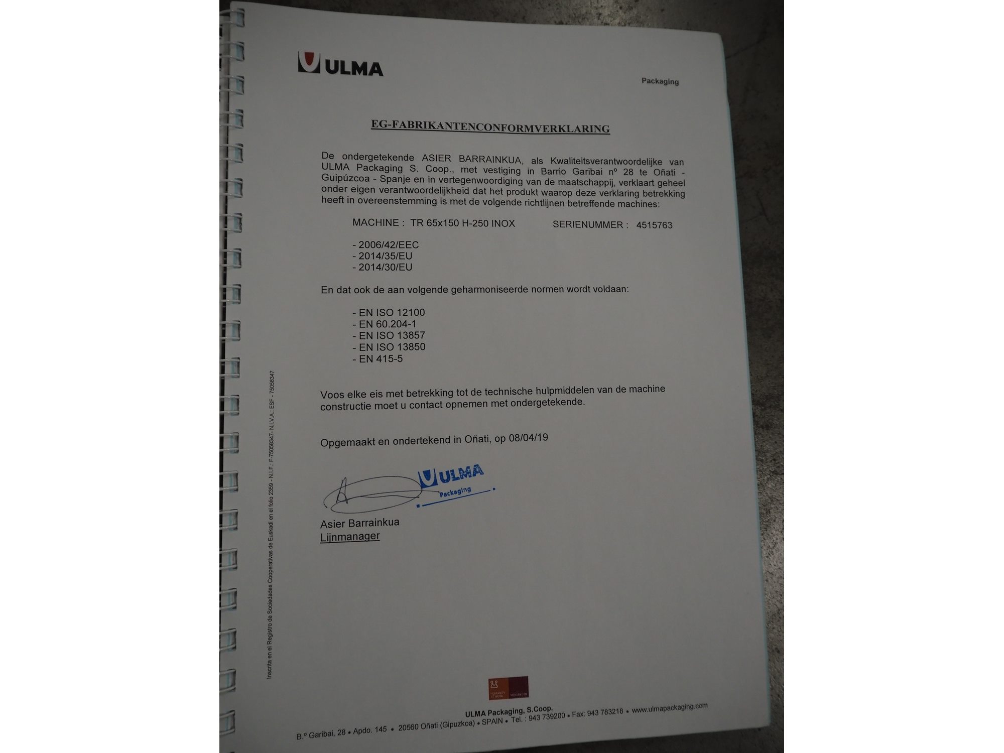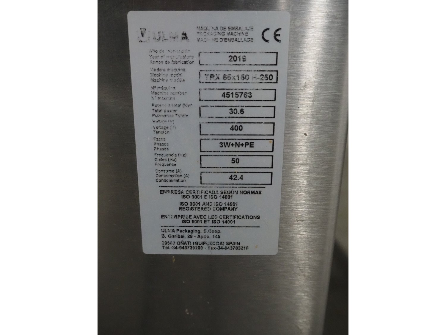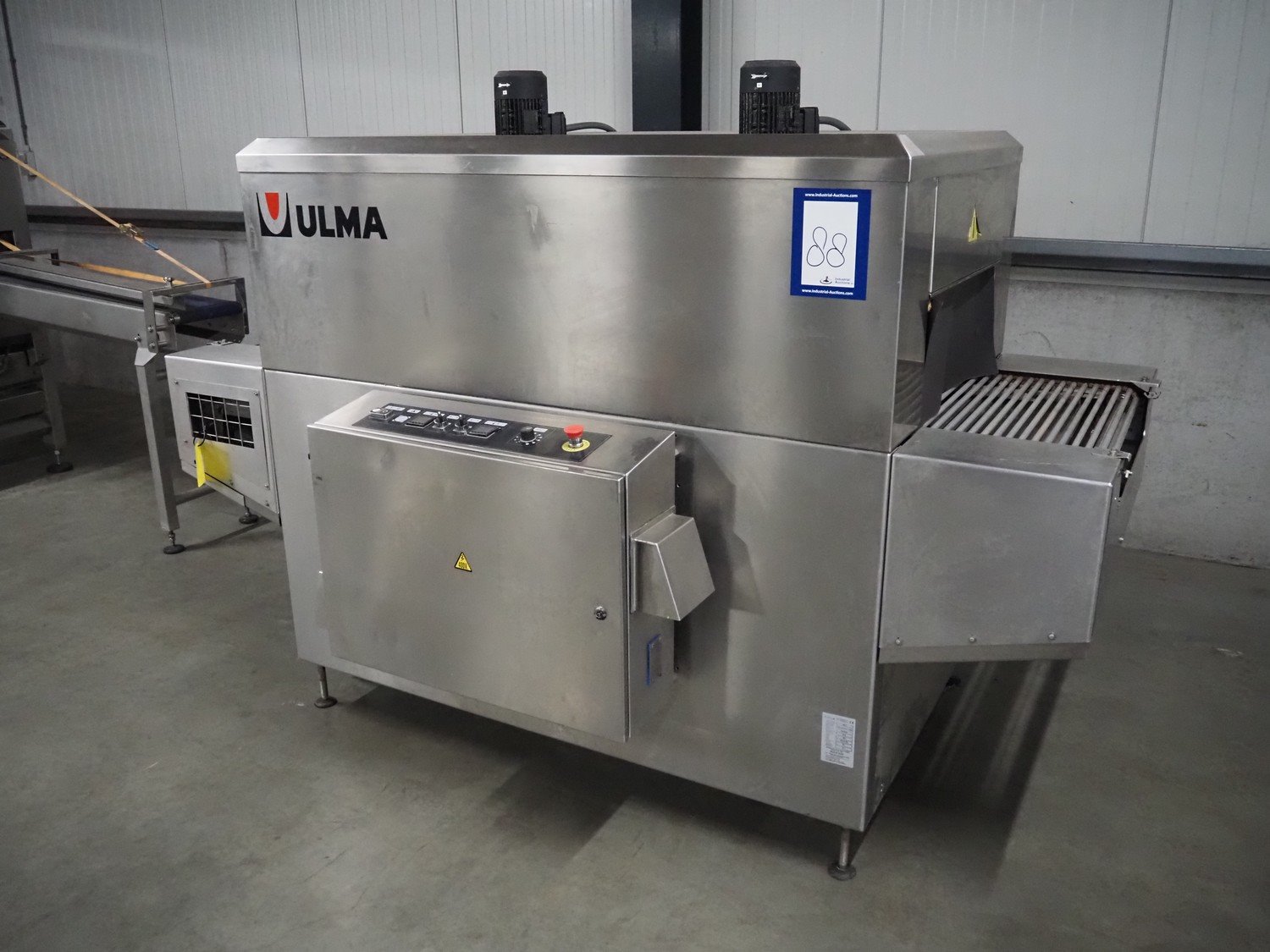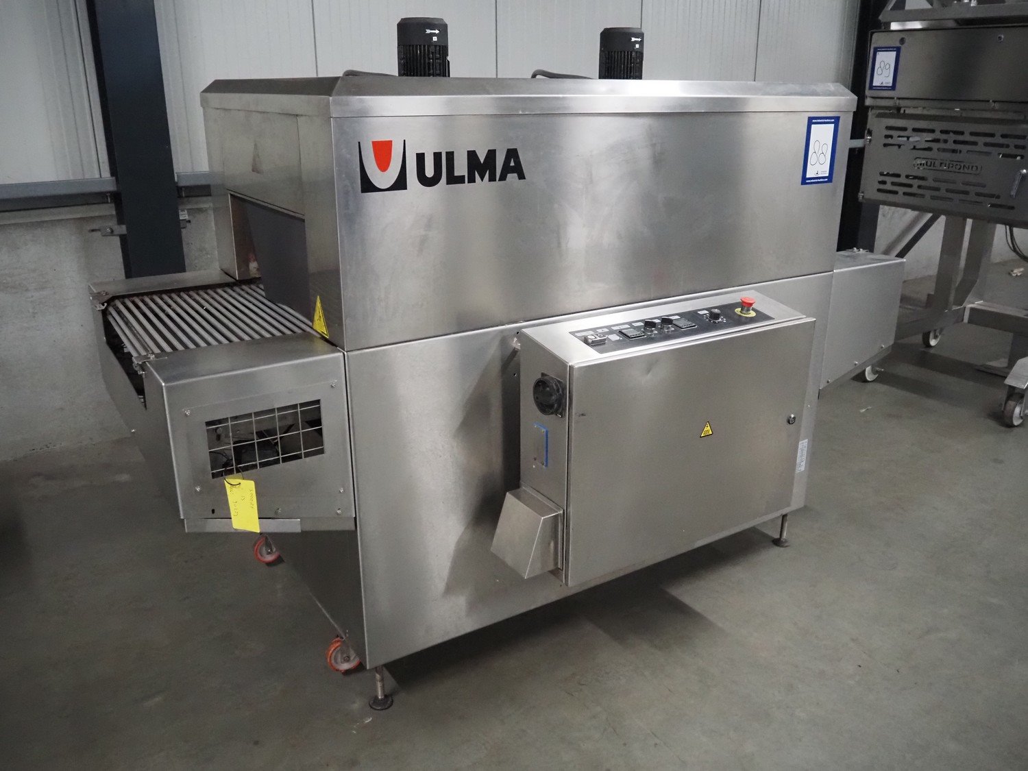 Ulma shrink tunnel, model: TRX 65x150 H-250, machine number: 4515763, year of construction: 2019, 400 V, 3 Ph, 50 Hz, 42.4 A, 30.6 kW, plastic rollers, roller widt: 660 mm, clearance: 640 mm x 280 mm, total dimensions: 2400 mm x 1350 mm x 1730 mm. Kavel locatie: Amfoor 6, 4421 SE Kapelle, Nederland