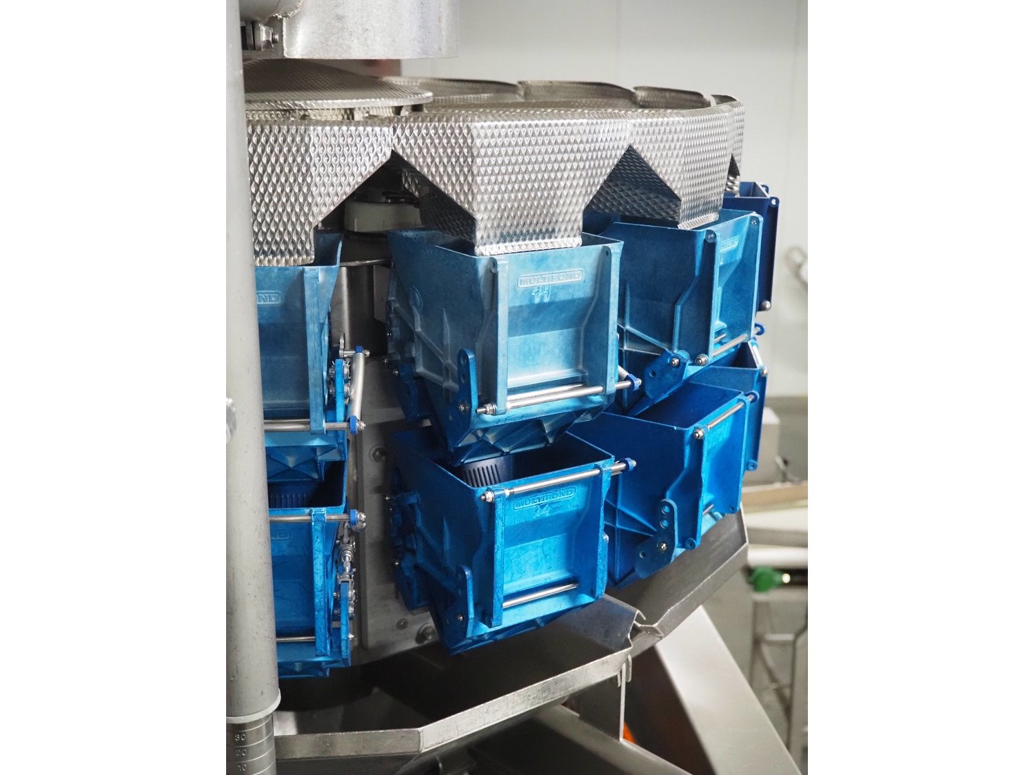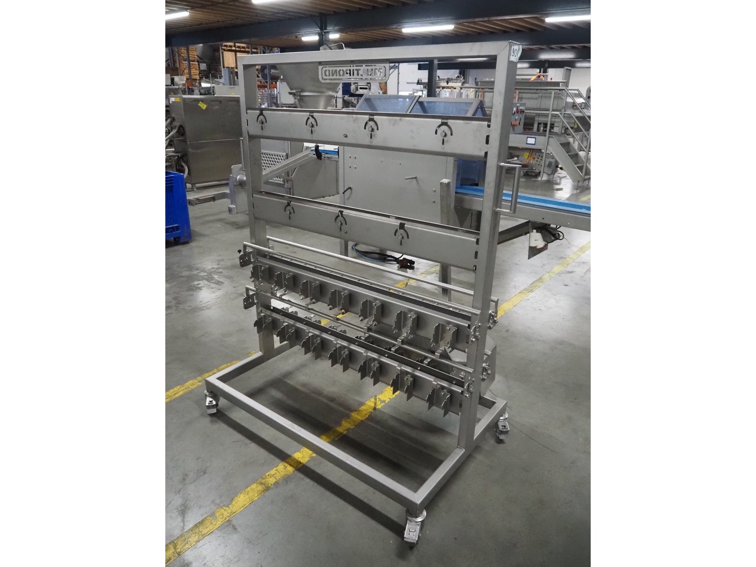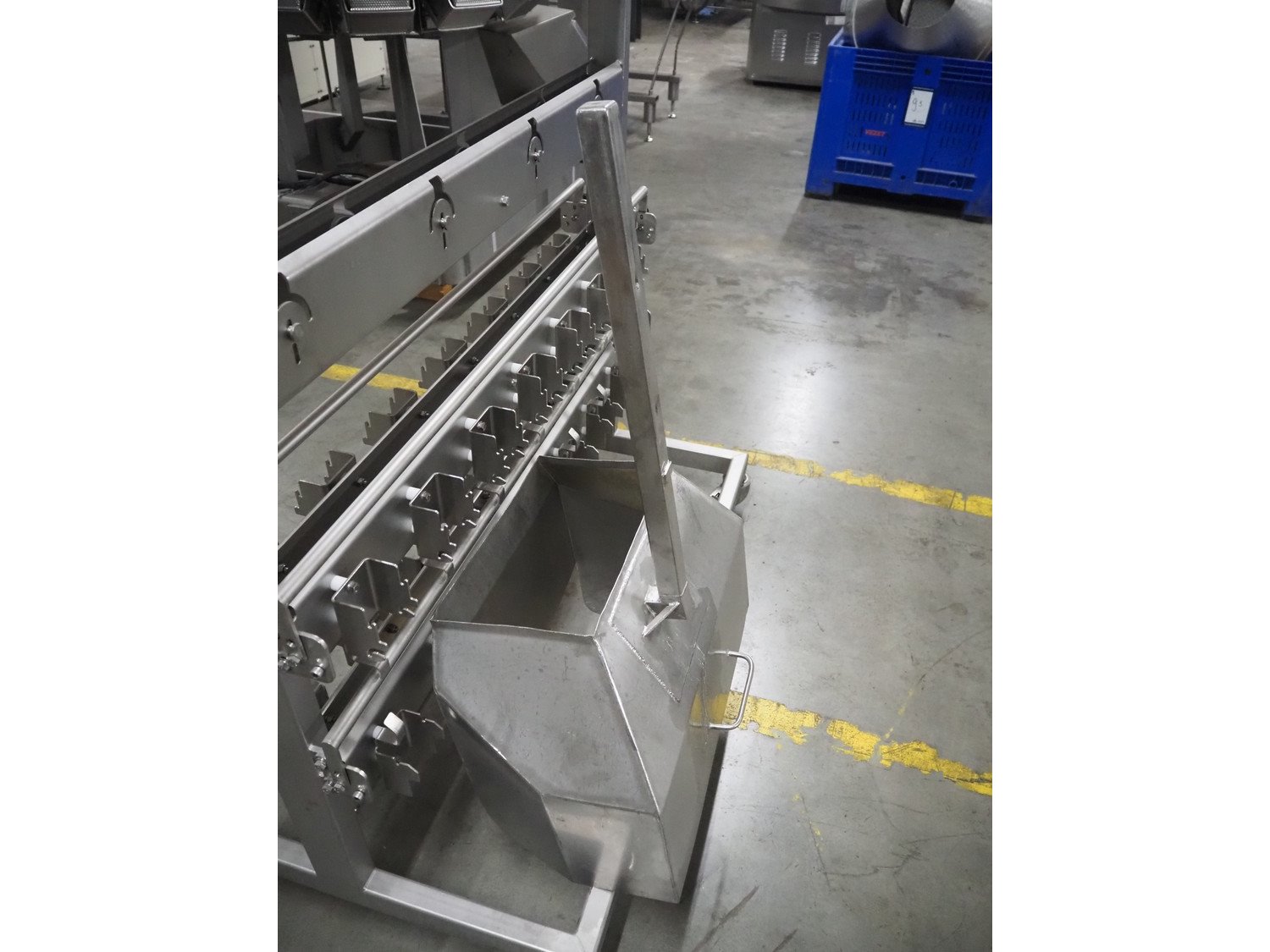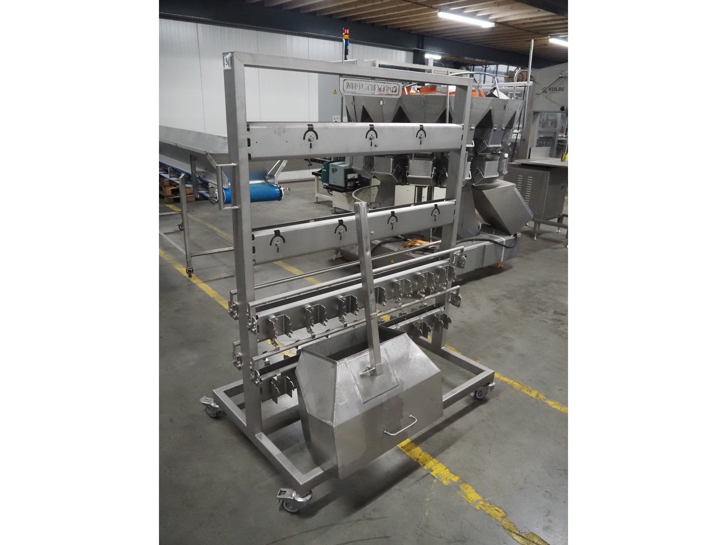 Multipond mobile multihead weigher, 14 heads, type: MP 1401-F, year of construction: 1998, 230 V, 1 Ph, 50 Hz, weighing range: 20 - 100 gram, total dimensions: 2100 mm x 1250 mm x 3250 mm. Including s/s trolley for bins, dimensions trolley: 1450 mm x 800 mm x 1730 mm. Kavel locatie: Amfoor 6, 4421 SE Kapelle, Nederland