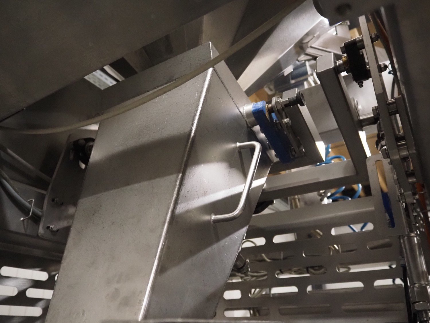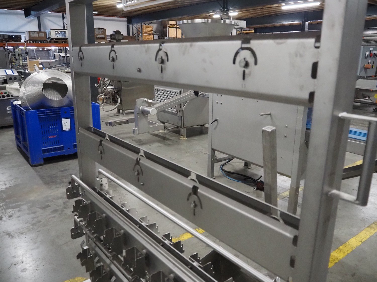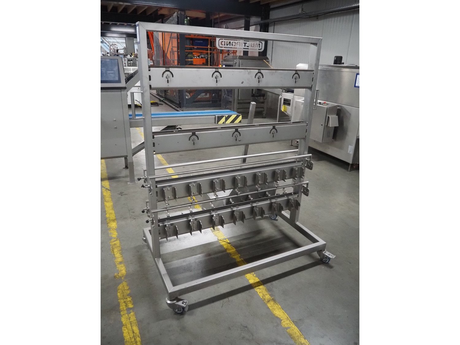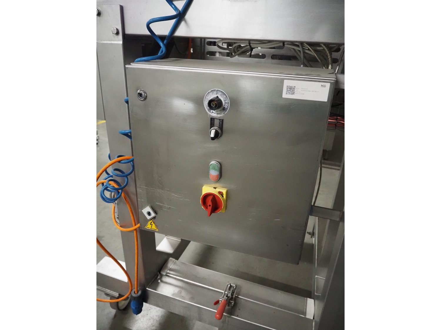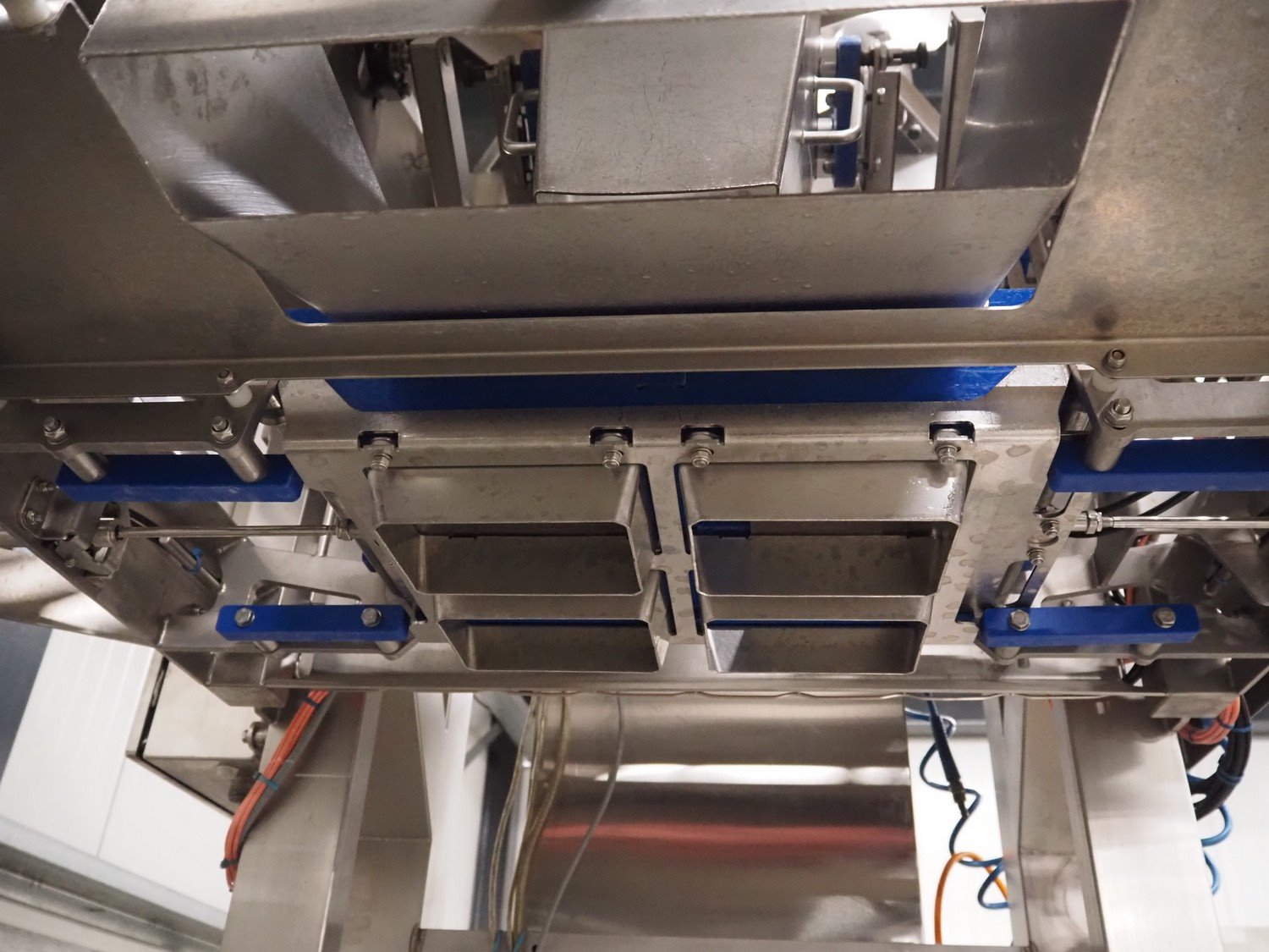 Multipond mobile multihead weigher, 14 heads, type: MP 1401-F, year of construction: 1998, 230 V, 1 Ph, 50 Hz, weighing range: 20 - 100 gram, total dimensions: 2100 mm x 1250 mm x 3250 mm. Including s/s trolley for bins, dimensions trolley: 1450 mm x 800 mm x 1730 mm. Kavel locatie: Amfoor 6, 4421 SE Kapelle, Nederland