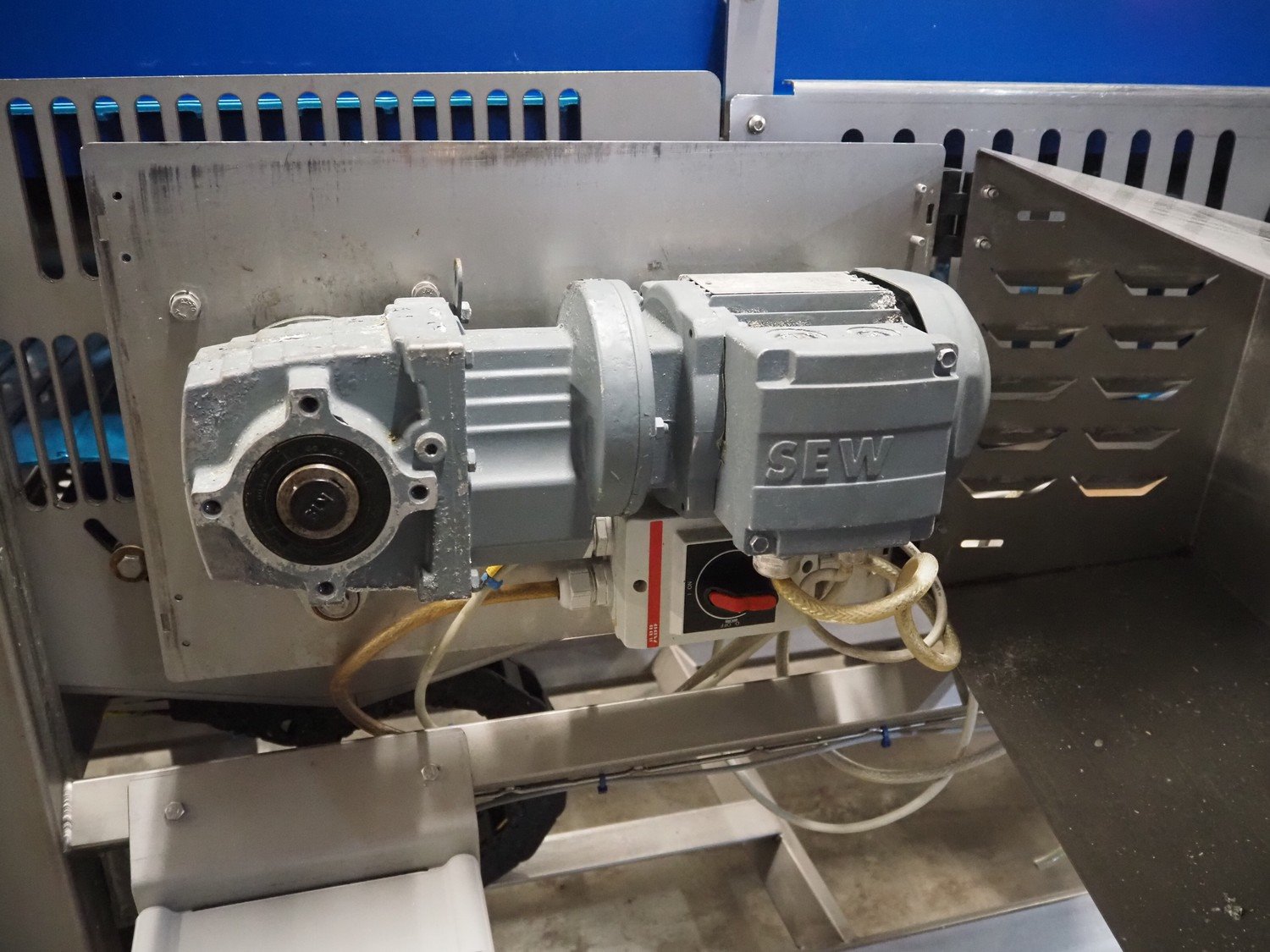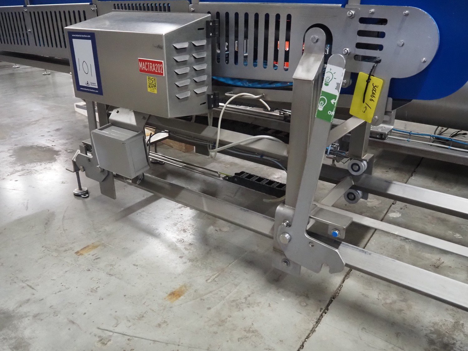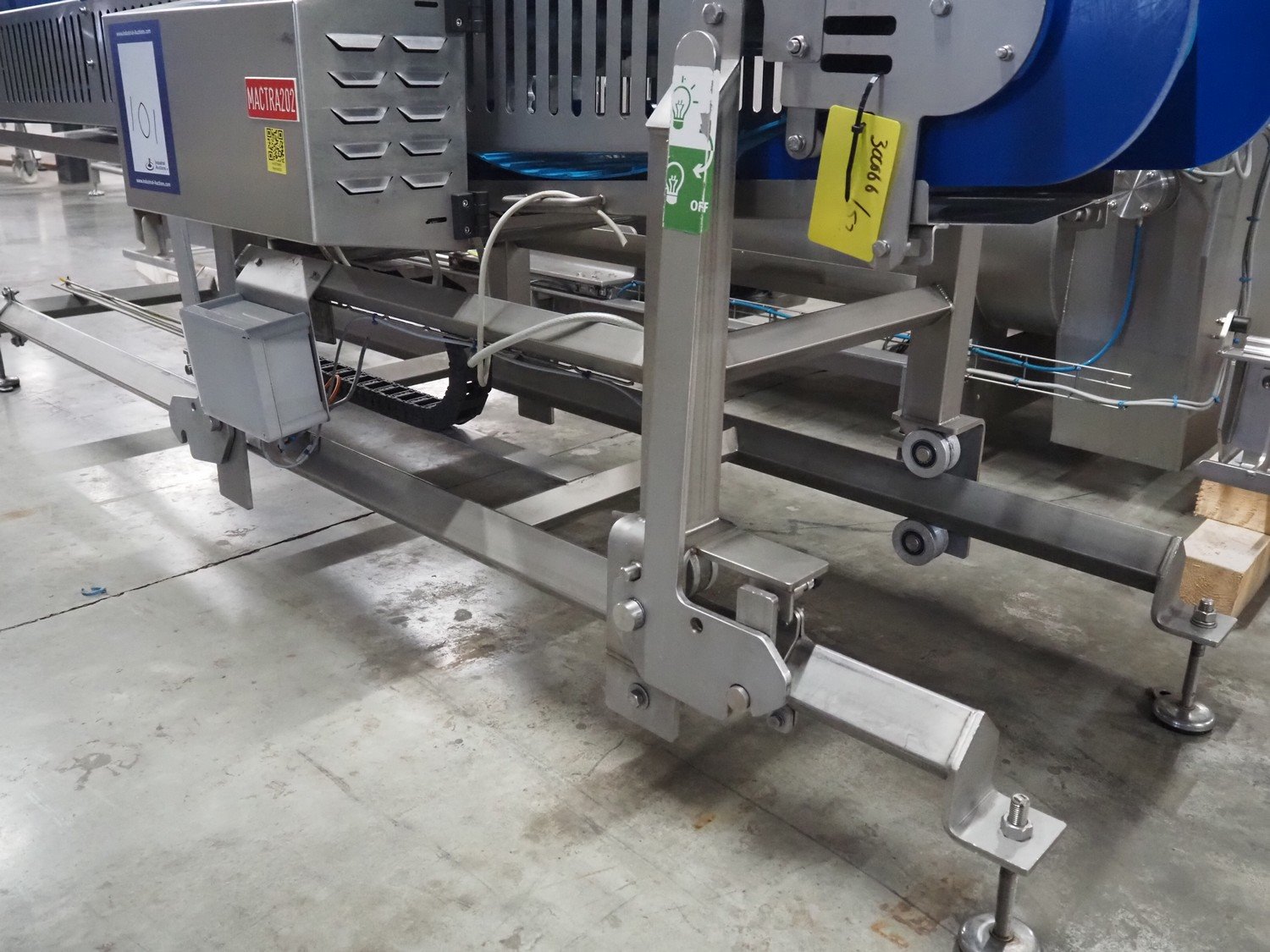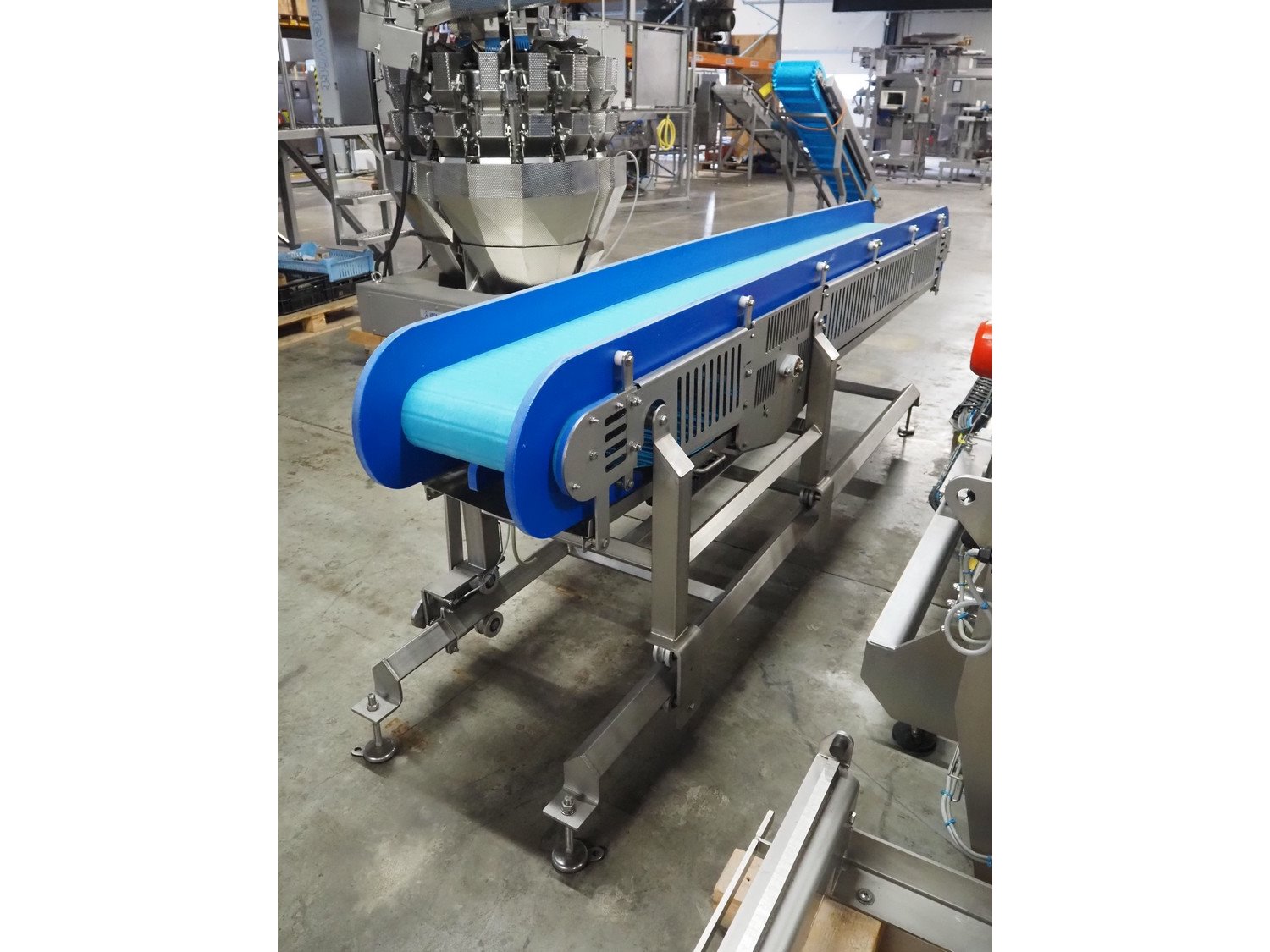 Transport belt on s/s rails, plastic belt, belt width: 400 mm, total dimensions: 3200 mm x 800 mm x 970 mm. Kavel locatie: Amfoor 6, 4421 SE Kapelle, Nederland