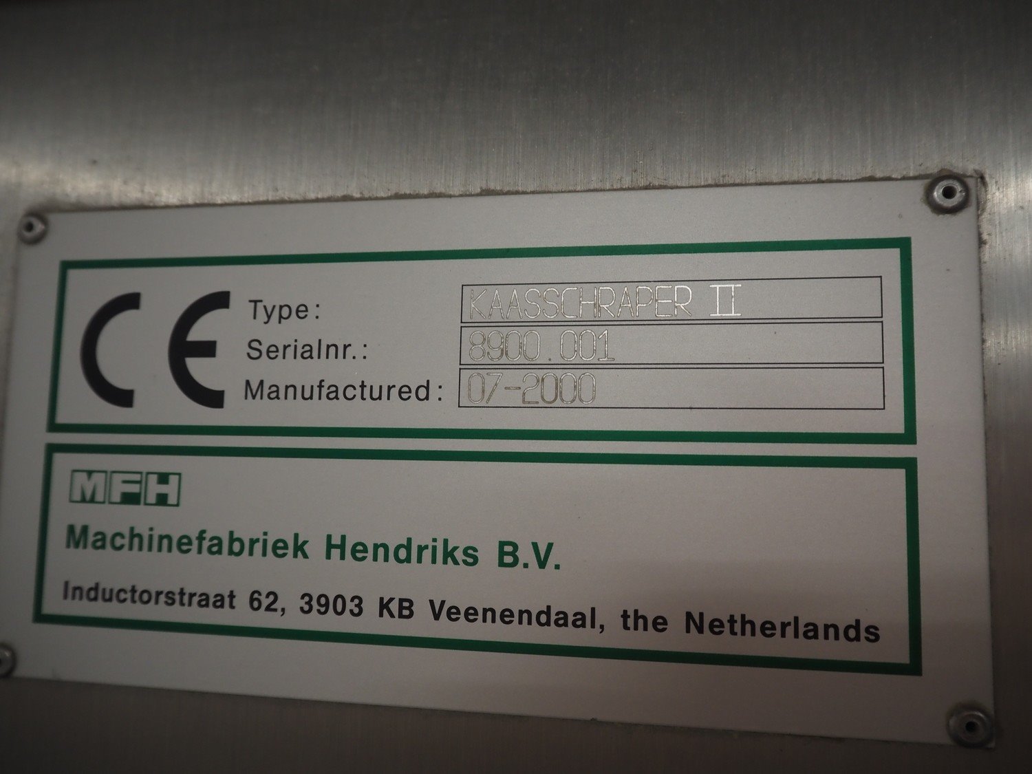 Machinefabriek Hendriks B.V. cheese scraper, type: KAASCHRAPER II, serial number: 8900.001, year of construction: 2000, clearance: 130 mm x 180 mm, total dimensions: 3400 mm x 1500 mm x 2280 mm. Kavel locatie: Amfoor 6, 4421 SE Kapelle, Nederland