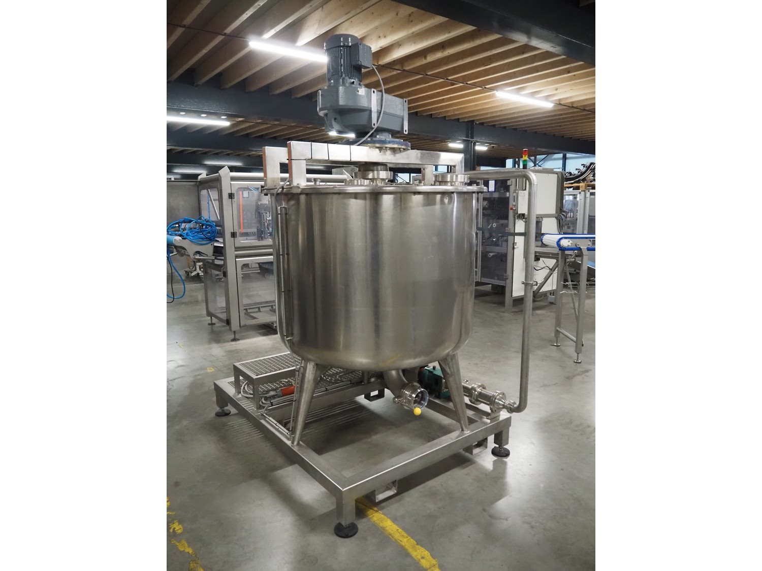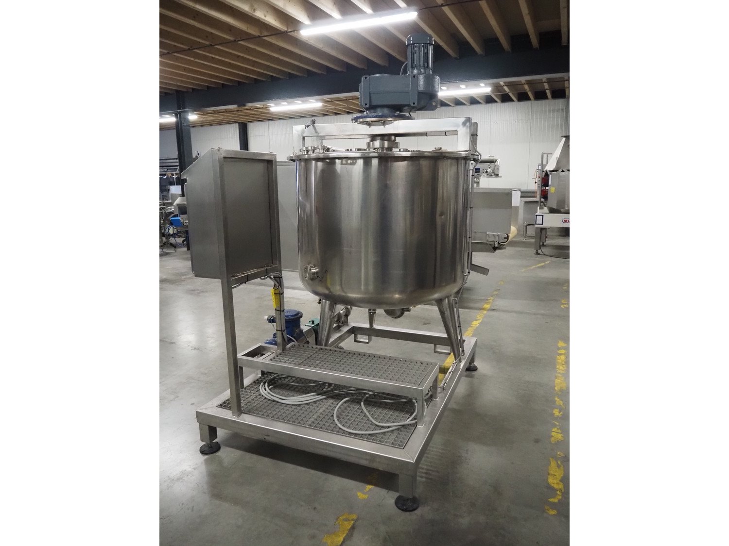 S/s skid with mixing tank, inside dimensions: Ø 1200 mm x 1000 mm, total dimensions: 2000 mm x 1350 mm x 2500 mm. Kavel locatie: Amfoor 6, 4421 SE Kapelle, Nederland
