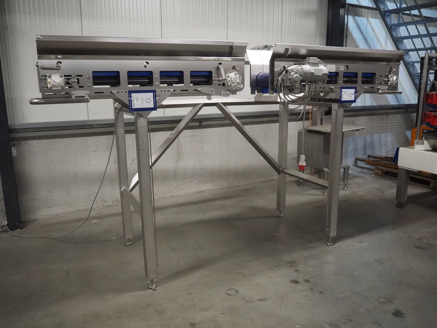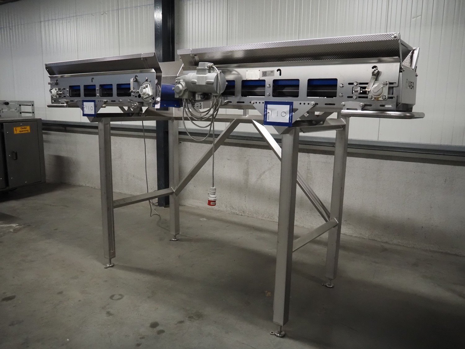 Jasa Packaging Solutions double transport belt on s/s frame, model: 19100060300000, machine number: 14666, year of construction: 2019, 230 V, 3 Ph, 0.37 kW, 1.7 A, weight: 110 kg, belt width: (2x) 350 mm, belt length: (2x) 1400 mm, total dimensions: 3400 mm x 1450 mm x 2000 mm. Kavel locatie: Amfoor 6, 4421 SE Kapelle, Nederland