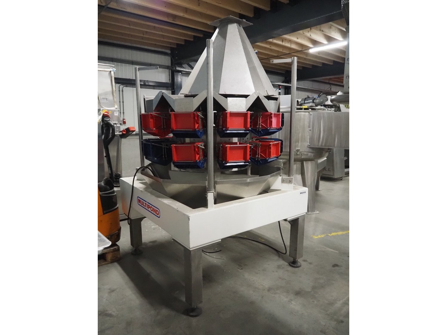 Multipond 10 head multihead weigher, type: MP1024, factory number: 567, year of construction: 1993, weighing capacity: 2400 g, dimensions: 1600 mm x 1400 mm x 2200 mm. Kavel locatie: Amfoor 6, 4421 SE Kapelle, Nederland