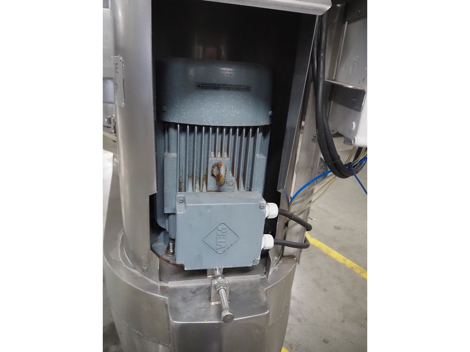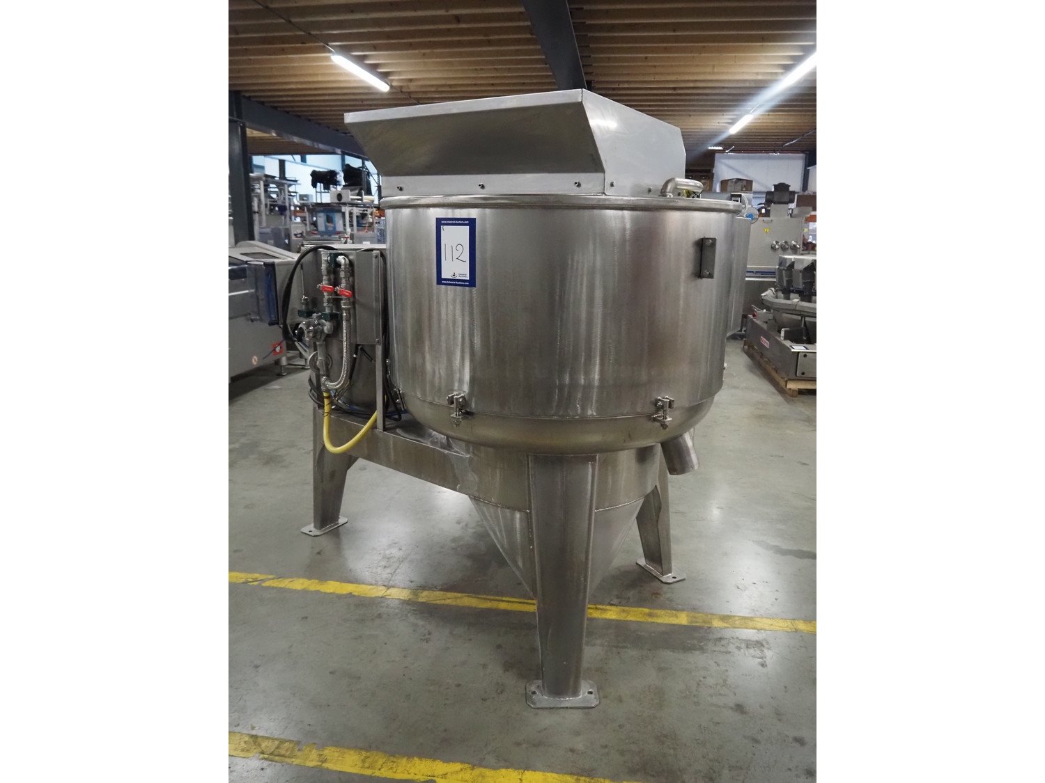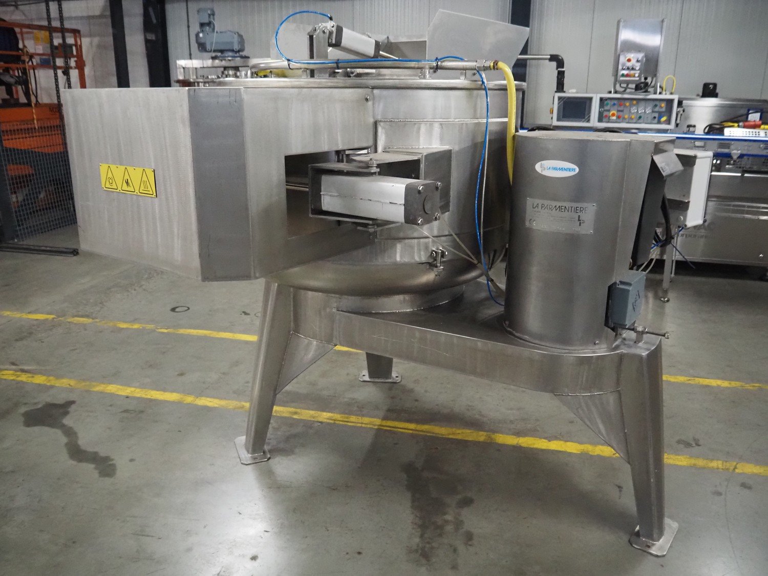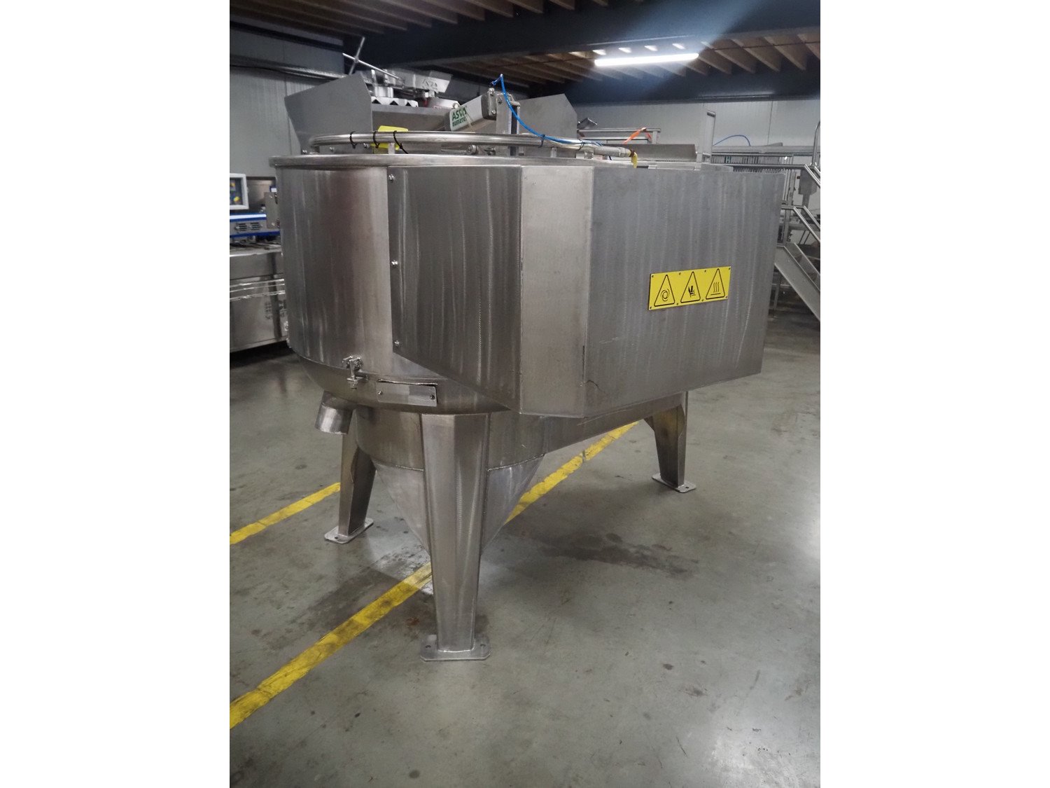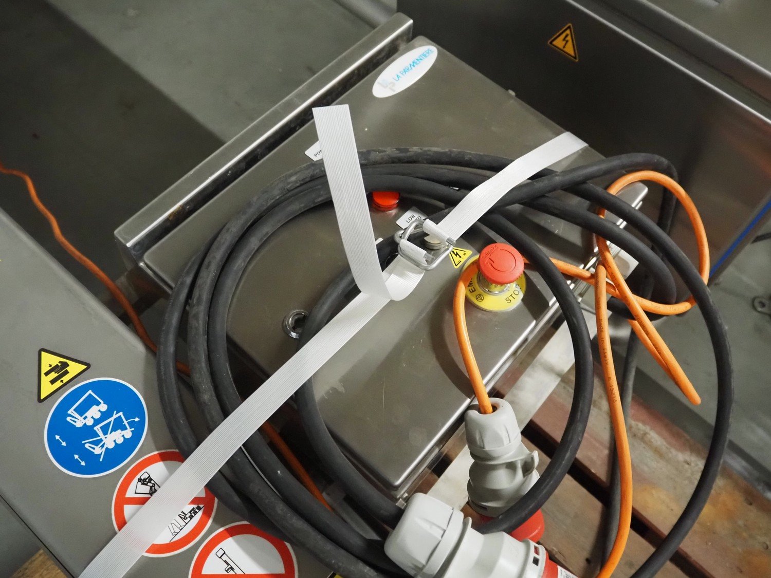 La Parmentiere dehairing machine with Carsoe lifter for meat bins, type: 770P, machine number: 770P414, year of construction: 06.2020, type lifter: HKV 300, serial number: FOD-10811, year of construction: 2020, 400 V, 3 Ph, 0.75 kW, dimensions: 2050 mm x 1800 mm x 1870 mm, dimensions lifter: 3150 mm x 1500 mm x 900 mm. Kavel locatie: Amfoor 6, 4421 SE Kapelle, Nederland