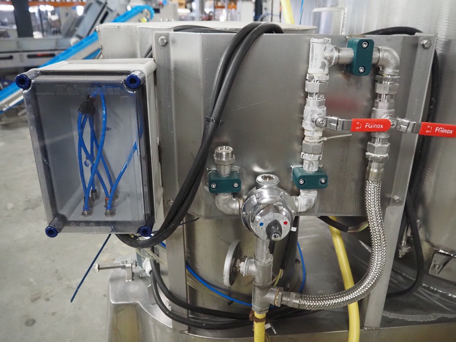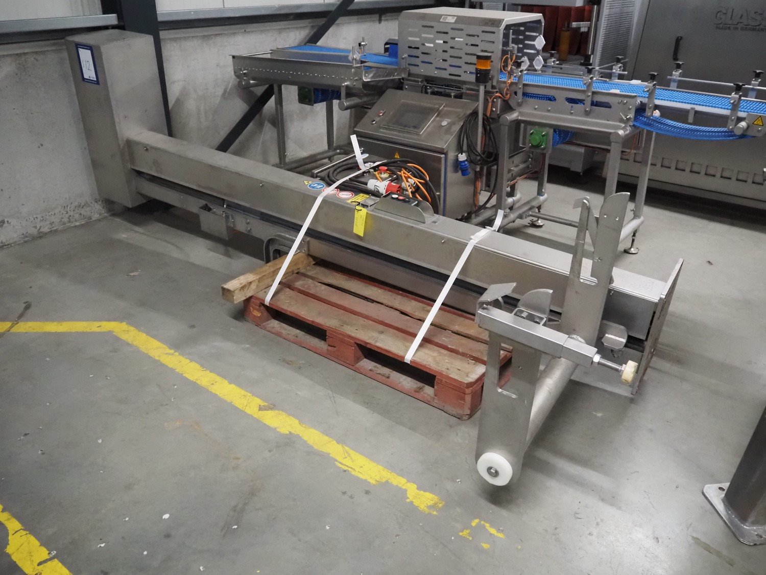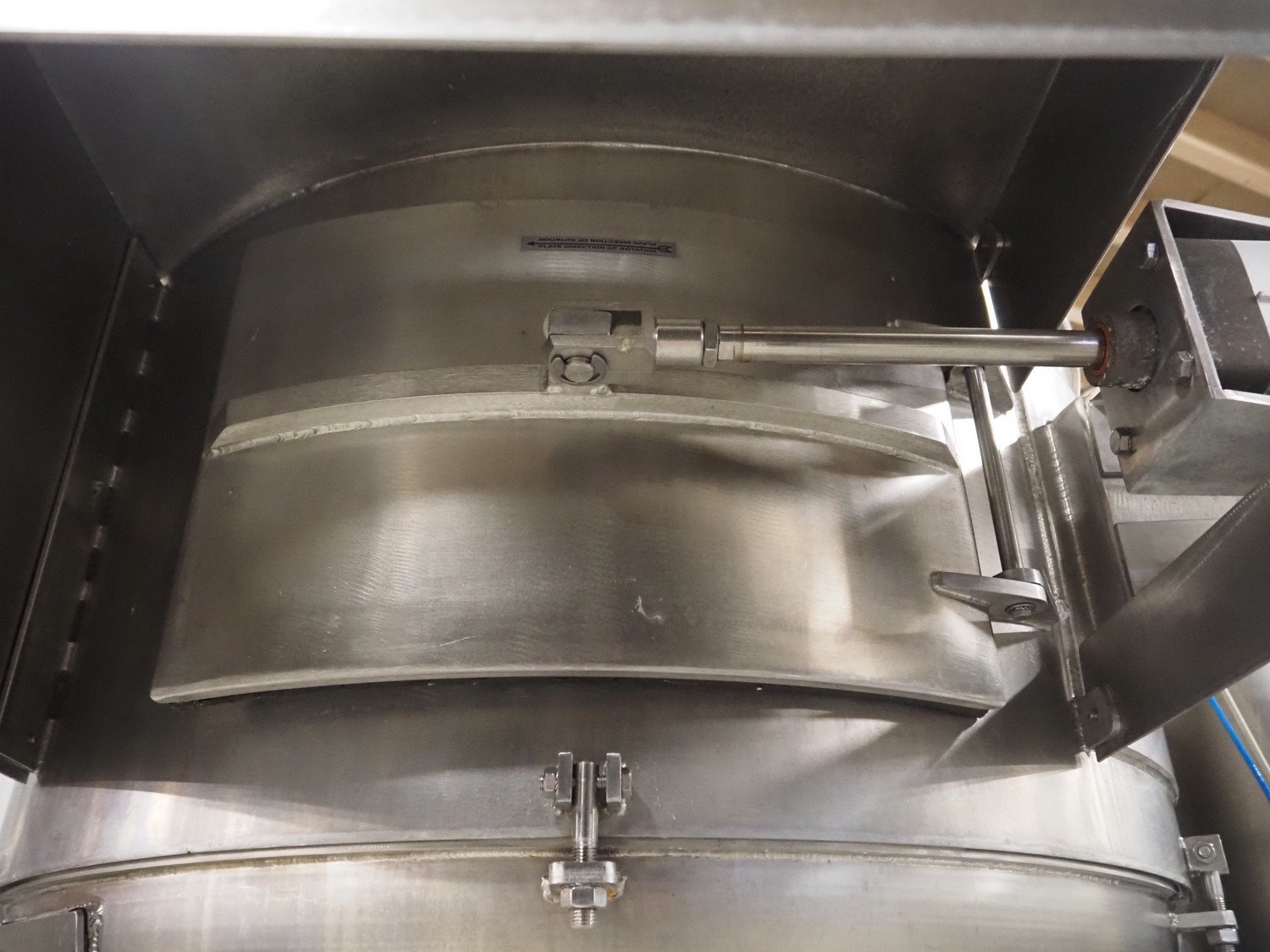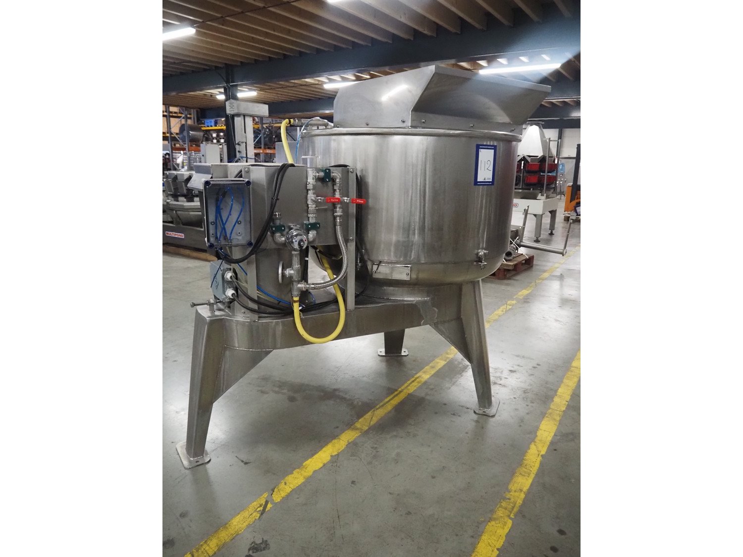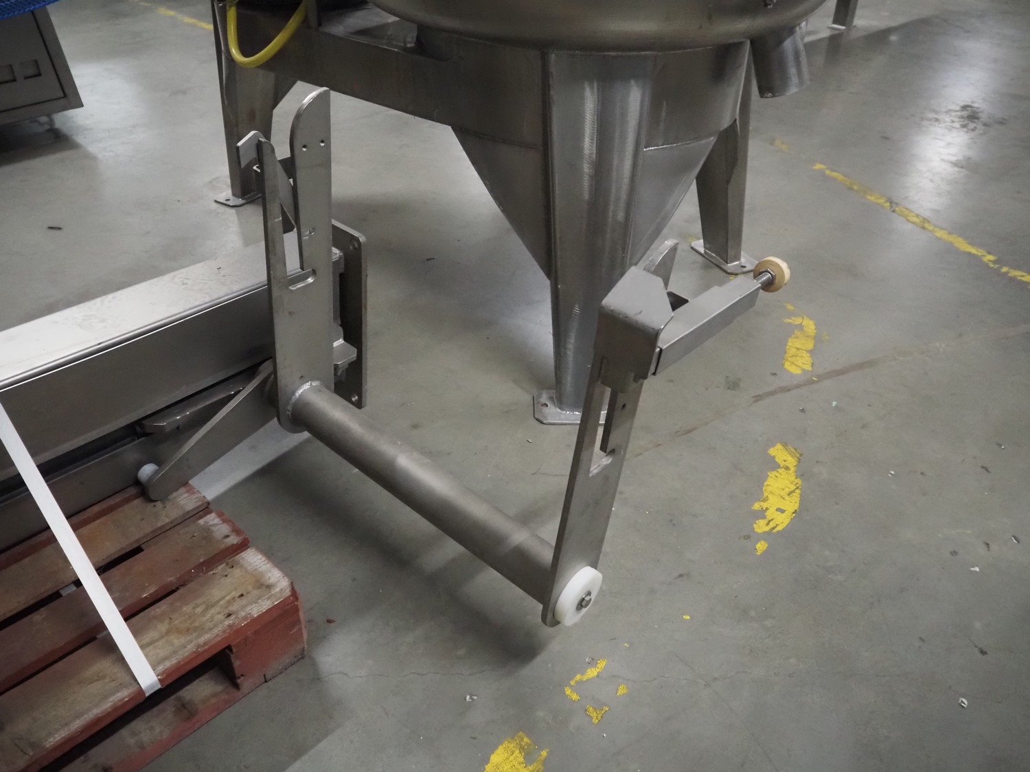 La Parmentiere dehairing machine with Carsoe lifter for meat bins, type: 770P, machine number: 770P414, year of construction: 06.2020, type lifter: HKV 300, serial number: FOD-10811, year of construction: 2020, 400 V, 3 Ph, 0.75 kW, dimensions: 2050 mm x 1800 mm x 1870 mm, dimensions lifter: 3150 mm x 1500 mm x 900 mm. Kavel locatie: Amfoor 6, 4421 SE Kapelle, Nederland