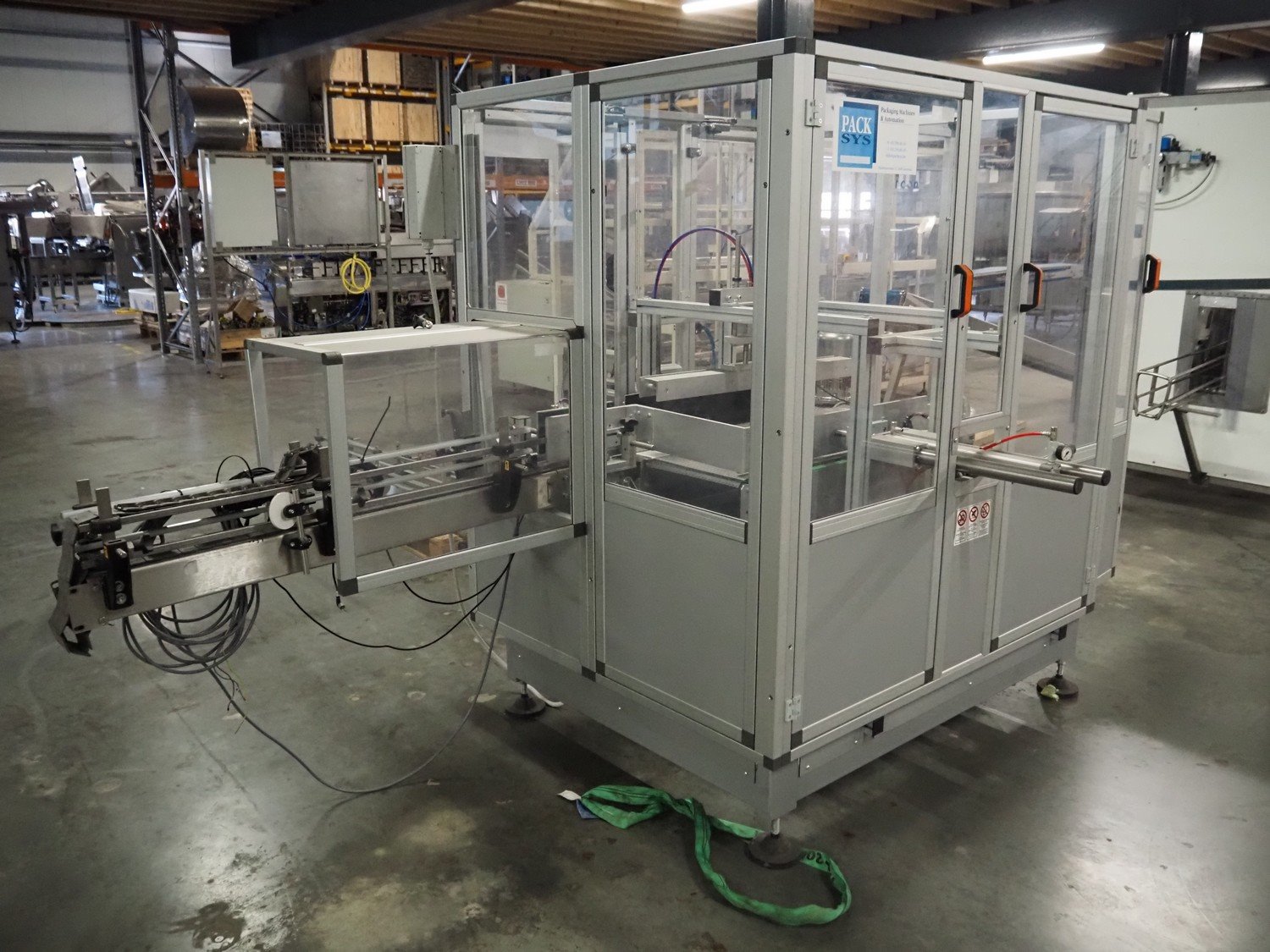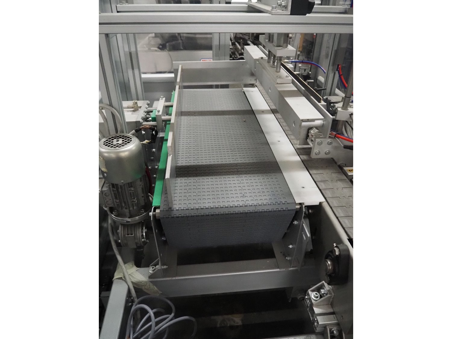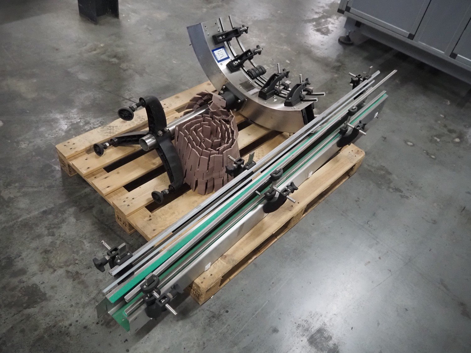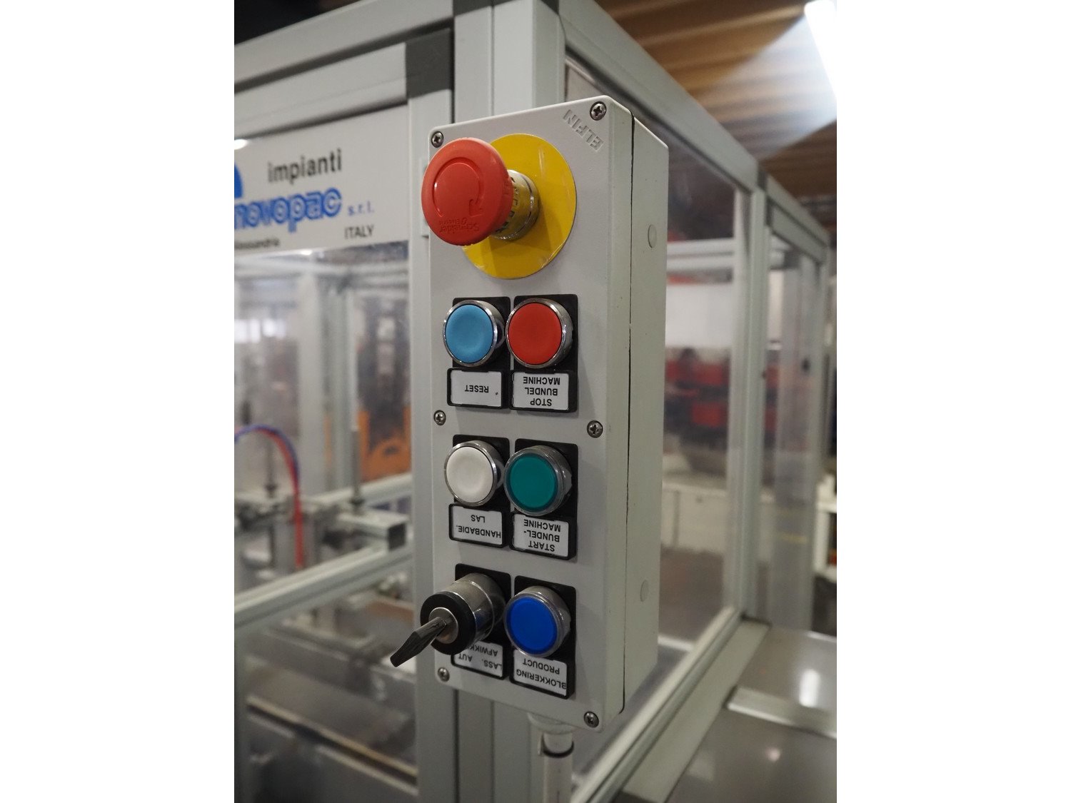 Novopac s.r.l. bundling machine, plastic belt, belt width: 360 mm and 100 mm, total dimensions: 3200 mm x 1400 mm x 1850 mm. With pallet with infeed belt. Kavel locatie: Amfoor 6, 4421 SE Kapelle, Nederland