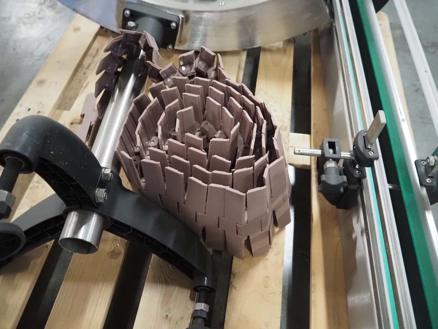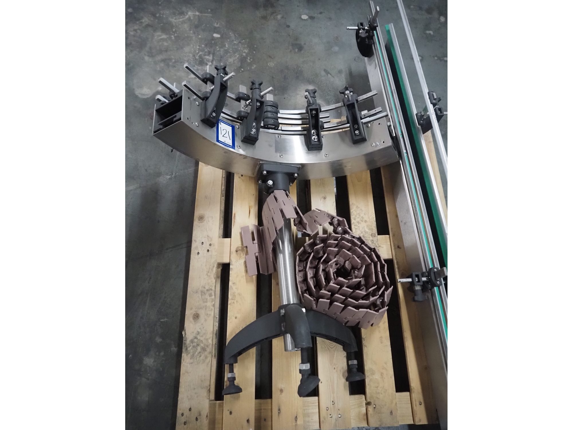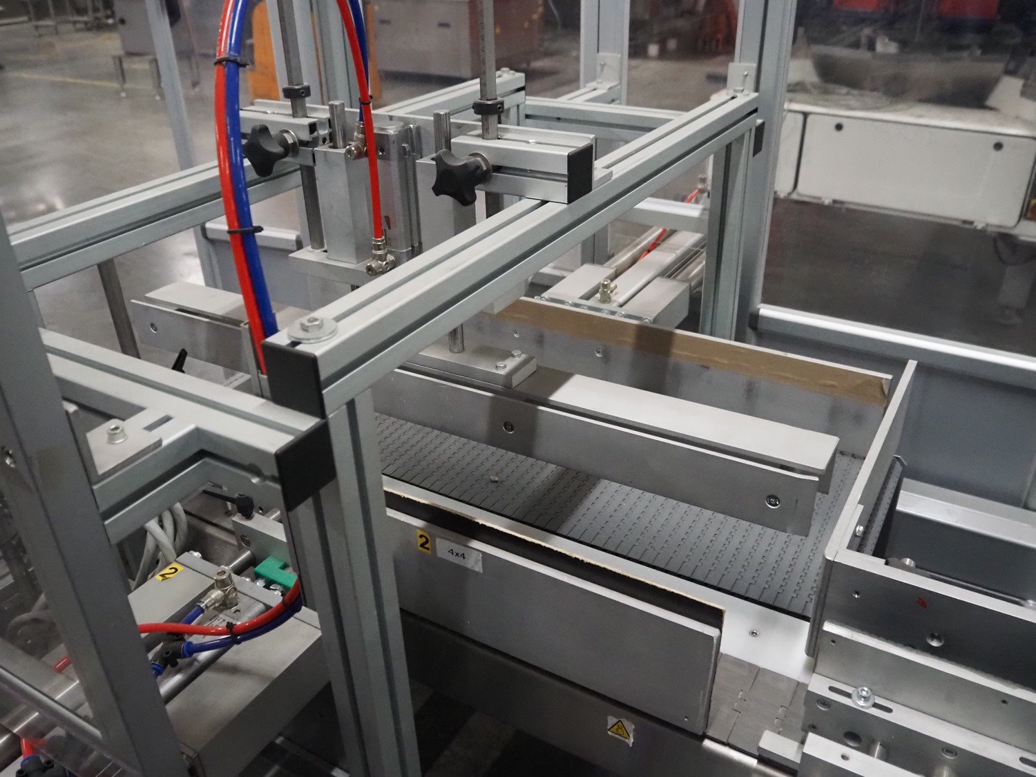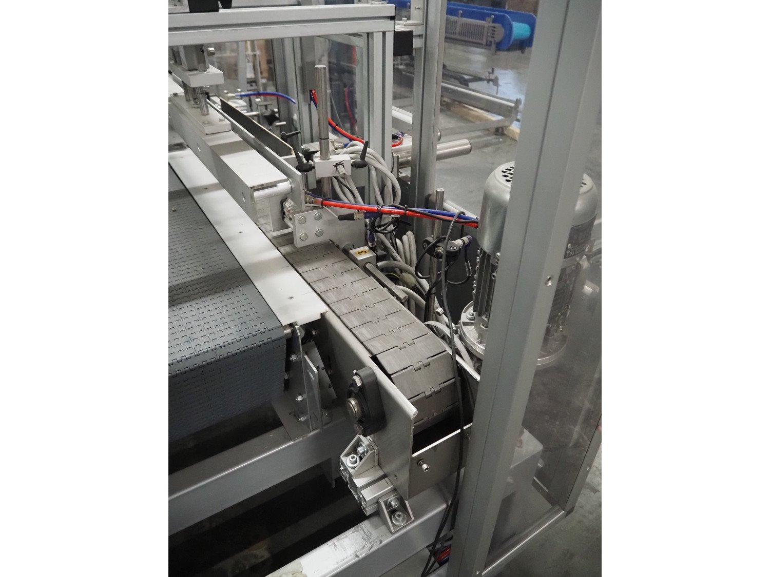 Novopac s.r.l. bundling machine, plastic belt, belt width: 360 mm and 100 mm, total dimensions: 3200 mm x 1400 mm x 1850 mm. With pallet with infeed belt. Kavel locatie: Amfoor 6, 4421 SE Kapelle, Nederland