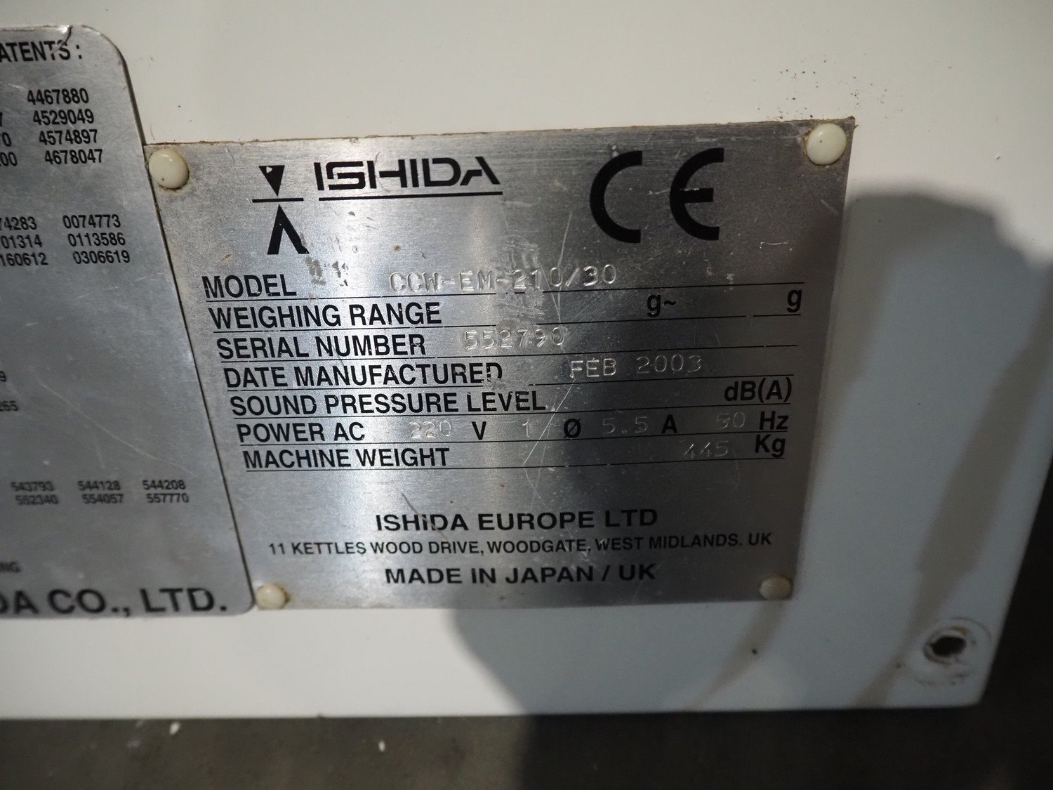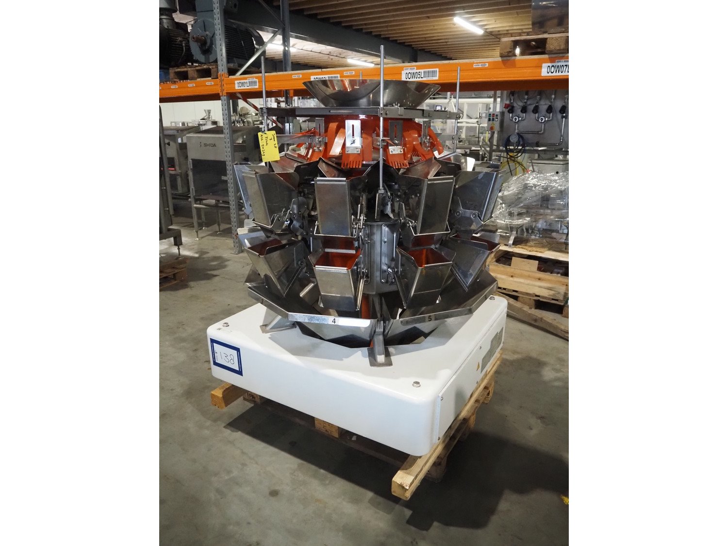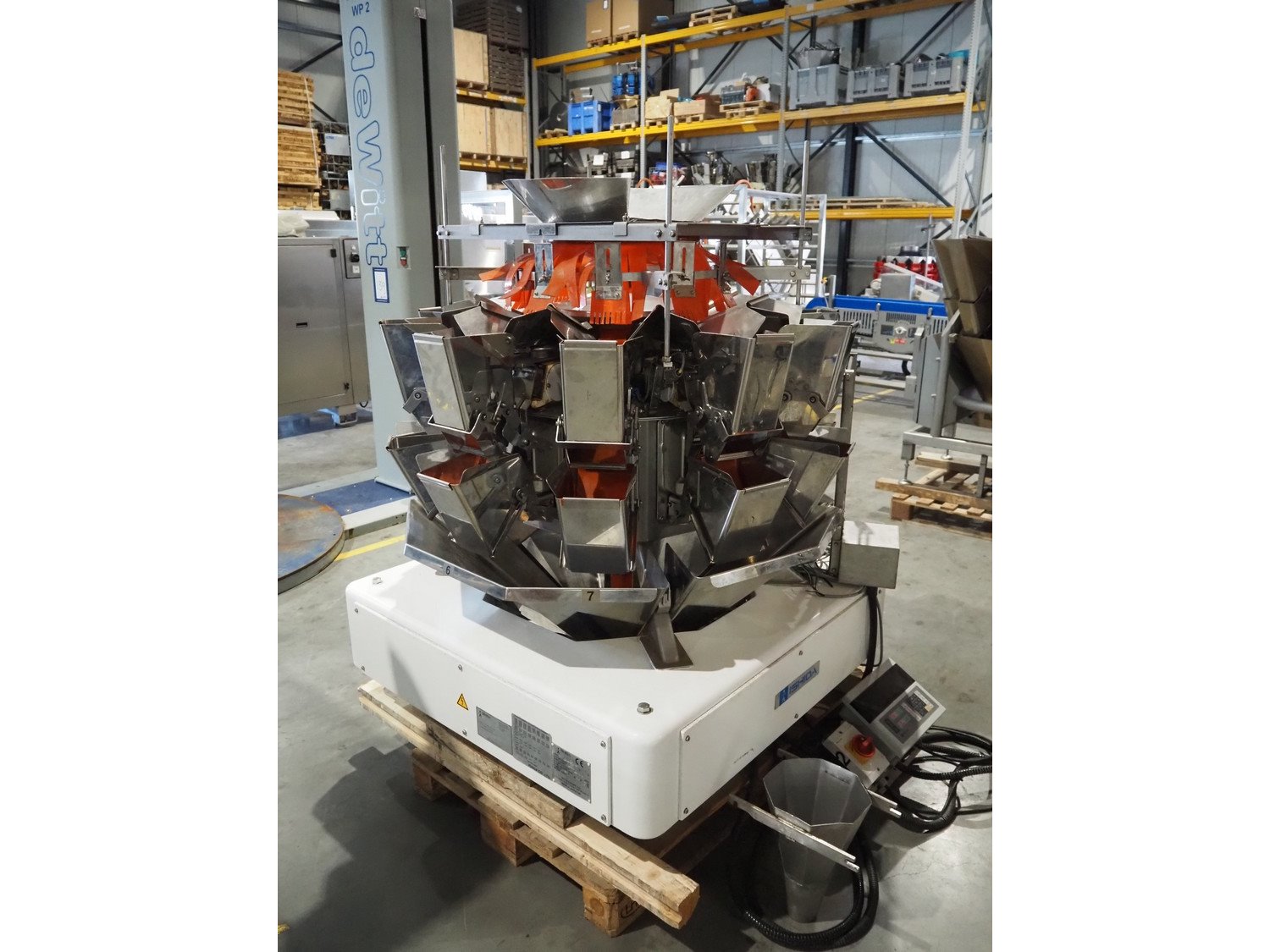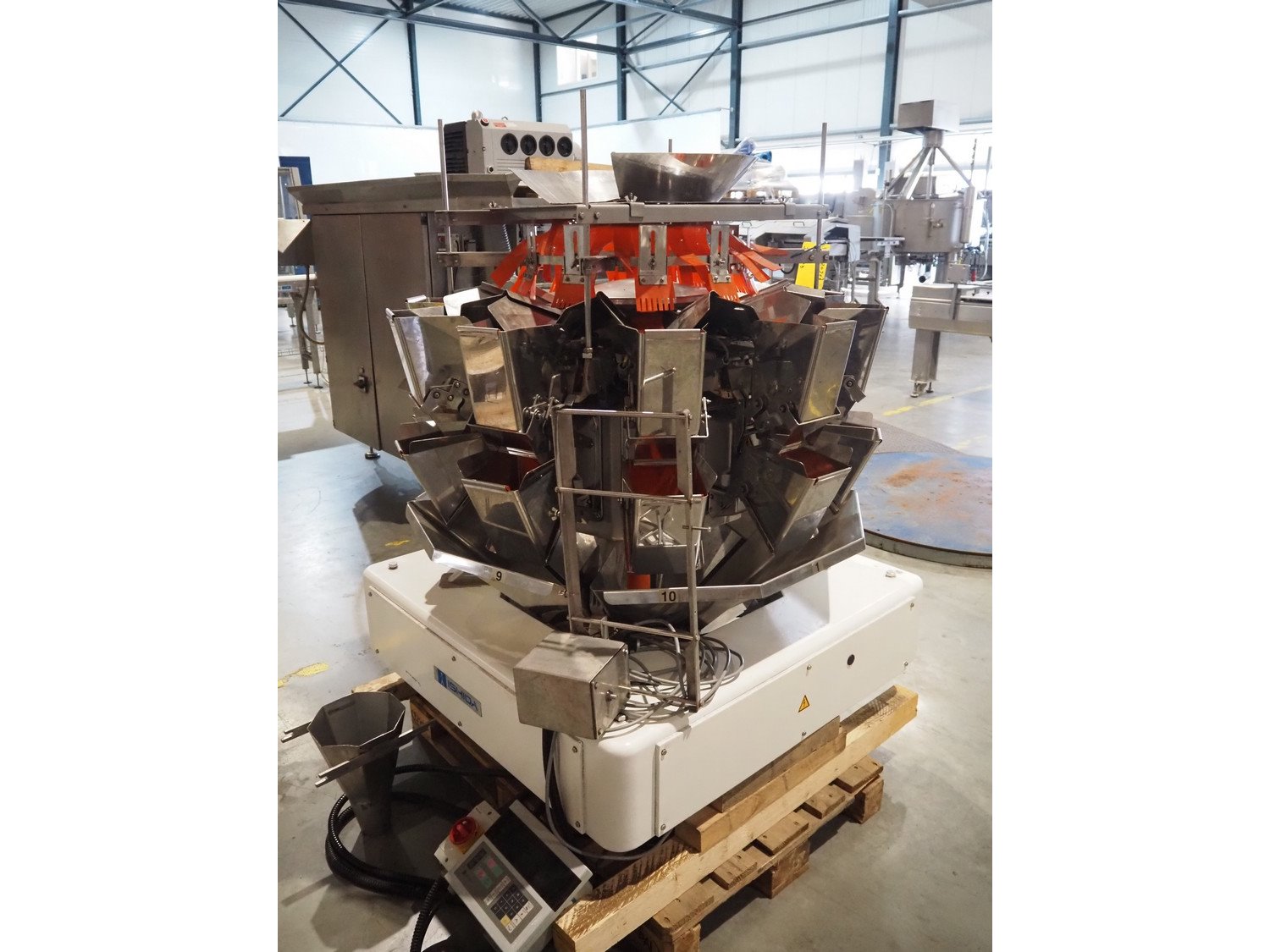 Ishida 10 heads multihead weigher, model: CCW-EM-210/30, serial number: 552790, year of construction: February 2003, 220 V, 1 Ph, 50 Hz, 5.5 A, weight: 445 kg, dimensions: 1200 mm x 1200 mm x 1550 mm. Kavel locatie: Amfoor 6, 4421 SE Kapelle, Nederland