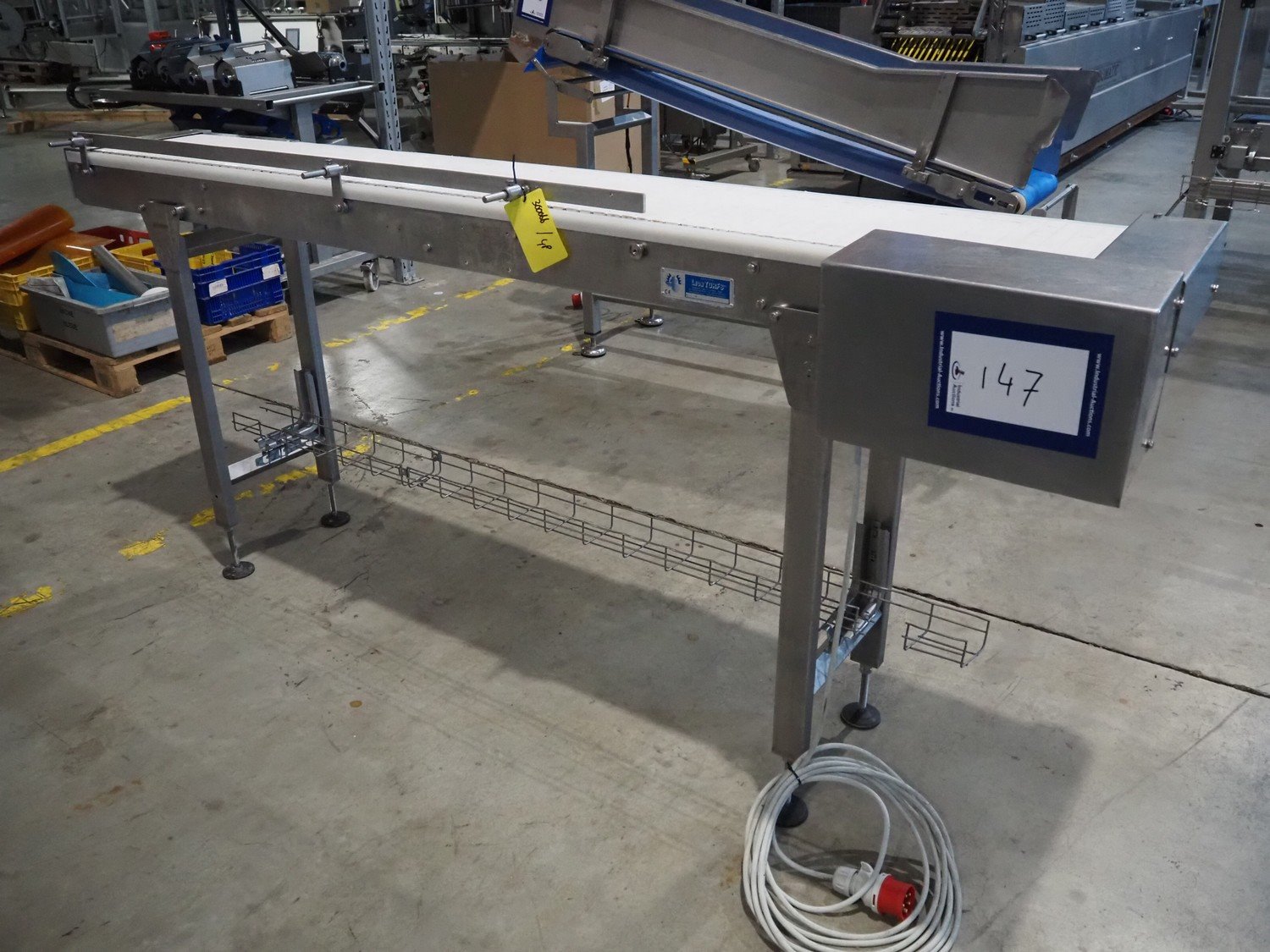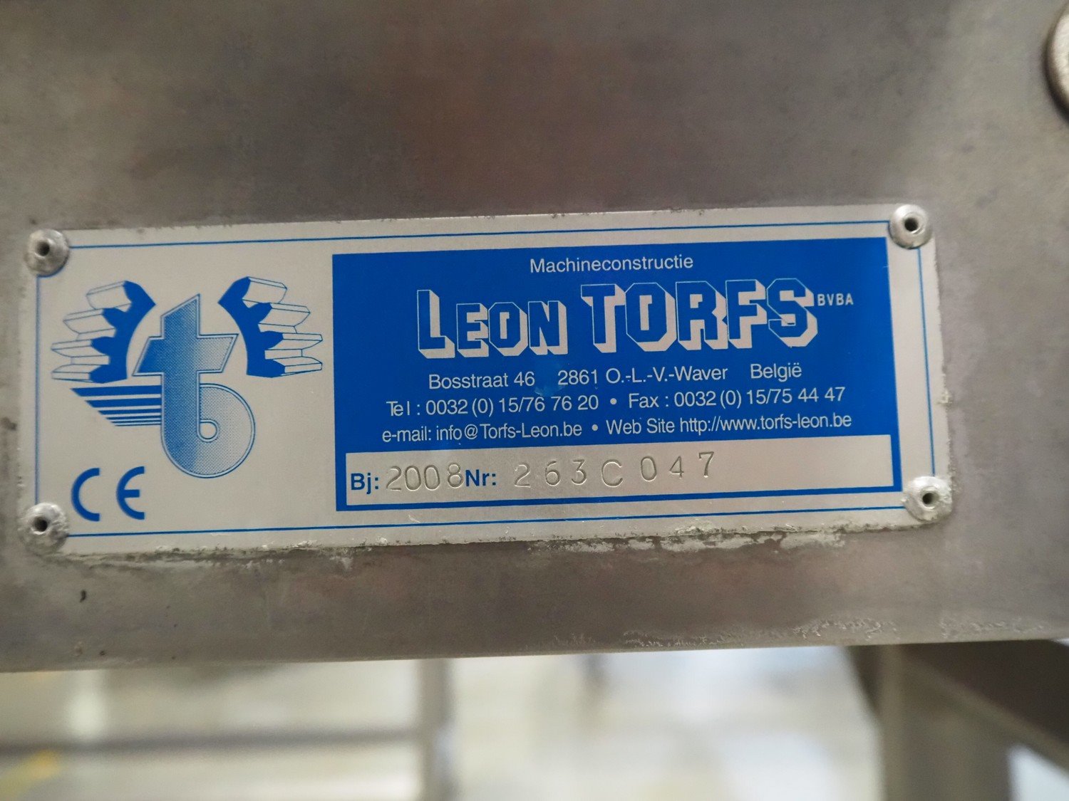 Leon Torfs bvba transport belt, s/s frame, number: 263C047, year of construction: 2008, plastic belt, belt width: 300 mm, total dimensions: 2400 mm x 560 mm x 1080 mm. Kavel locatie: Amfoor 6, 4421 SE Kapelle, Nederland