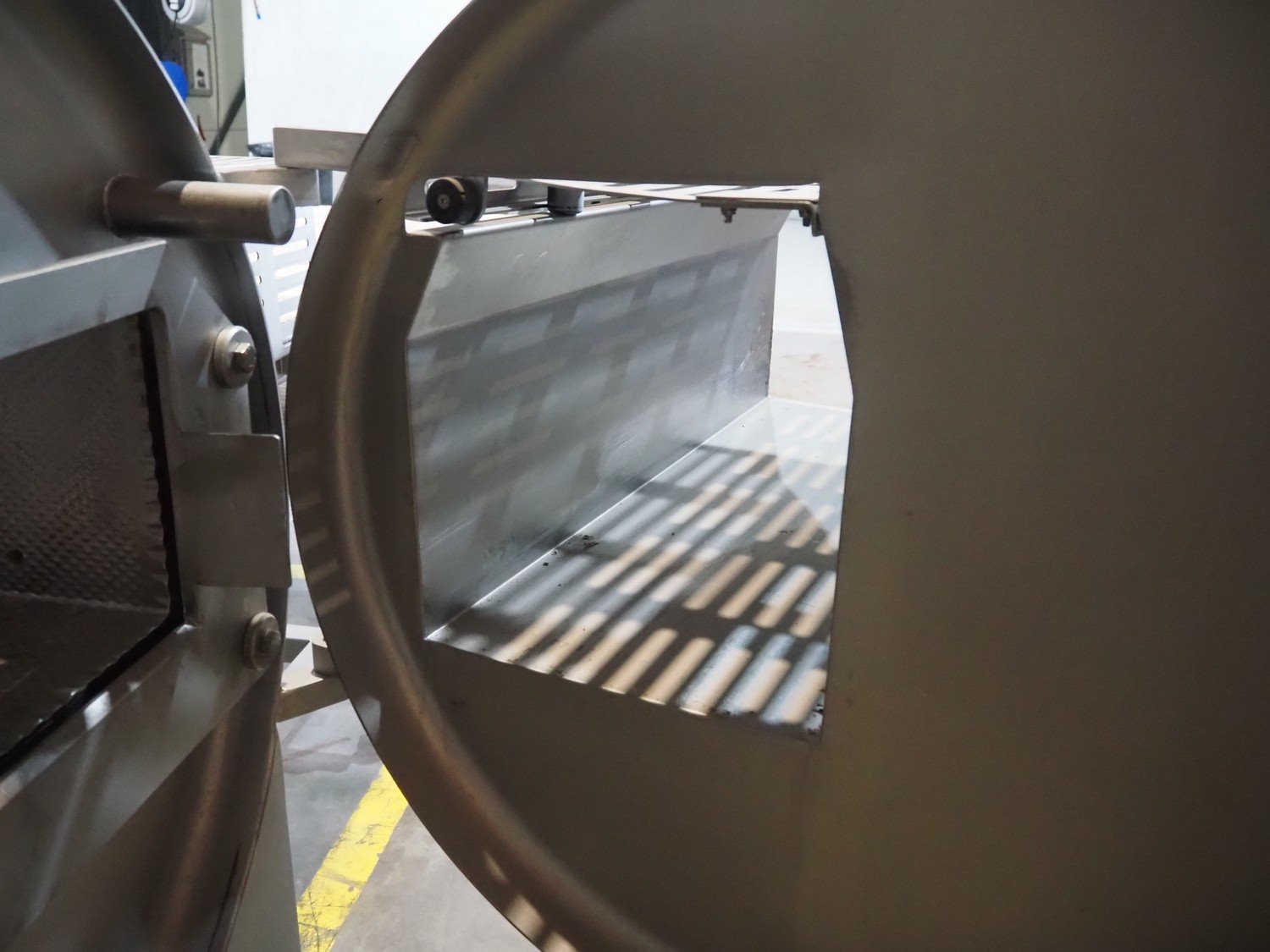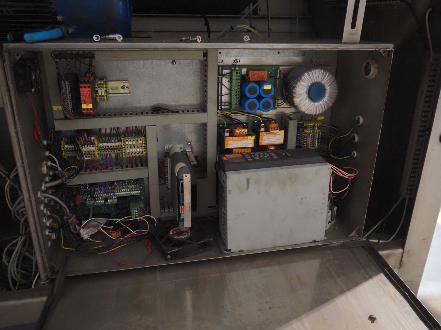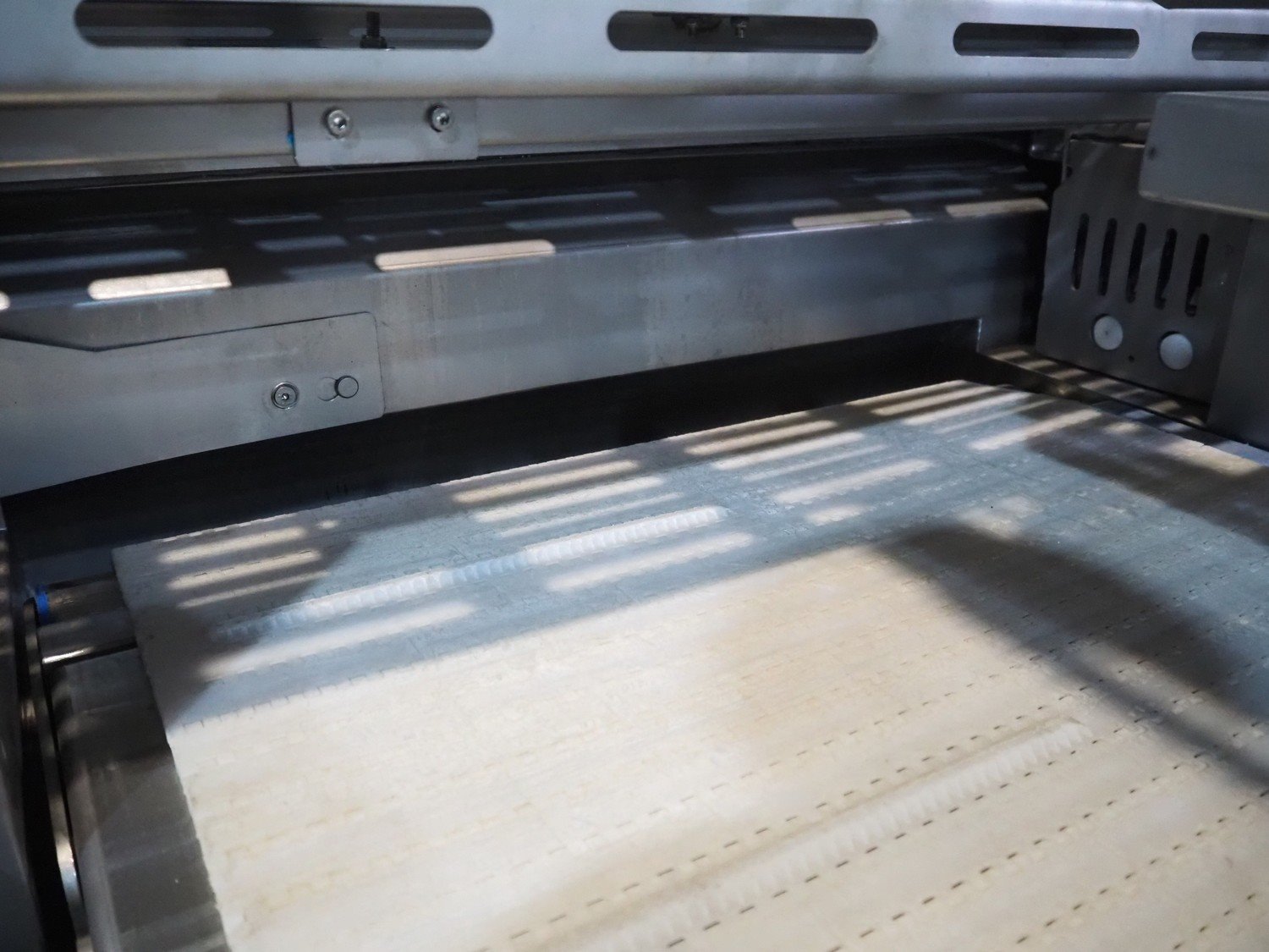 MHS Schneidetechnik GmbH slicer with infeed belt, type: IC610/21, serial number: 010604, year of construction: 2004, 400 V, 15.25 A, 6.1 kW, plastic belt, belt width: 610 mm, dimensions chamber: 210 mm x 210 mm, total dimensions: 2400 mm x 800 mm x 1500 mm, dimensions infeed belt: 2700 mm x 860 mm x 1500 mm. Kavel locatie: Amfoor 6, 4421 SE Kapelle, Nederland