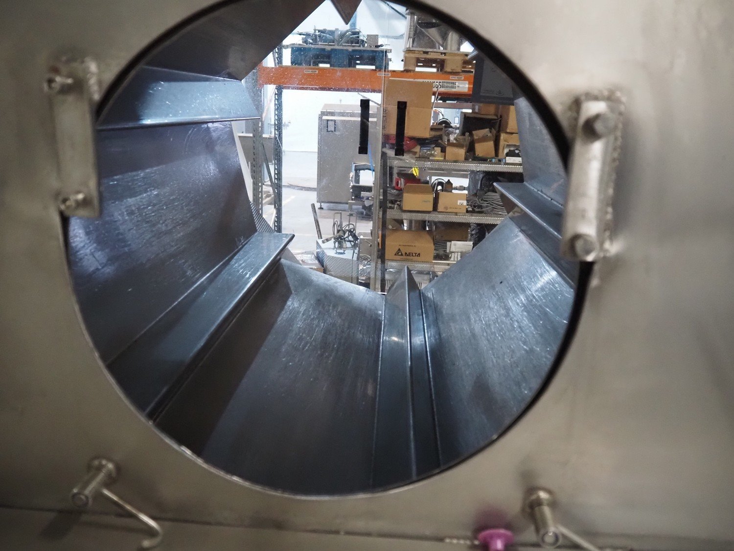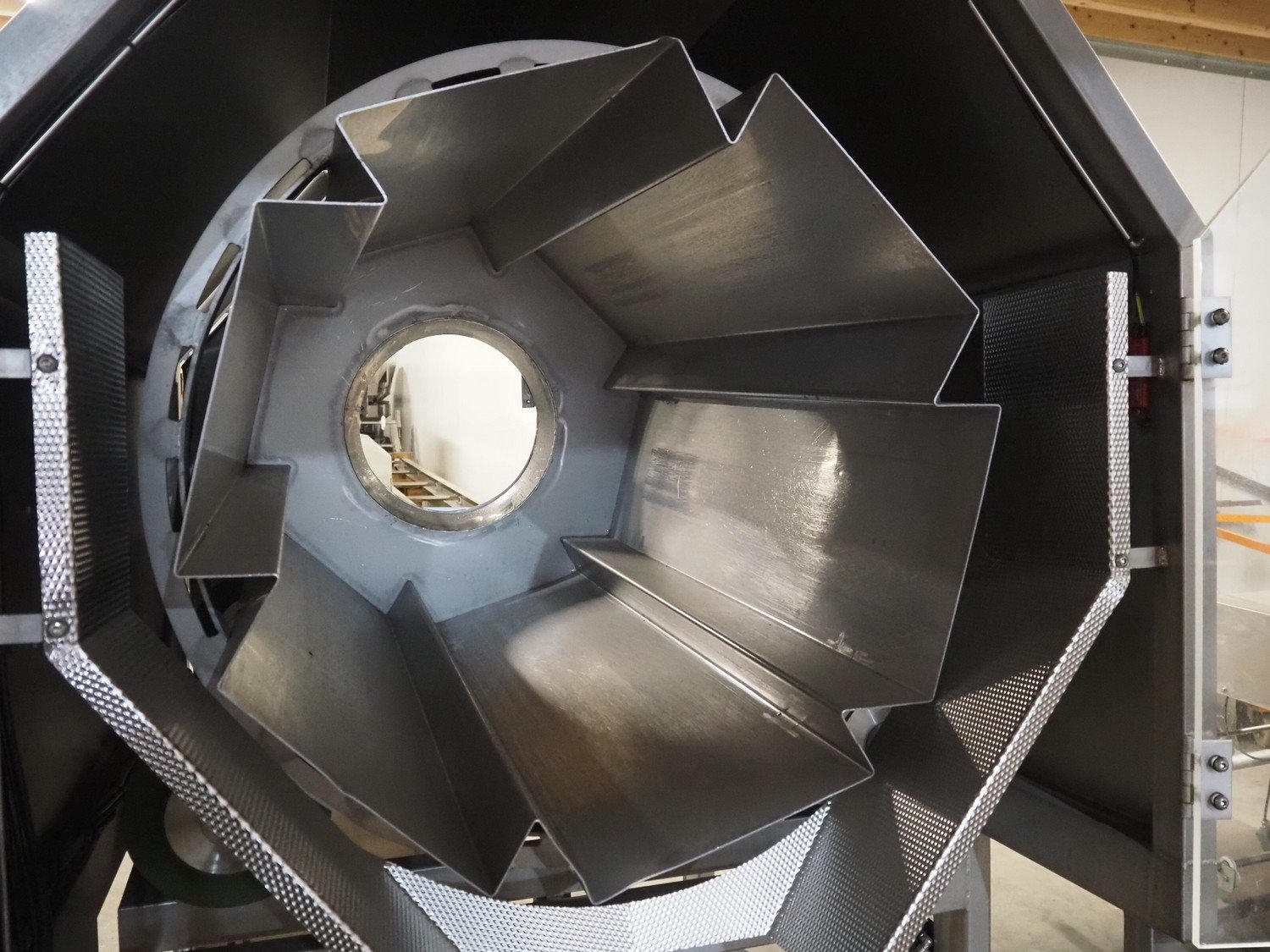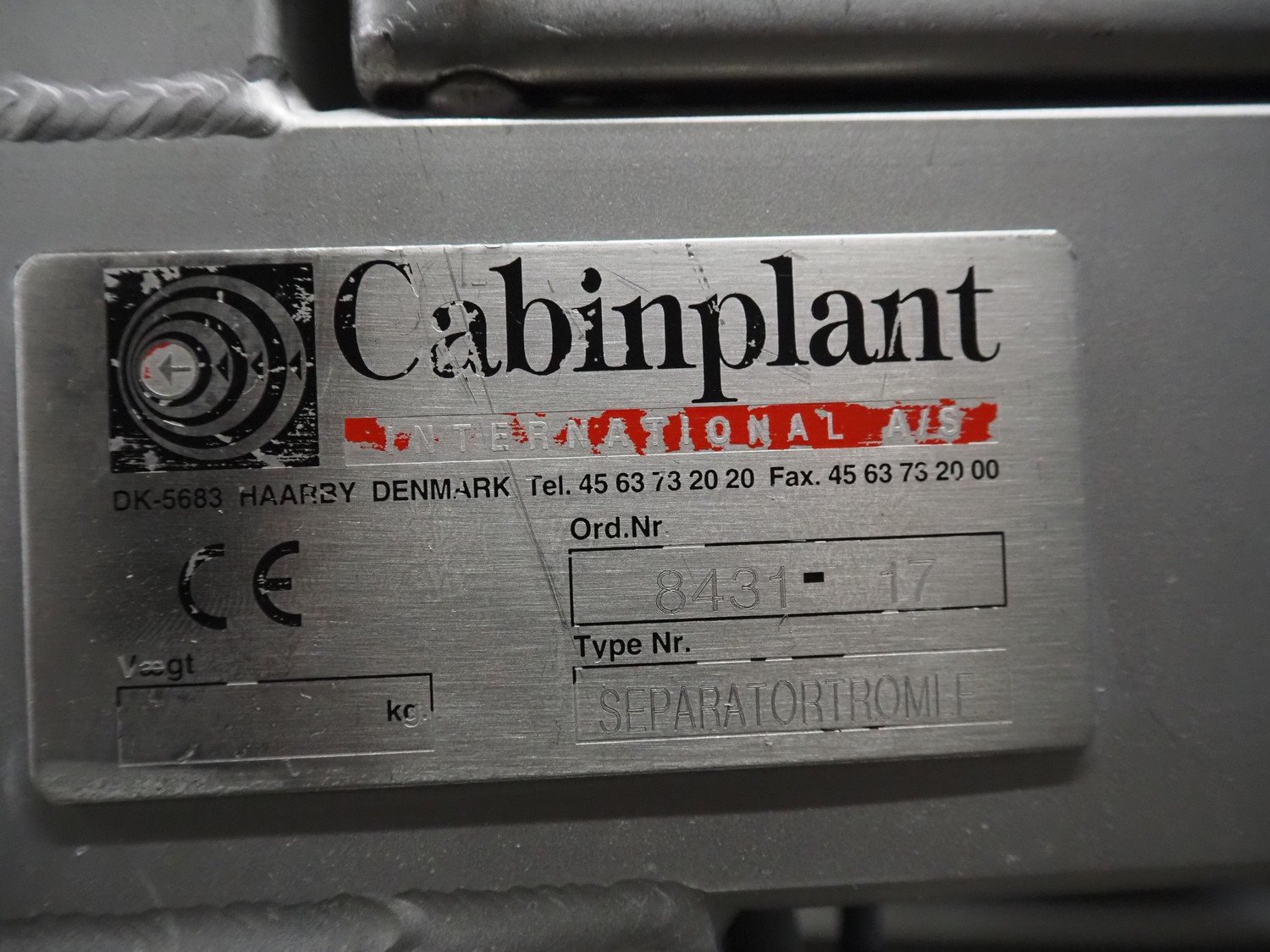 Cabinplant separation tumbler, type: SEPERATORTROMLE, number: 8431, diameter drum: 350 mm, length: 1200 mm, Scanvaegt indicator, type: 411, max: 30 Kg, min: 0.2 Kg, e= 0.01 Kg, dimensions weighing scale: 400 mm x 300 mm, total dimensions: 1750 mm x 1250 mm x 2100 mm. Kavel locatie: Amfoor 6, 4421 SE Kapelle, Nederland