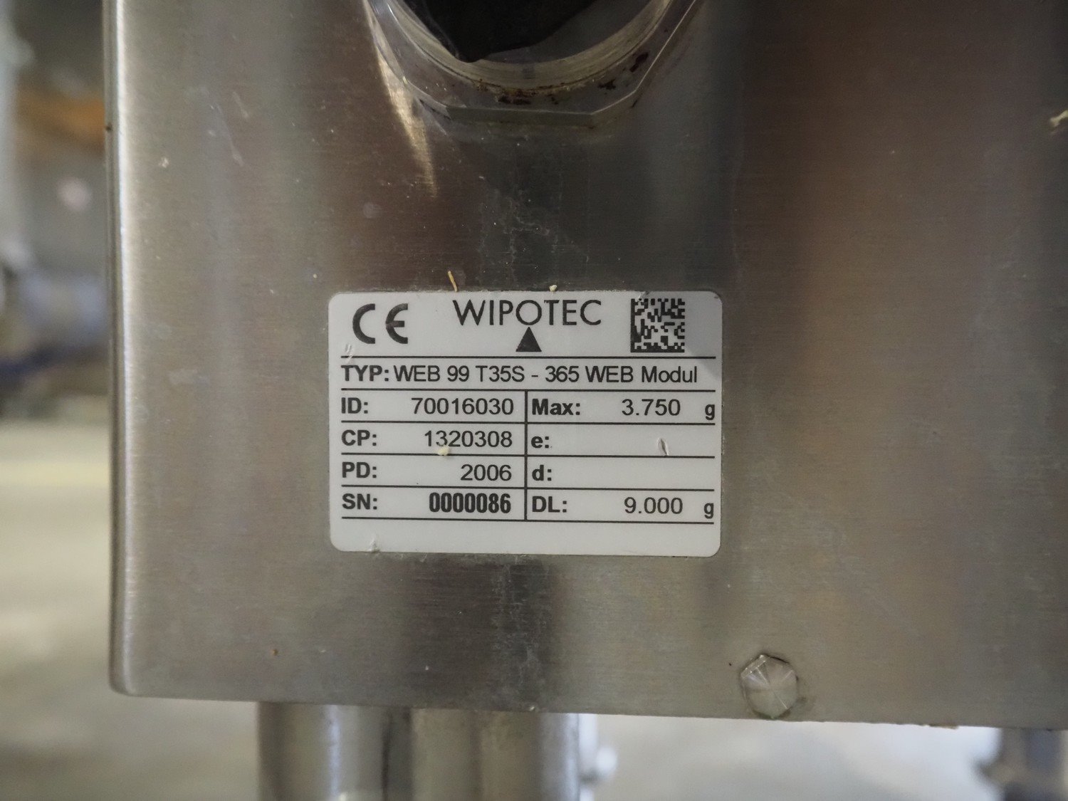 Weber checkweigher type: CCW, number: 2623, Wipotec weighing cells, type: WEB 99 T35S, plastic wire belt, belt width: 360 mm, total dimensions: 500 mm x 900 mm x 1100 mm. Kavel locatie: Amfoor 6, 4421 SE Kapelle, Nederland
