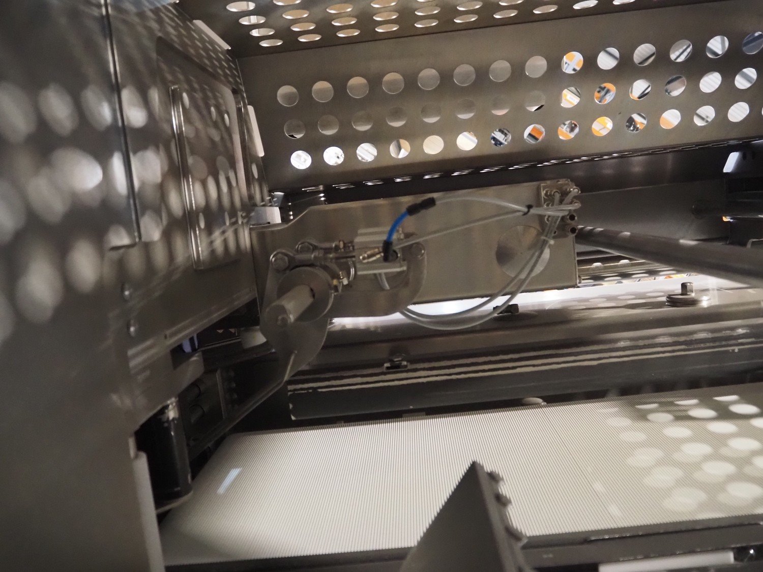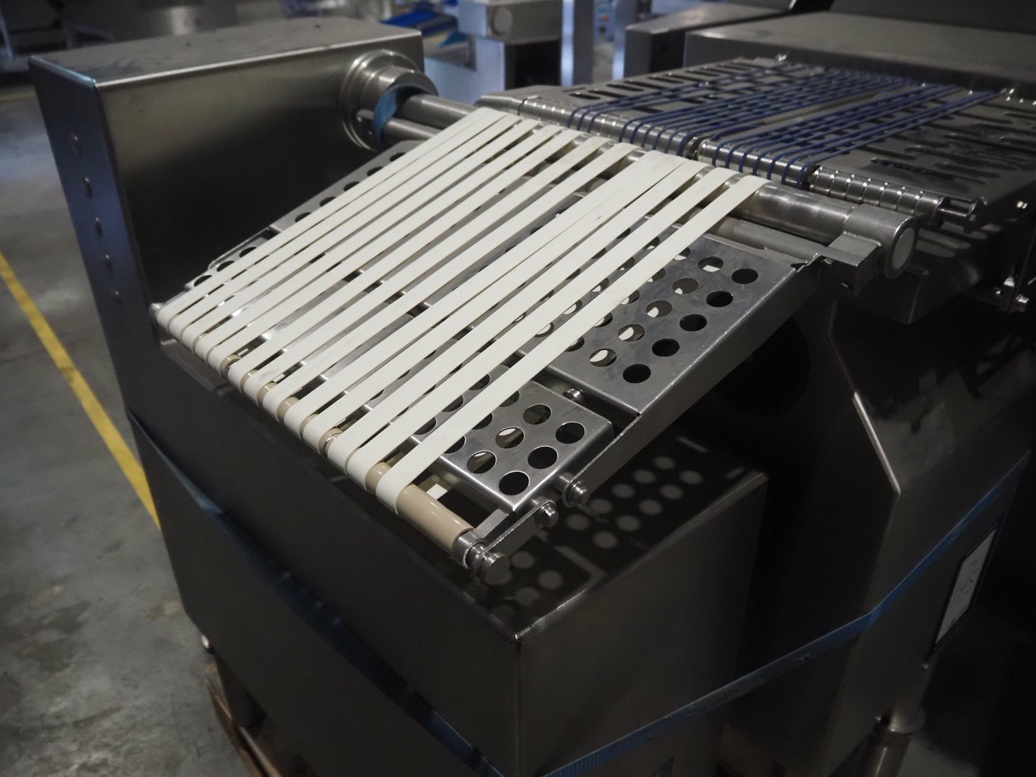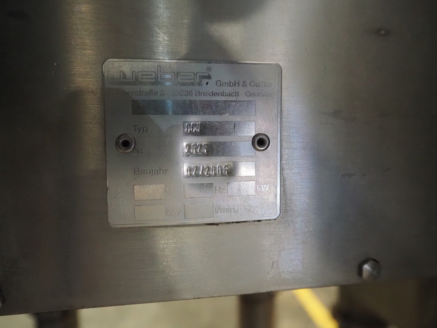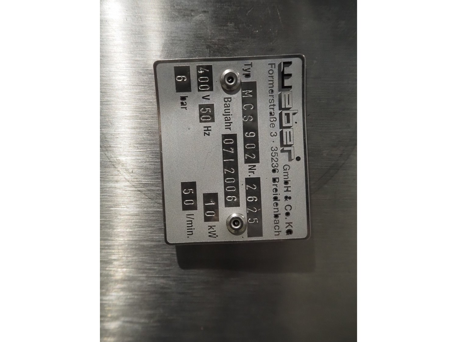 Weber slicer with checkweigher and rejecter belt, slicer type: MCS 902, number: 2625, year of construction: 07/2006, 400 V, 50 Hz, 10 kW, 6 bar, plastic wired outfeed belt, belt width: 400 mm, total dimensions: 3150 mm x 1700 mm x 2600 mm. type checkweigher: CCW, number: 2625, year of construction: 07/2006, plastic wired belt, belt width: 480 mm, dimensions checkweigher: 750 mm x 500 mm x 1150 mm. Without rollies. Kavel locatie: Amfoor 6, 4421 SE Kapelle, Nederland