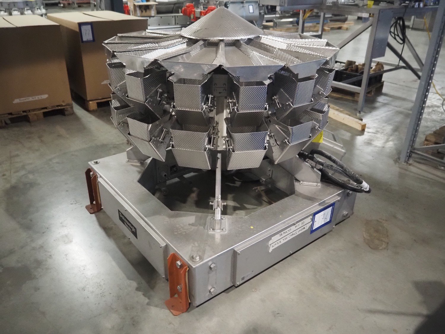 Yamato Scale GmbH/Dataweigh multihead weigher, 14 heads, model: ADW-514SWH, serial number: WG020586, 220/240 V, 1 Ph, 50/60 Hz, 10 A, min: 20 gram, max: 2000 gram, max speed: 120P/min, dimensions: 1400 mm x 1400 mm x 1250 mm. Including pallet box with parts, dimensions pallet box: 1200 mm x 1000 mm x 1250 mm. Kavel locatie: Amfoor 6, 4421 SE Kapelle, Nederland
