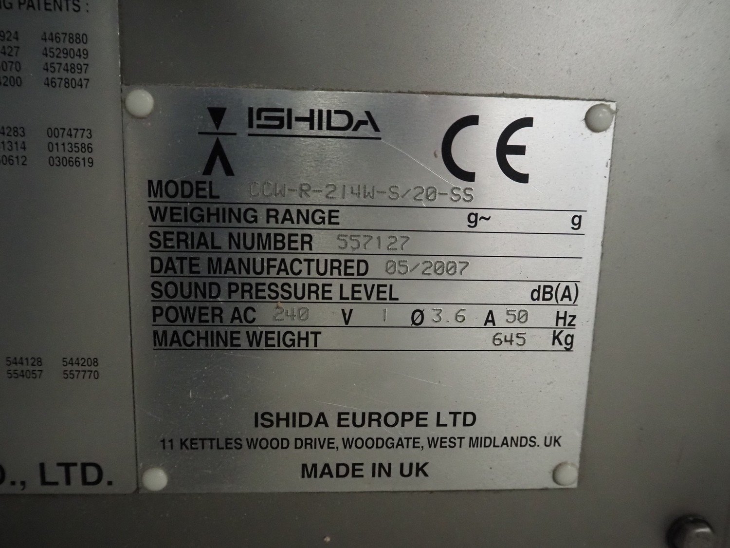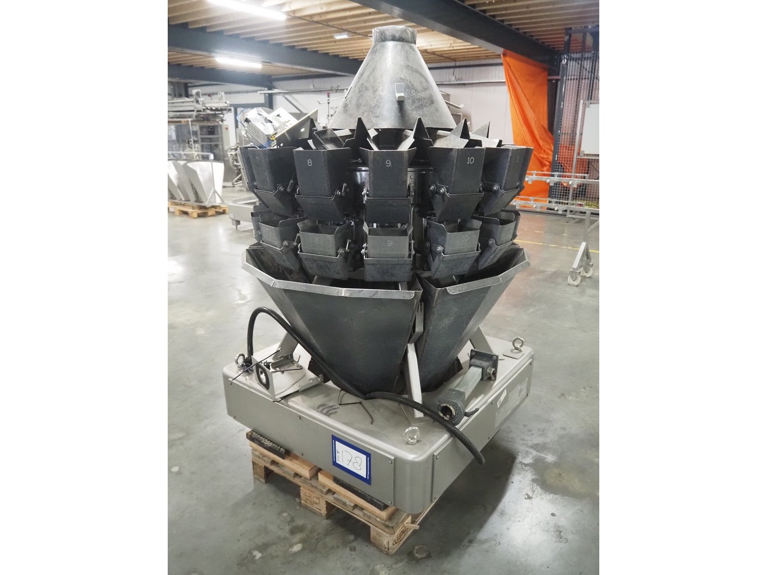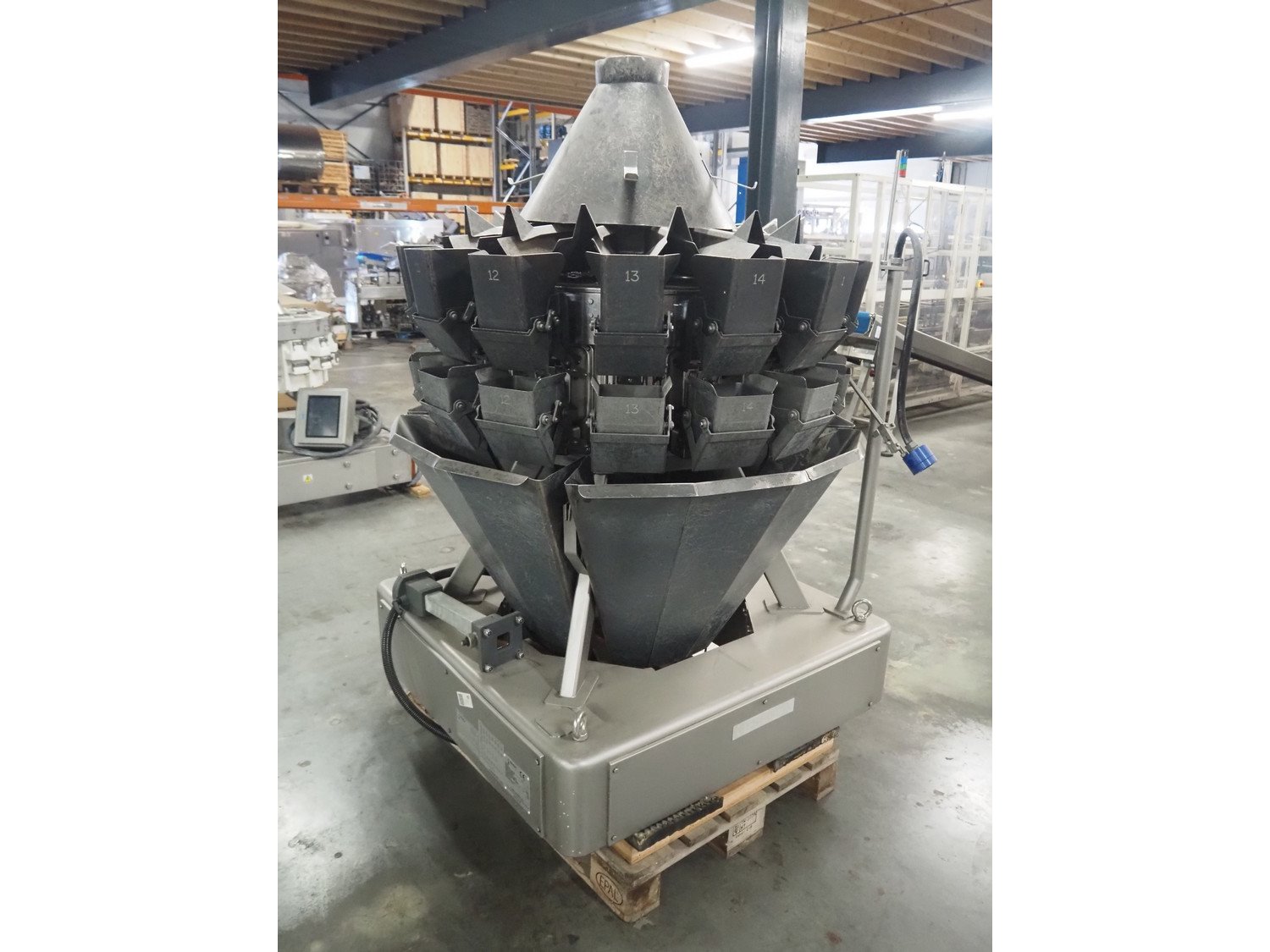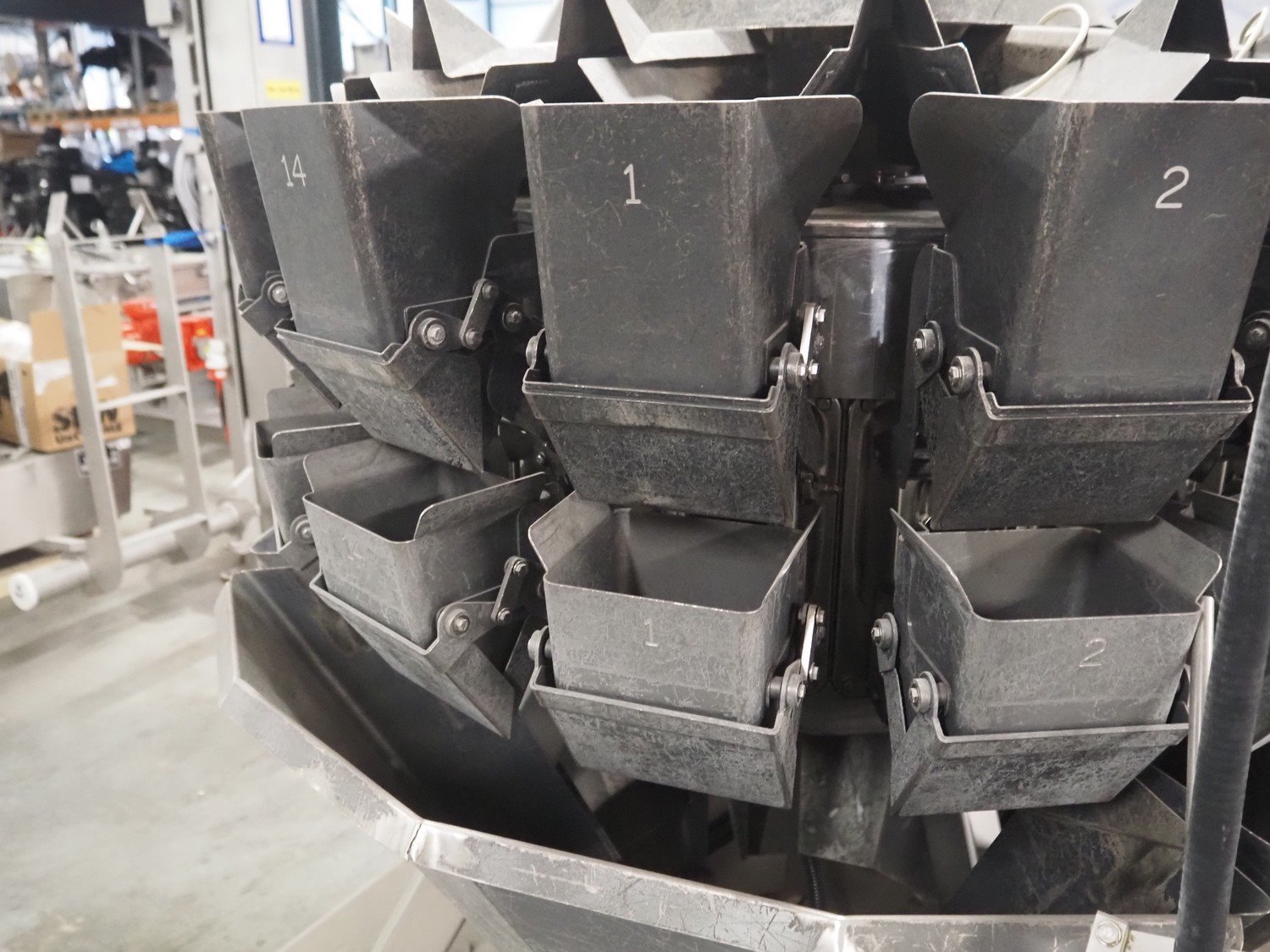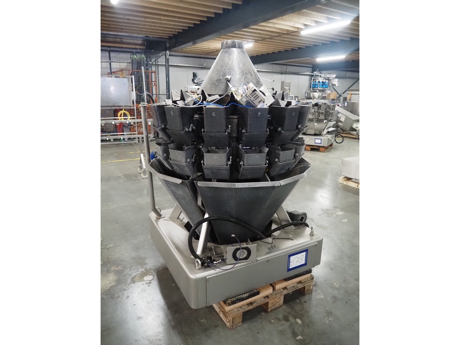 Ishida multihead weigher, 14 heads, model: CCW-R-214W-S/20-SS, serial number: 557127, year of construction: 05/2007, 240 V, 1 Ph, 50 Hz, 3.6 A, machine weight: 645 kg, dimensions: 1150 mm x 1150 mm x 1700 mm. Including pallet box with parts, dimensions: 1200 mm x 800 mm x 540 mm. Kavel locatie: Amfoor 6, 4421 SE Kapelle, Nederland