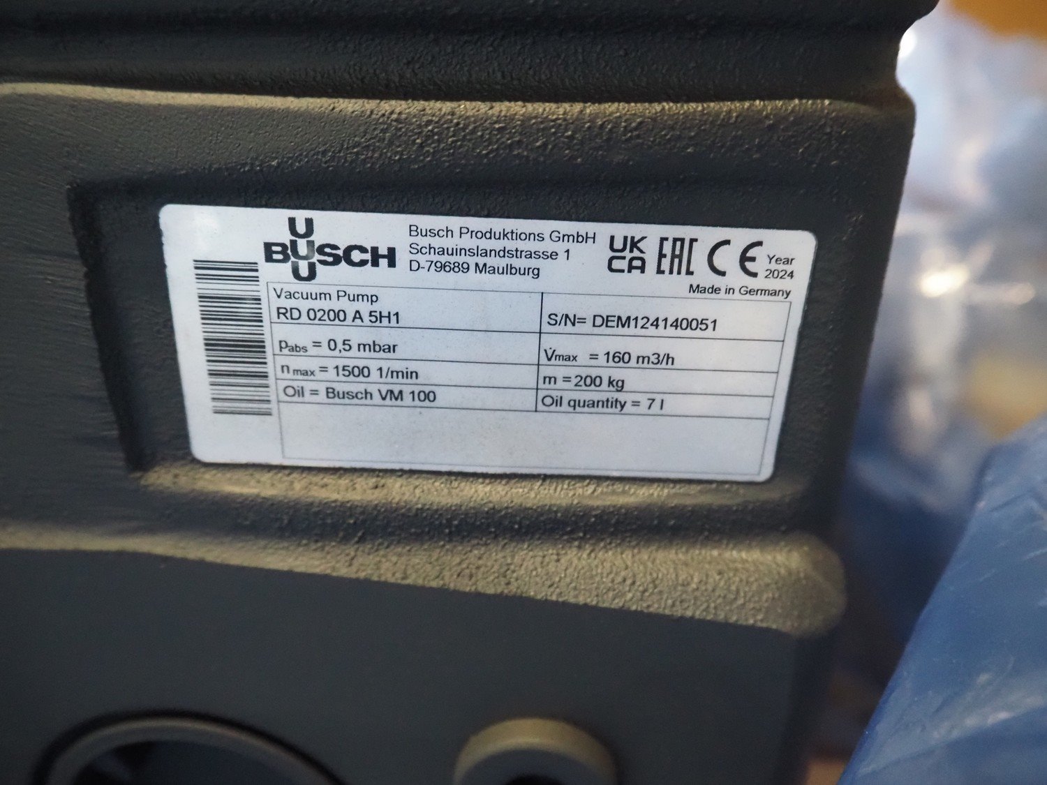 Busch vacuum pump, type: RD 0200 A 5H1, serial number: DEM124140051, year of construction: 2024, capacity: 160 m³ per hour, dimensions: 800 mm x 600 mm x 430 mm. Kavel locatie: Amfoor 6, 4421 SE Kapelle, Nederland