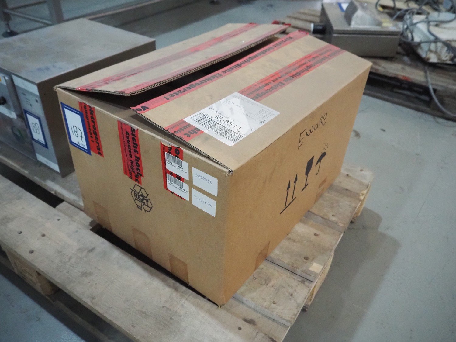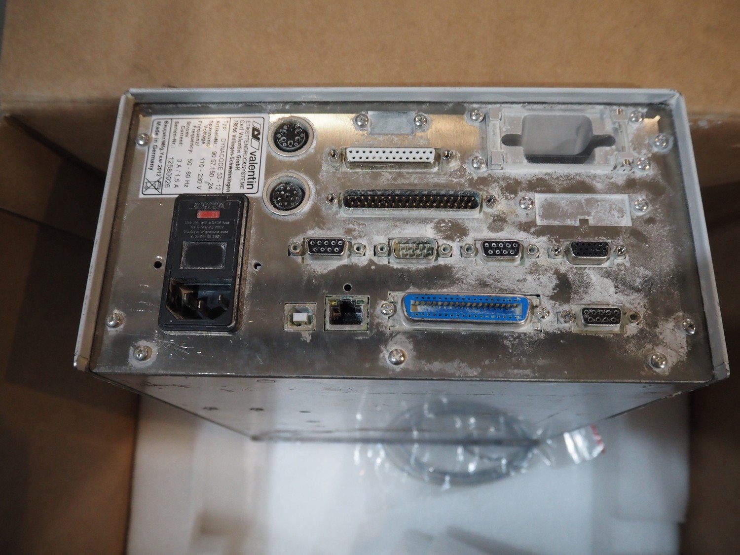 Box with CV Valentin barcode printer for packaging machines, type: Dynacode 53-12, serial number: 12580926, 110-230 V, 50-60 Hz, 3/1.5 A, dimensions: 600 mm x 450 mm x 350 mm. Kavel locatie: Amfoor 6, 4421 SE Kapelle, Nederland