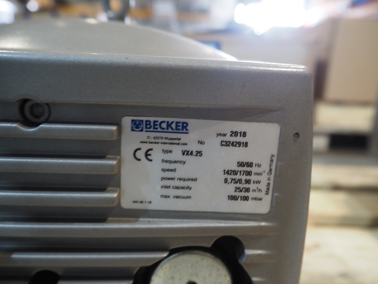 Becker vacuum pump, type: VX4.25, number: C3242918, year of construction: 2018, capacity: 25 / 30 m³ per hour, dimensions: 500 mm x 240 mm x 280 mm. Kavel locatie: Amfoor 6, 4421 SE Kapelle, Nederland