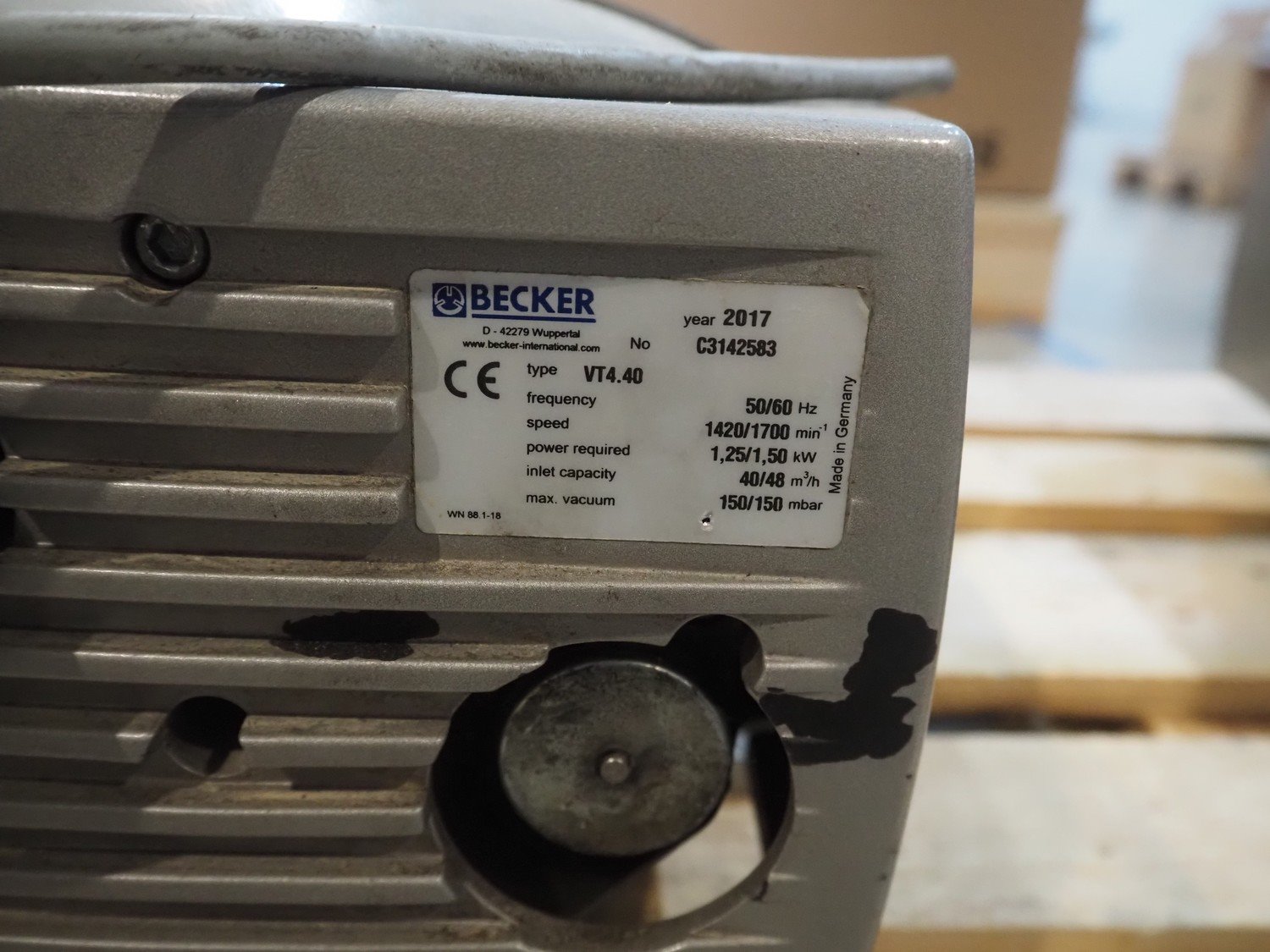 Becker vacuum pump, type: VT4.40, number: C3142583, year of construction: 2017, capacity: 40 / 48 m³ per hour, dimensions: 500 mm x 240 mm x 280 mm. Kavel locatie: Amfoor 6, 4421 SE Kapelle, Nederland