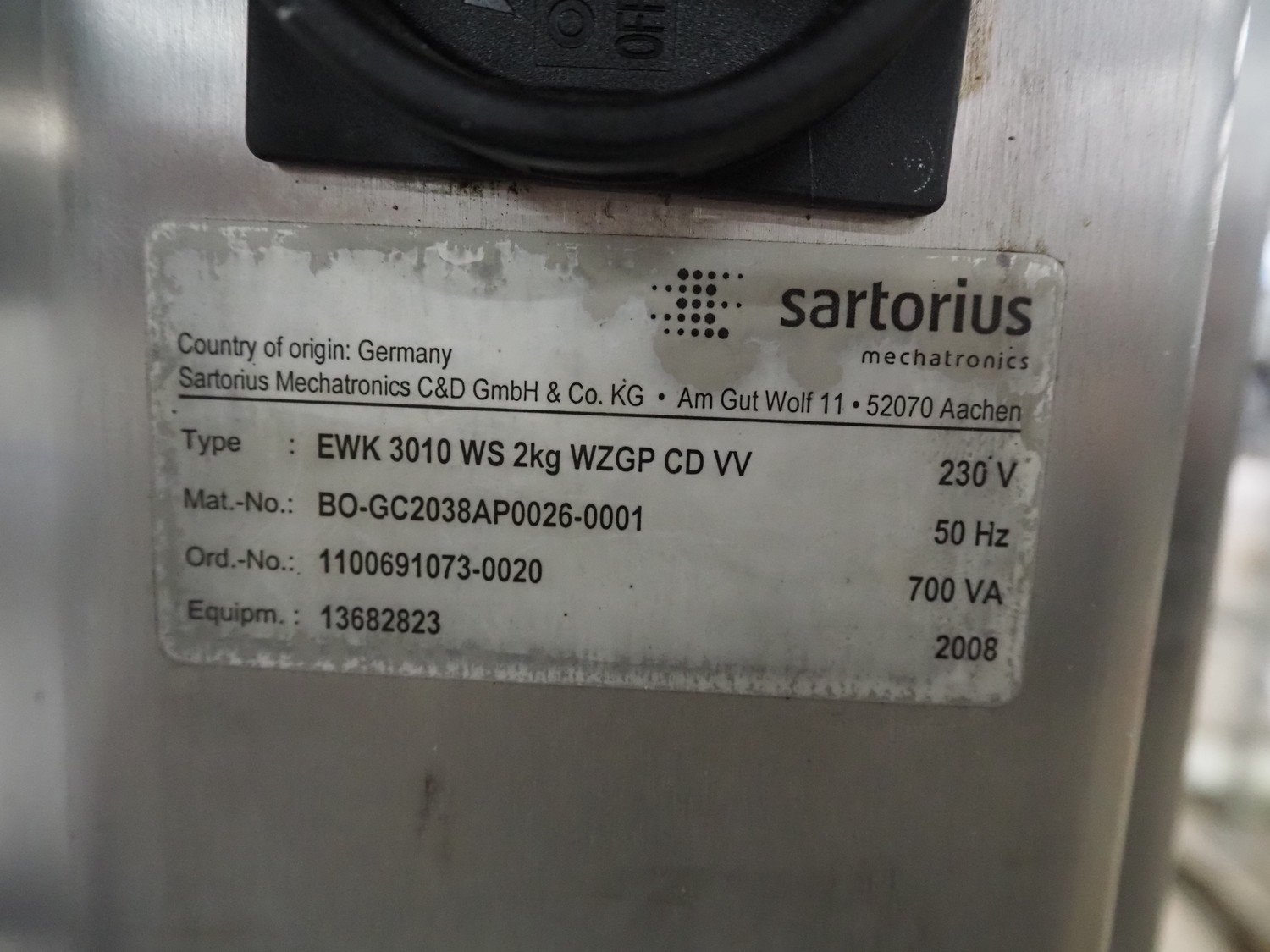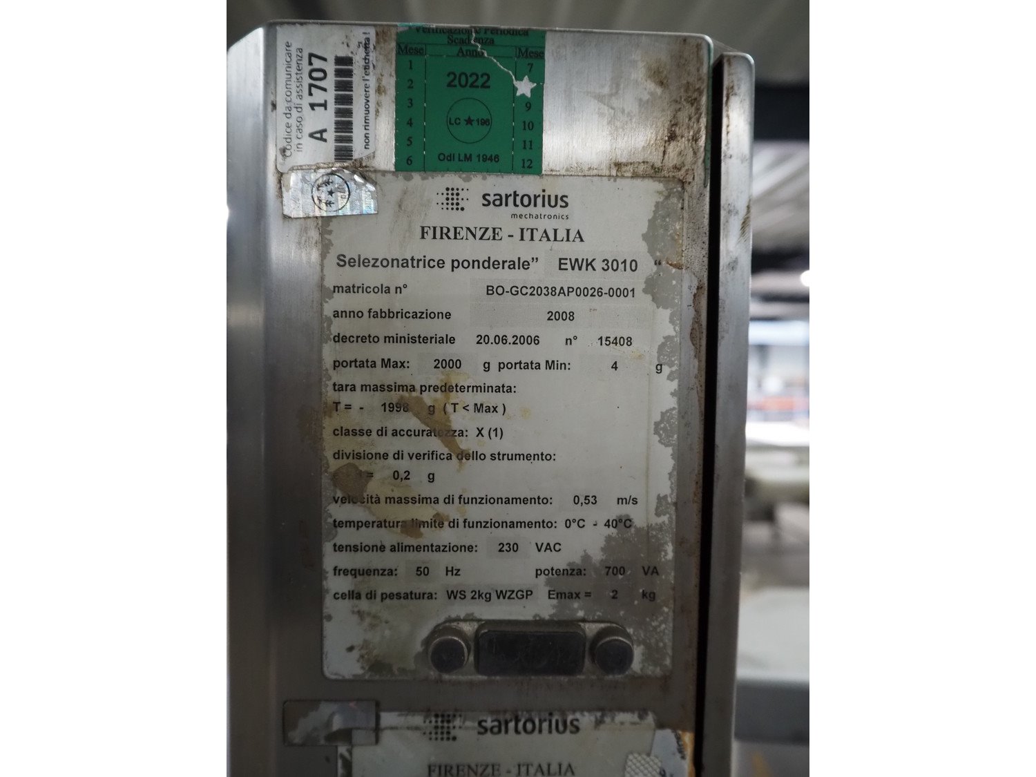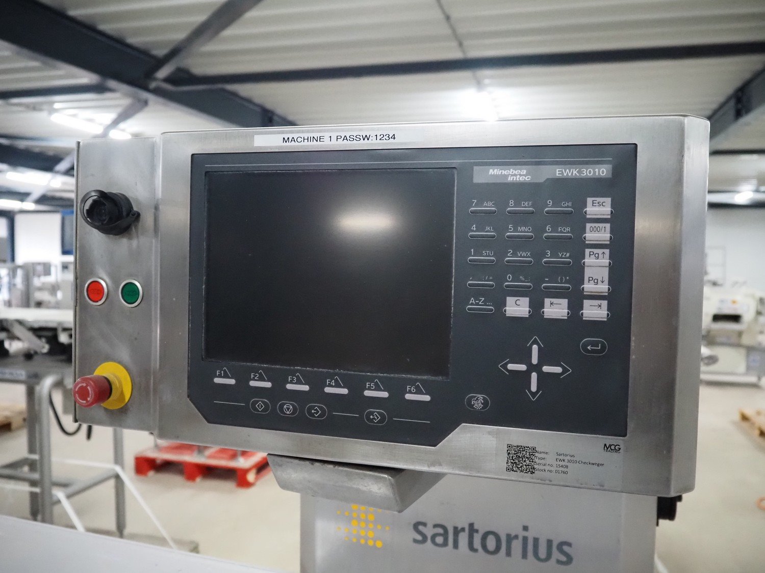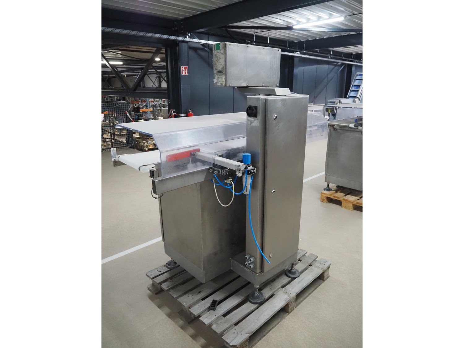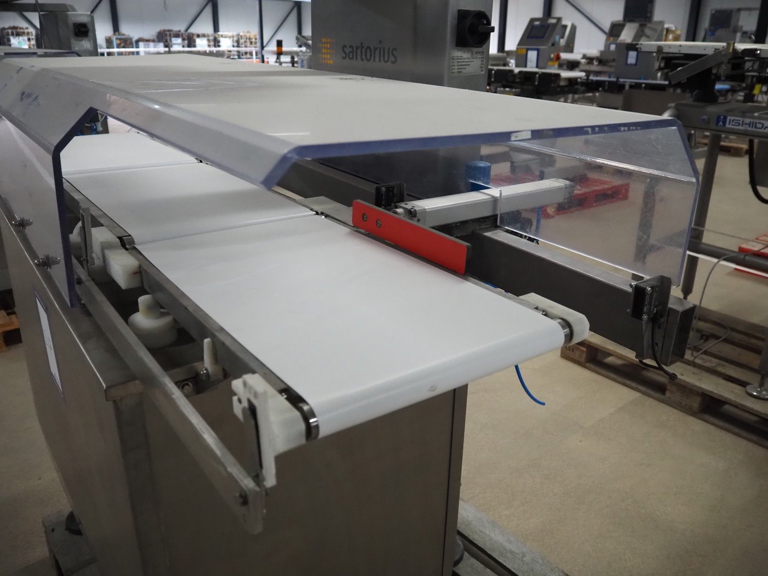 Sartorius checkweigher with rejector, type: EWK3010, number: BO-GC2038AP0026-001, year of construction: 2008, 230 V, 50 Hz, 700 vA, e=d= 0.2 gram, plastic belt, belt width: 300 mm, total dimensions: 1600 mm x 900 mm x 1700 mm. Kavel locatie: Amfoor 6, 4421 SE Kapelle, Nederland