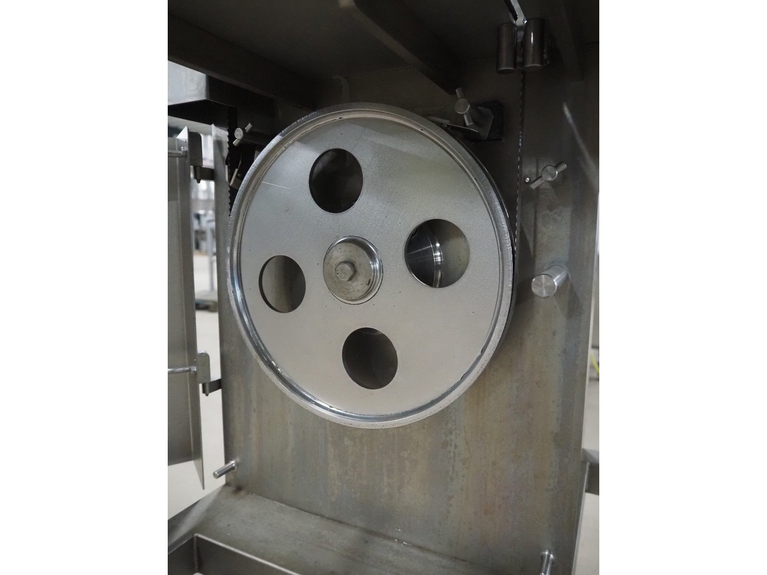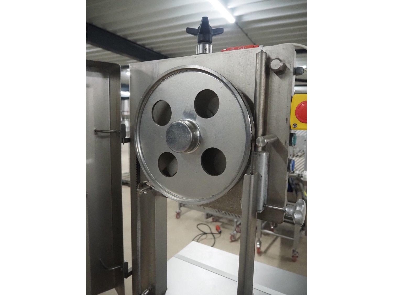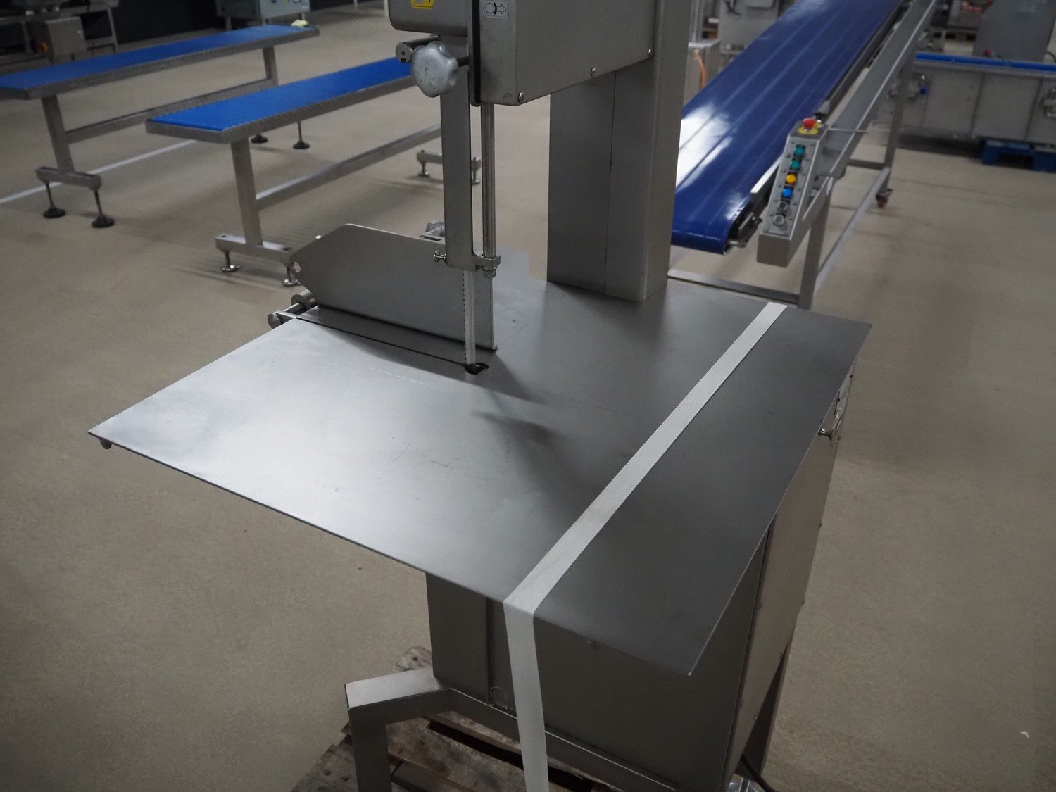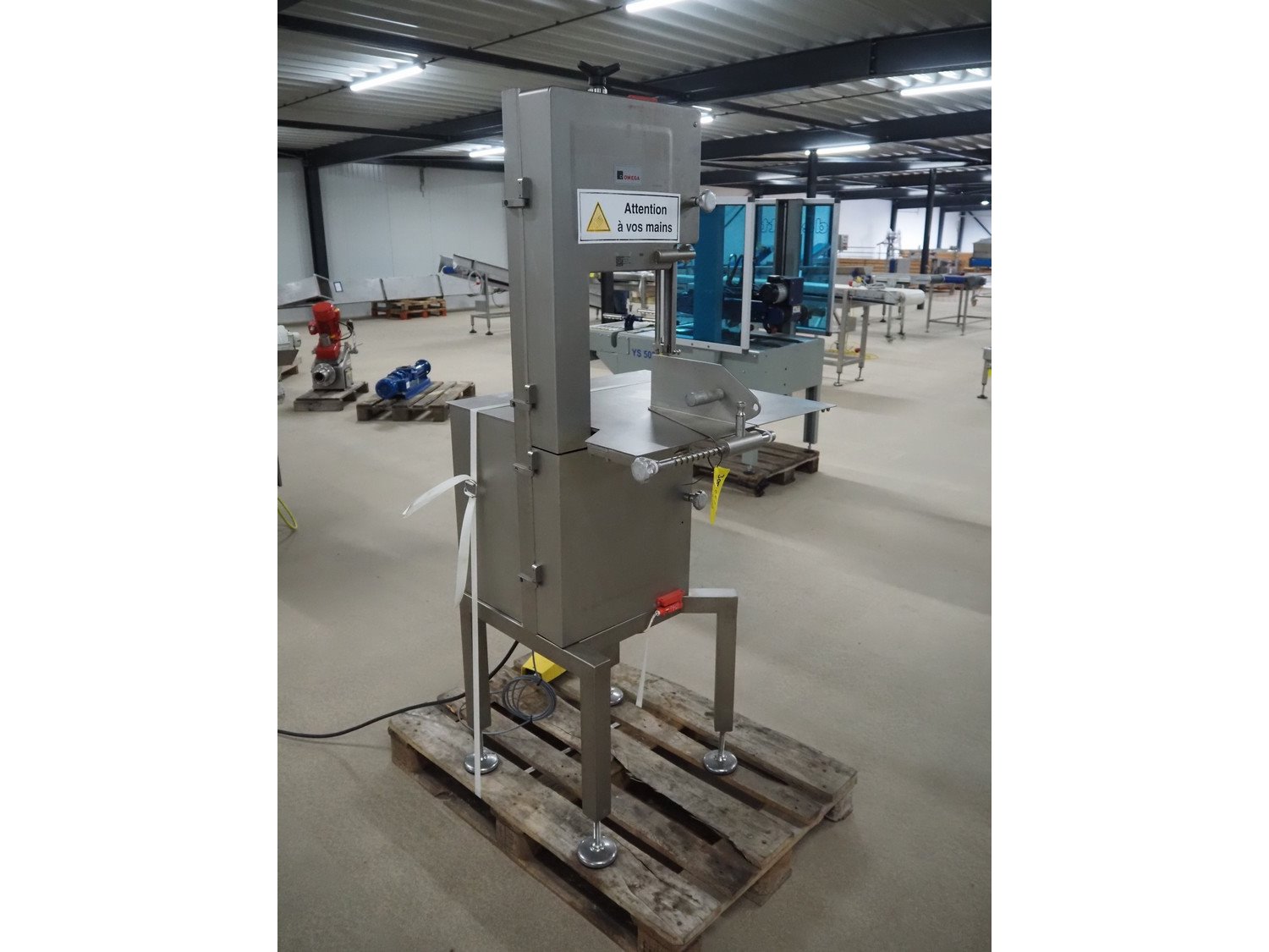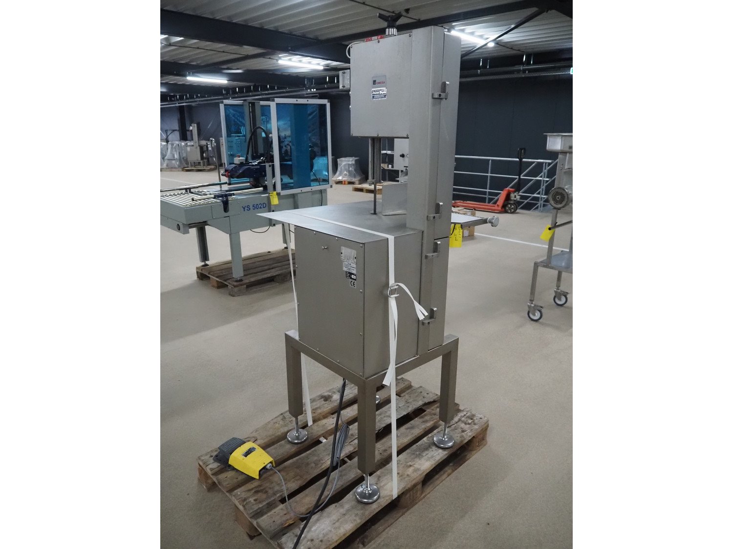 Omega bandsaw, model: SI 320, number: 509, year of construction: 11/2004, 400 V, 50 Hz, 2.5 A, 1.8 kW, dimensions table: 680 mm x 680 mm, total dimensions: 740 mm x 730 mm x 1820 mm. Kavel locatie: Amfoor 6, 4421 SE Kapelle, Nederland