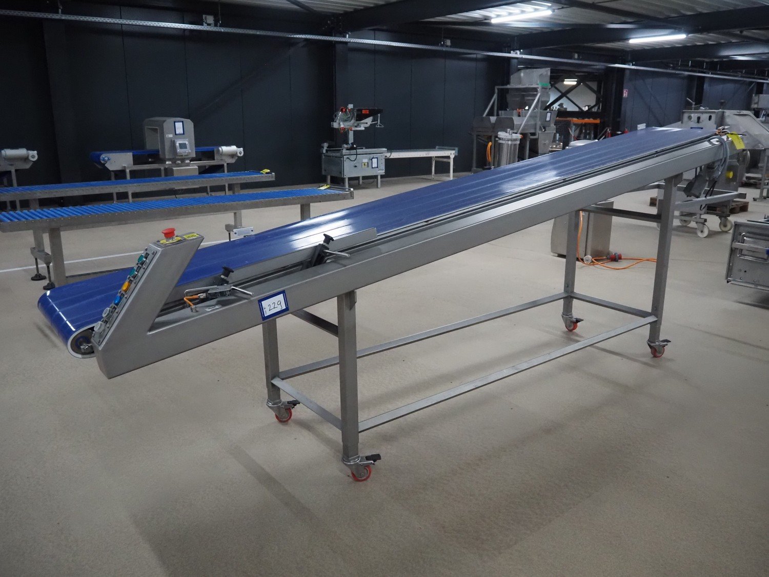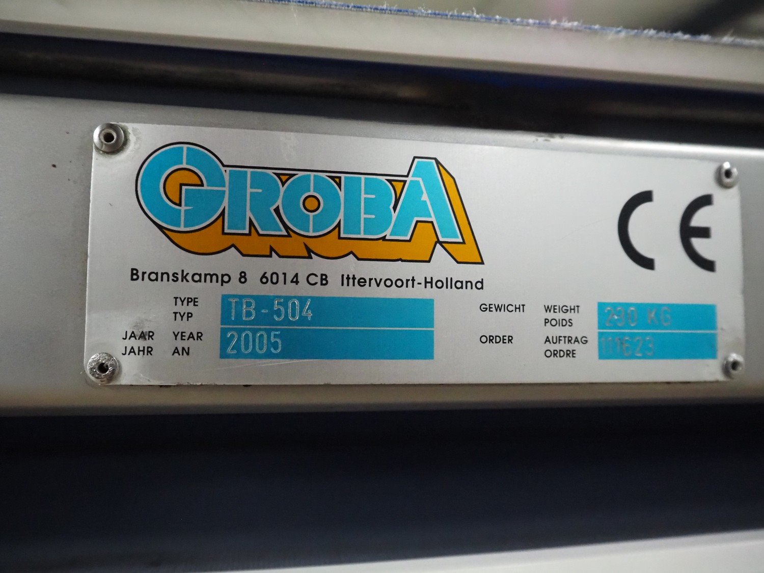 Groba mobile elevating belt, type: TB-504, year of construction: 2005, weight: 230 kg, plastic belt, belt width: 500 mm, elevating height: 1330 mm, total dimensions: 4000 mm x 770 mm x 1350 mm. Kavel locatie: Amfoor 6, 4421 SE Kapelle, Nederland