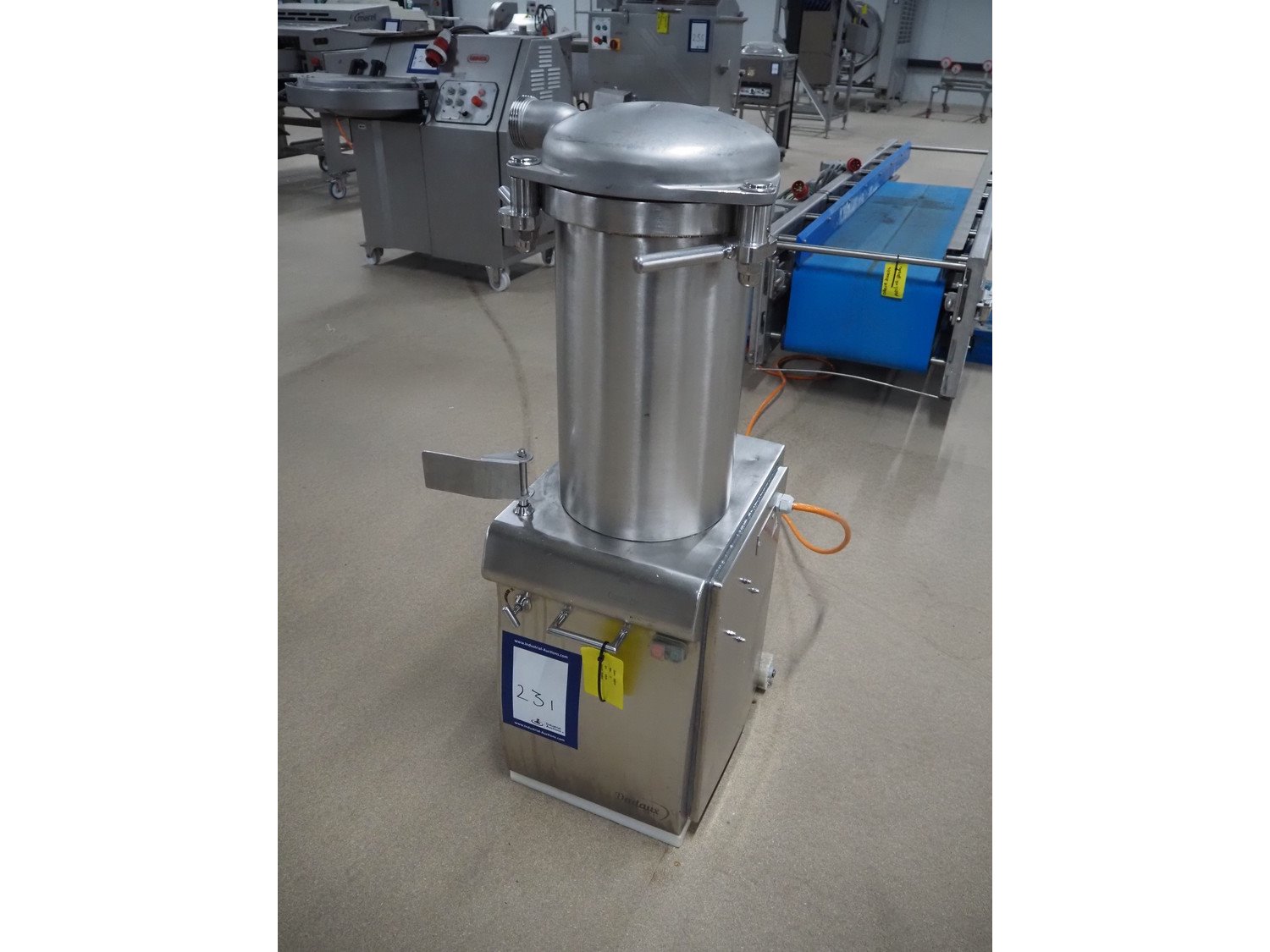 Dadaux piston filler, type: PHX25L, number: 0-568, year of construction: 07/15, 400 V, 50 Hz, volume: 25 liter, dimensions: 500 mm x 370 mm x 1170 mm. Voor meer informatie klik op de volgende link: A4_Poussoir_PHX_Hydraulique_Septembre2020_BAT_1.pdf Kavel locatie: Amfoor 6, 4421 SE Kapelle, Nederland