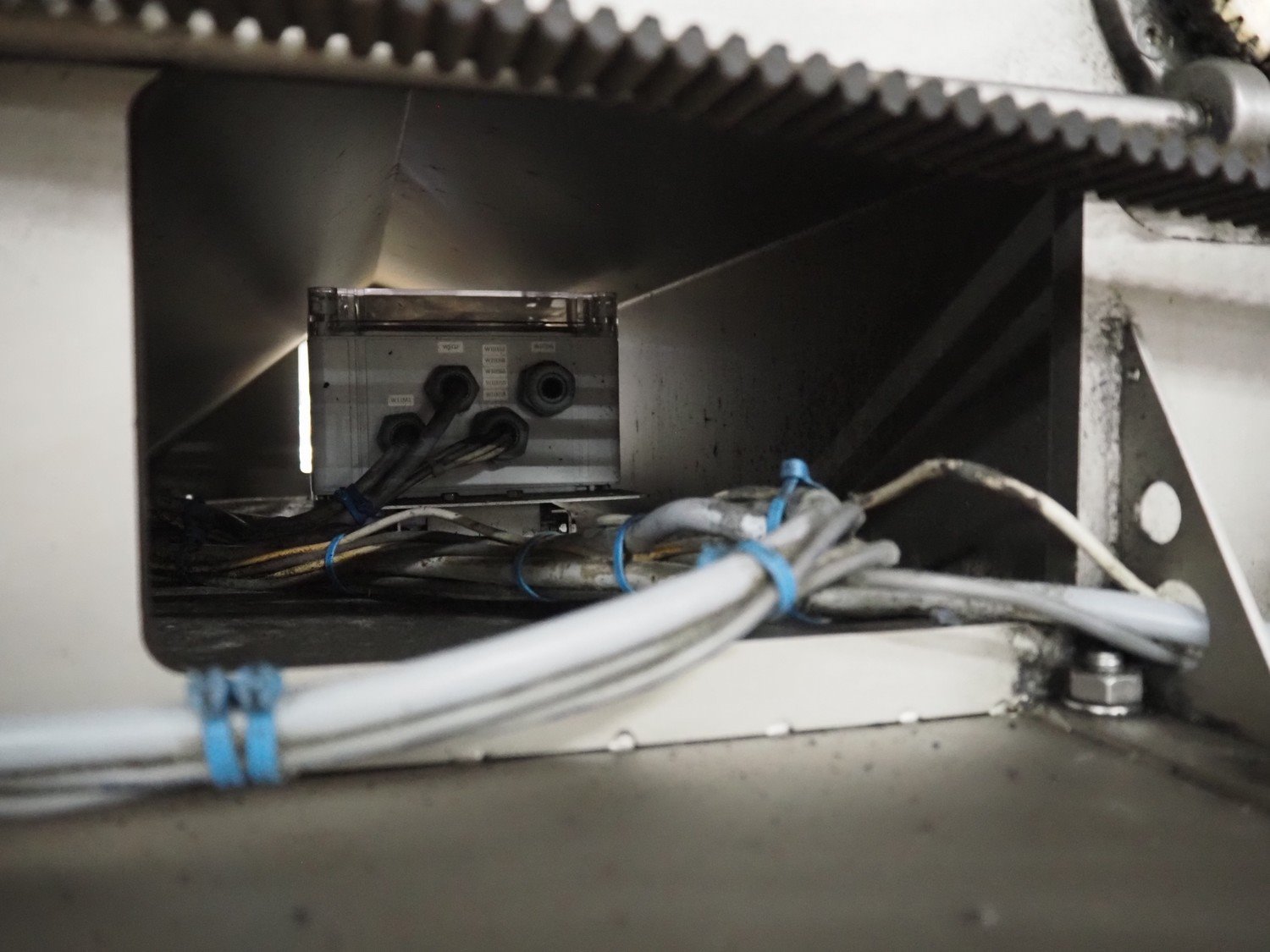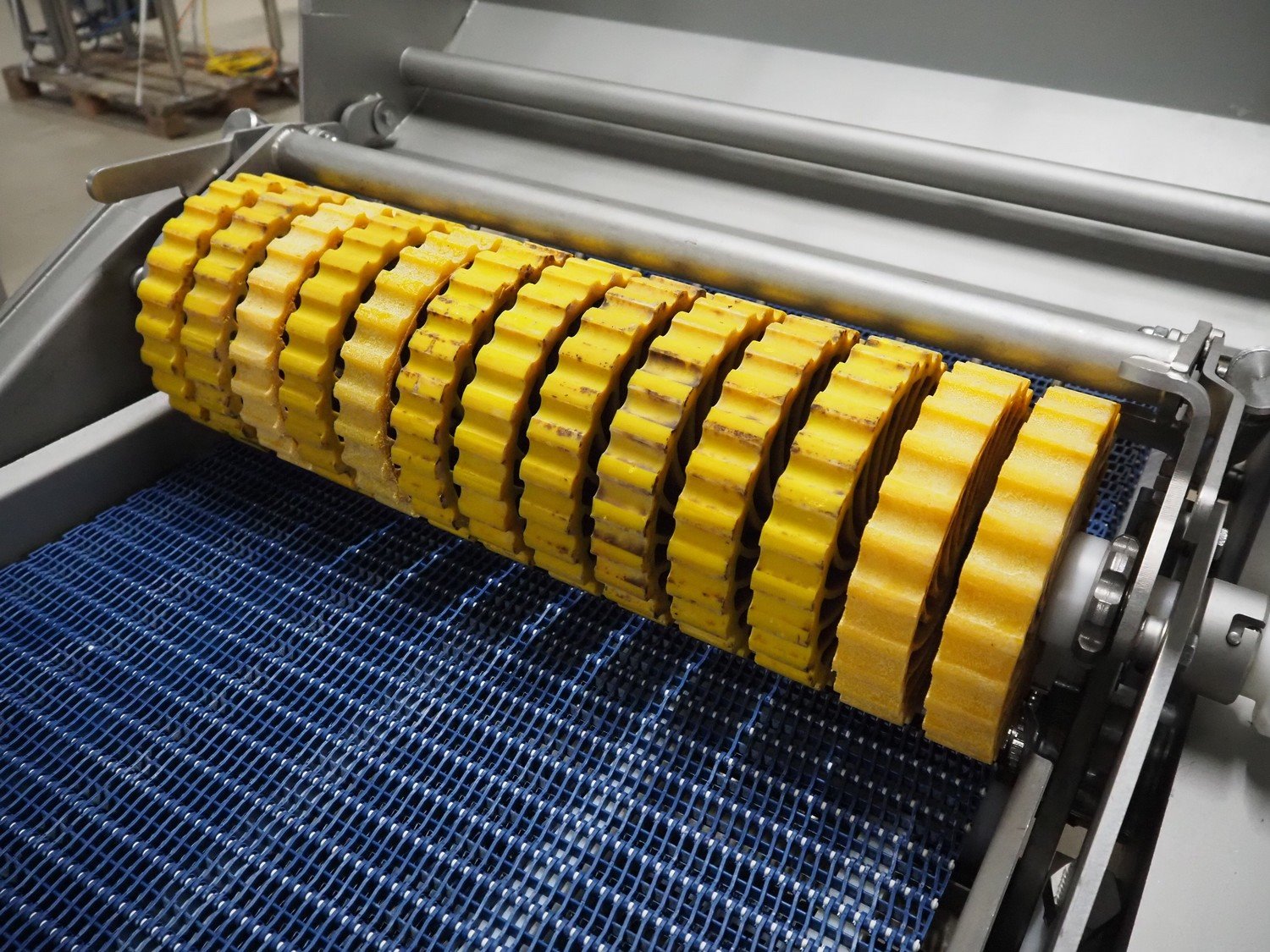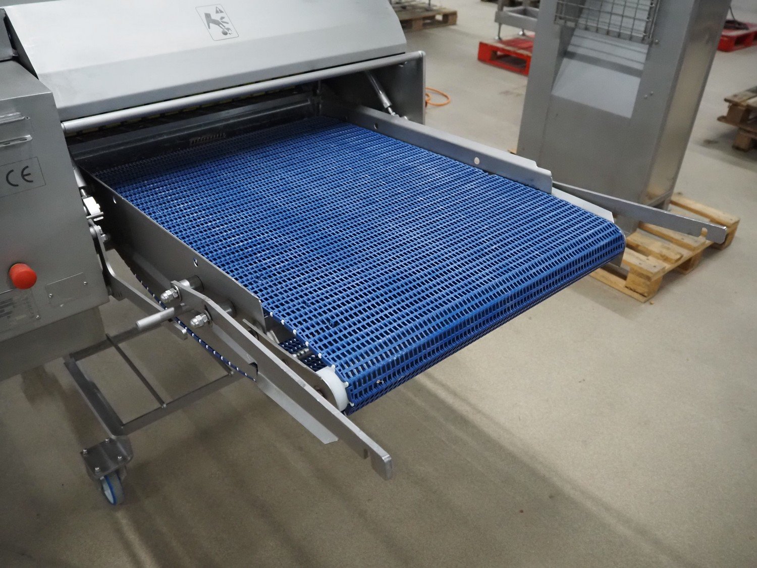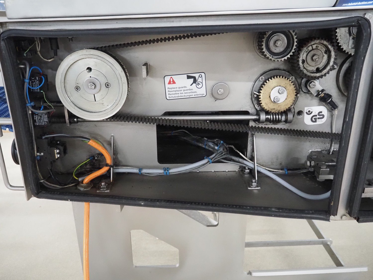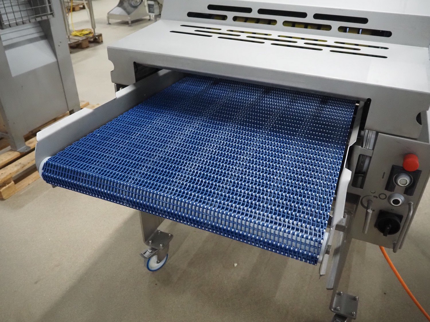 Marel mobile skinning and derinding machine, model: SK 15-320 20 INCH, type: 9838643, serial number: 10421662, year of construction: 2019, 400 V, 3 Ph, 50 Hz, 3.5 A, weight: 408 kg, working width: 500 mm, plastic mesh belt, belt width: 500 mm, total dimensions: 2200 mm x 1000 mm x 1300 mm. Kavel locatie: Amfoor 6, 4421 SE Kapelle, Nederland