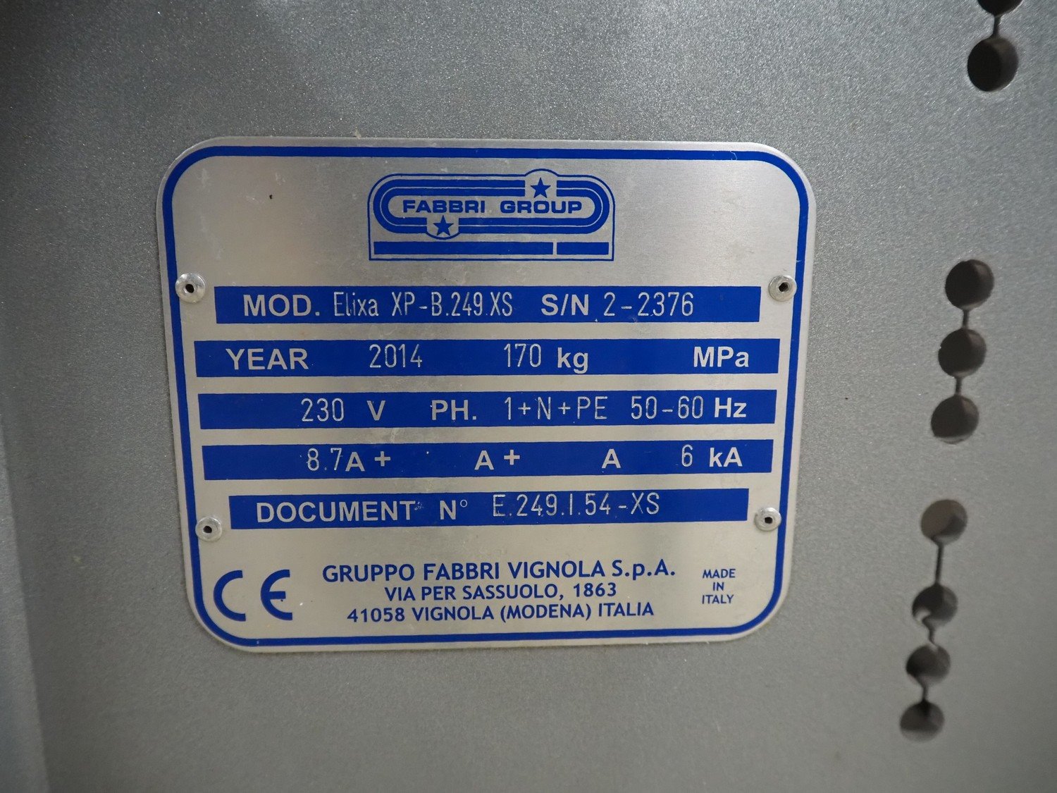 Fabbri Group mobile packaging machine, model: Elixa XP-B.249.XS, serial number: 2-2376, year of construction: 2014, 230 V, 1 Ph, 50-60 Hz, 8.7 A, plastic string infeed belt, belt width: 330 mm, plastic outfeed belt, belt width: 340 mm, plastic outfeed rollers, roller width: 300 mm, total dimensions: 1350 mm x 1250 mm x 1300 mm. Kavel locatie: Amfoor 6, 4421 SE Kapelle, Nederland