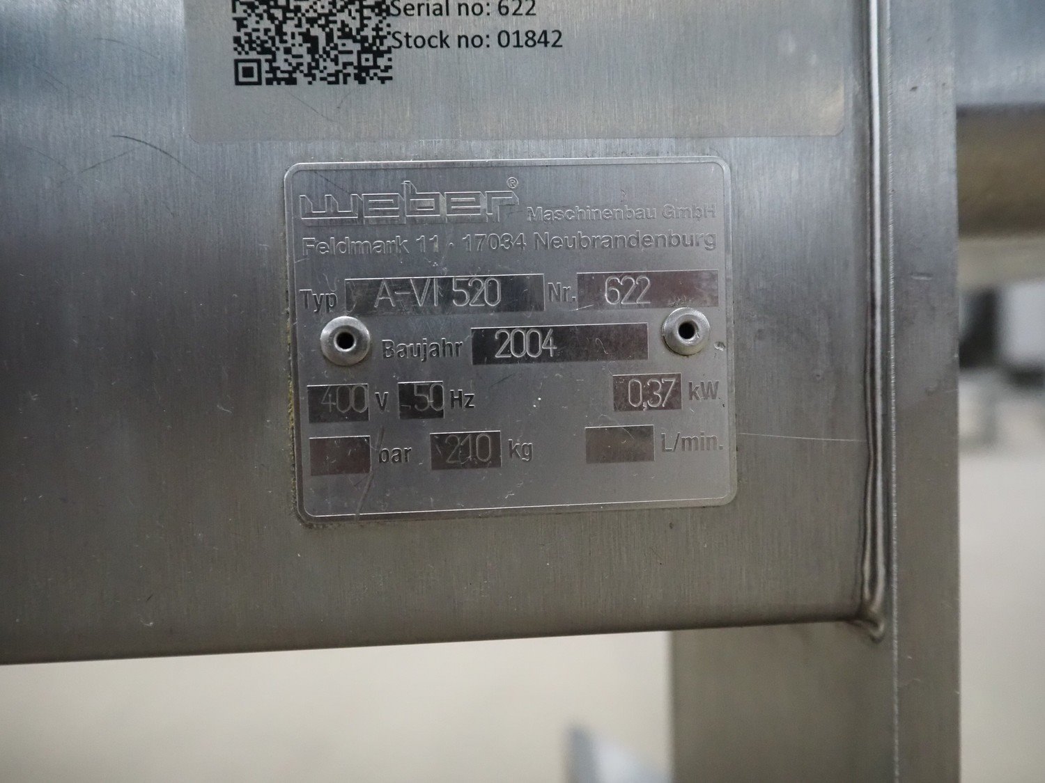 Weber mobile skinning machine, type: A-VI 520, number: 622, year of construction: 2004, 400 V, 50 Hz, 0.37 kW, 210 kg, working width: 515 mm, total dimensions: 820 mm x 620 mm x 1000 mm. Kavel locatie: Amfoor 6, 4421 SE Kapelle, Nederland